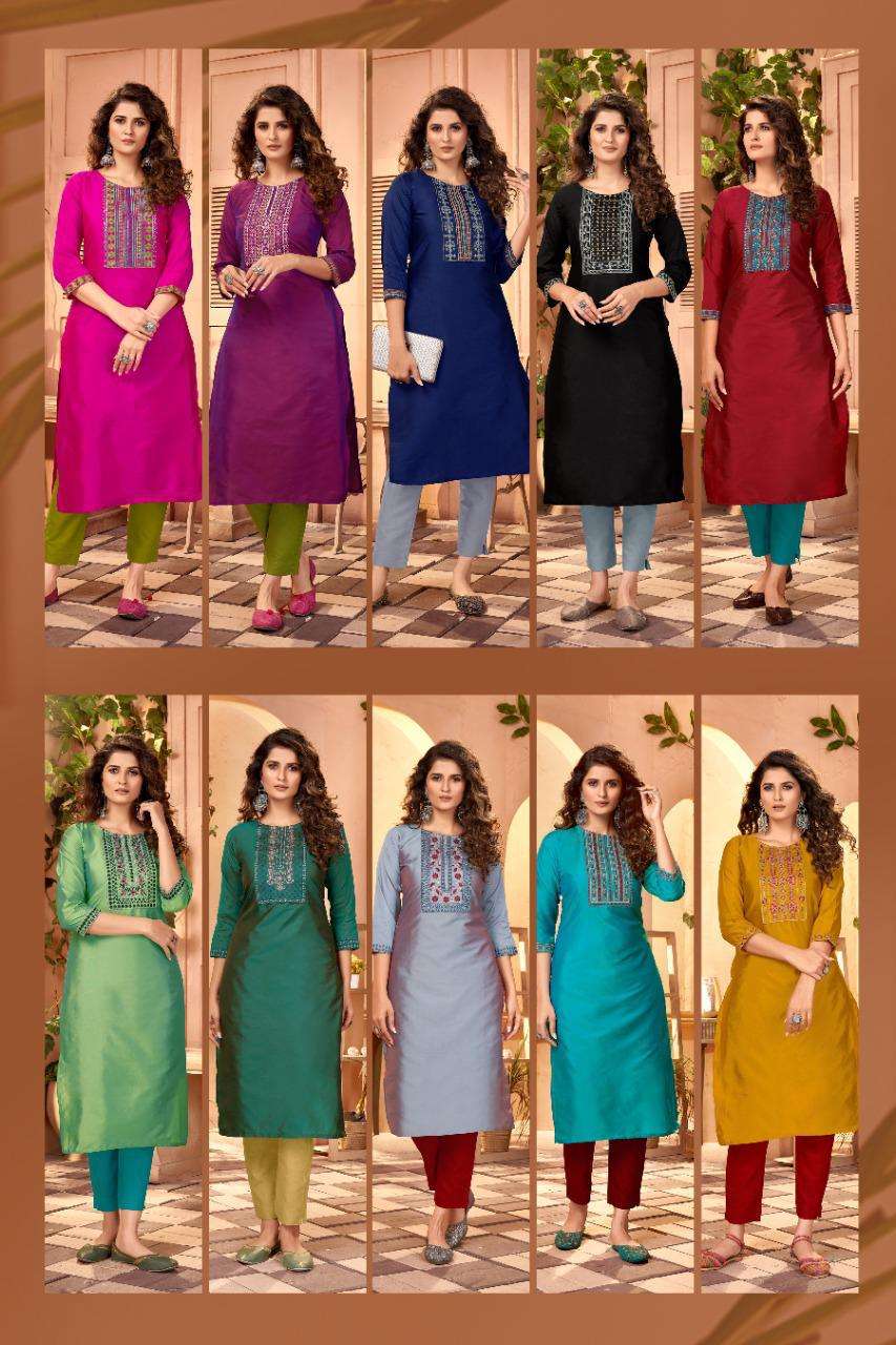 BLUE HILLS (KURTI) Presents Catalogue name:-         SOLID  VOL 5 CLOTH:- Cotton tapeta Embroidery Style:-  neck embroidery with zari Pattern-: Straight Cut With Size:- M,L,XL,XXL,3XL,4XL,5XL,6XL,7XL,8XL AVAILABLE Rate - 360+GST 10 DESIGNS CATALOGUE Dispatch in 3 to 4 days Set to set |