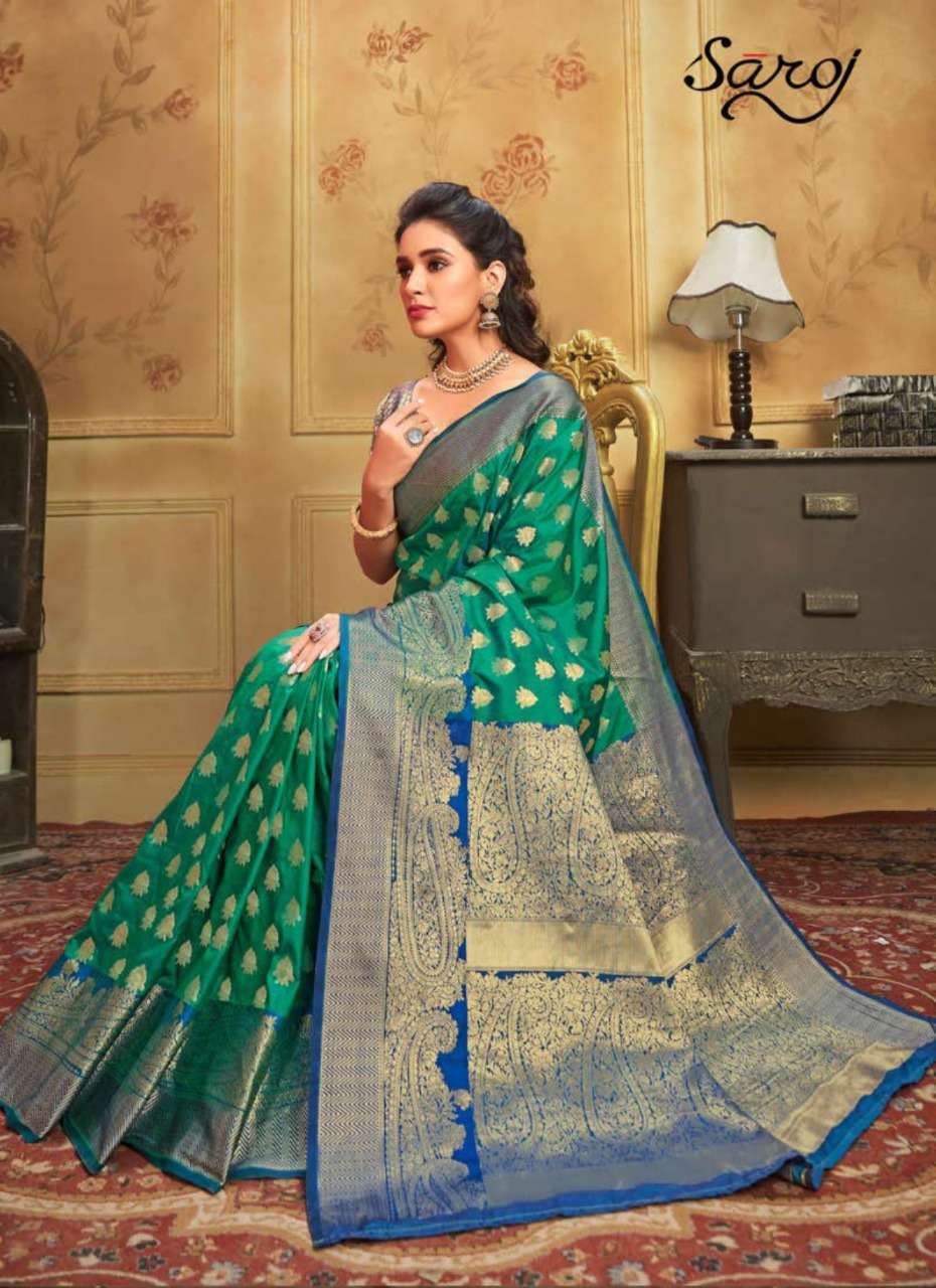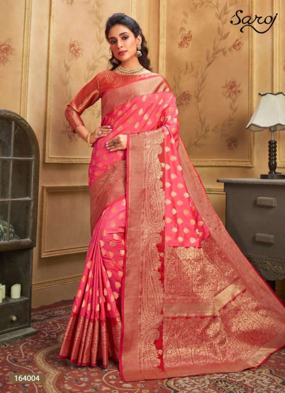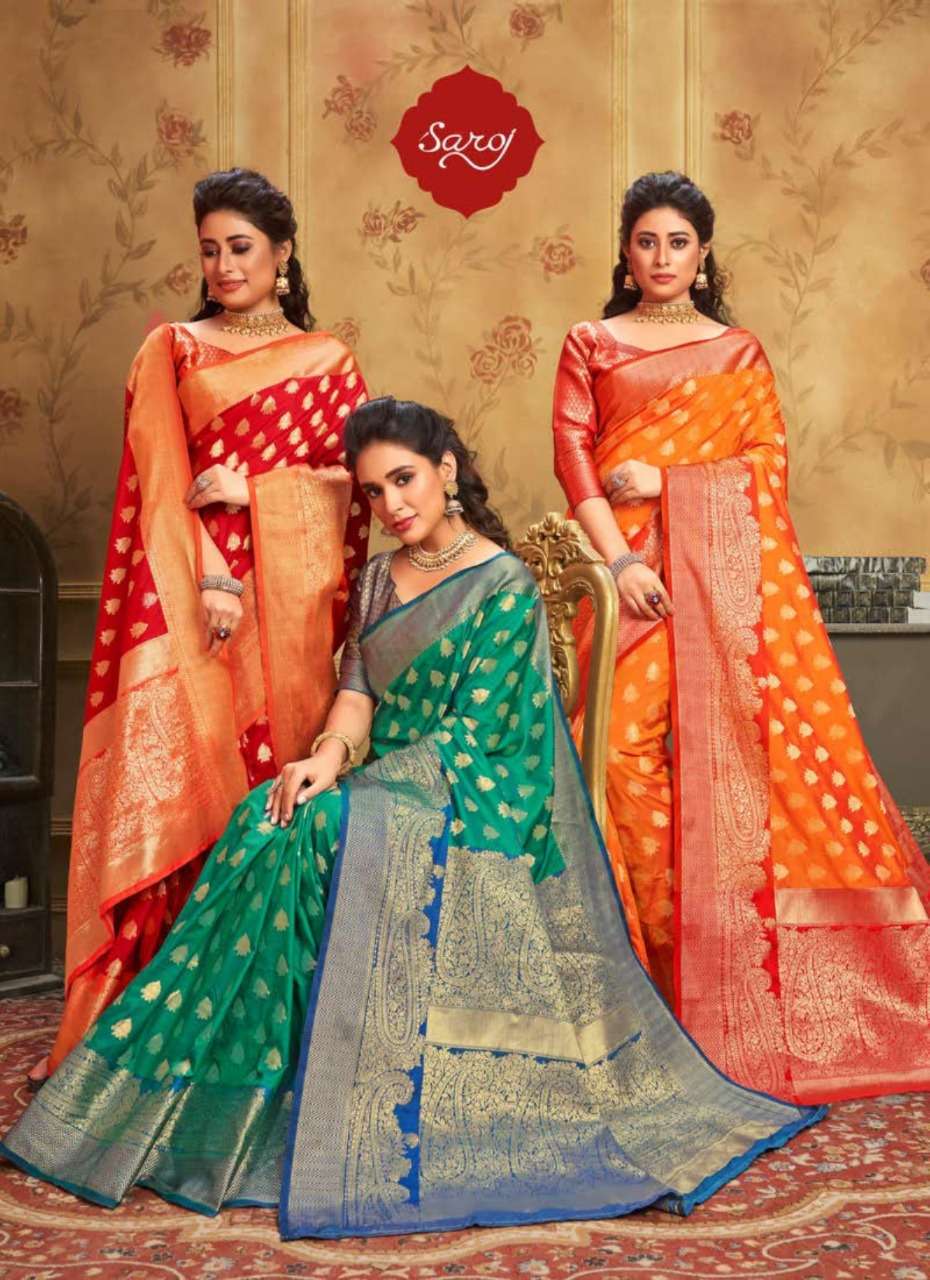 Brand - Saroj . Fabric: Dora Sikl (Banarsi Type) Viscoss Butti Jaq. Border. |