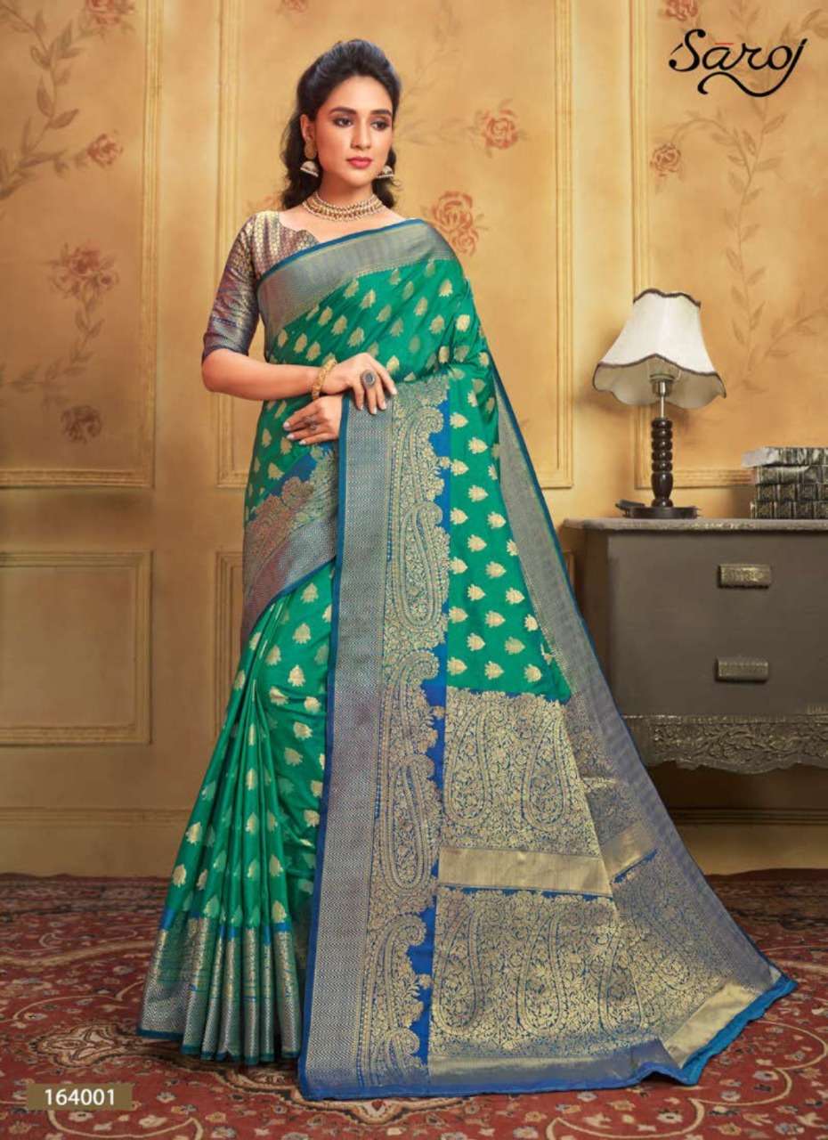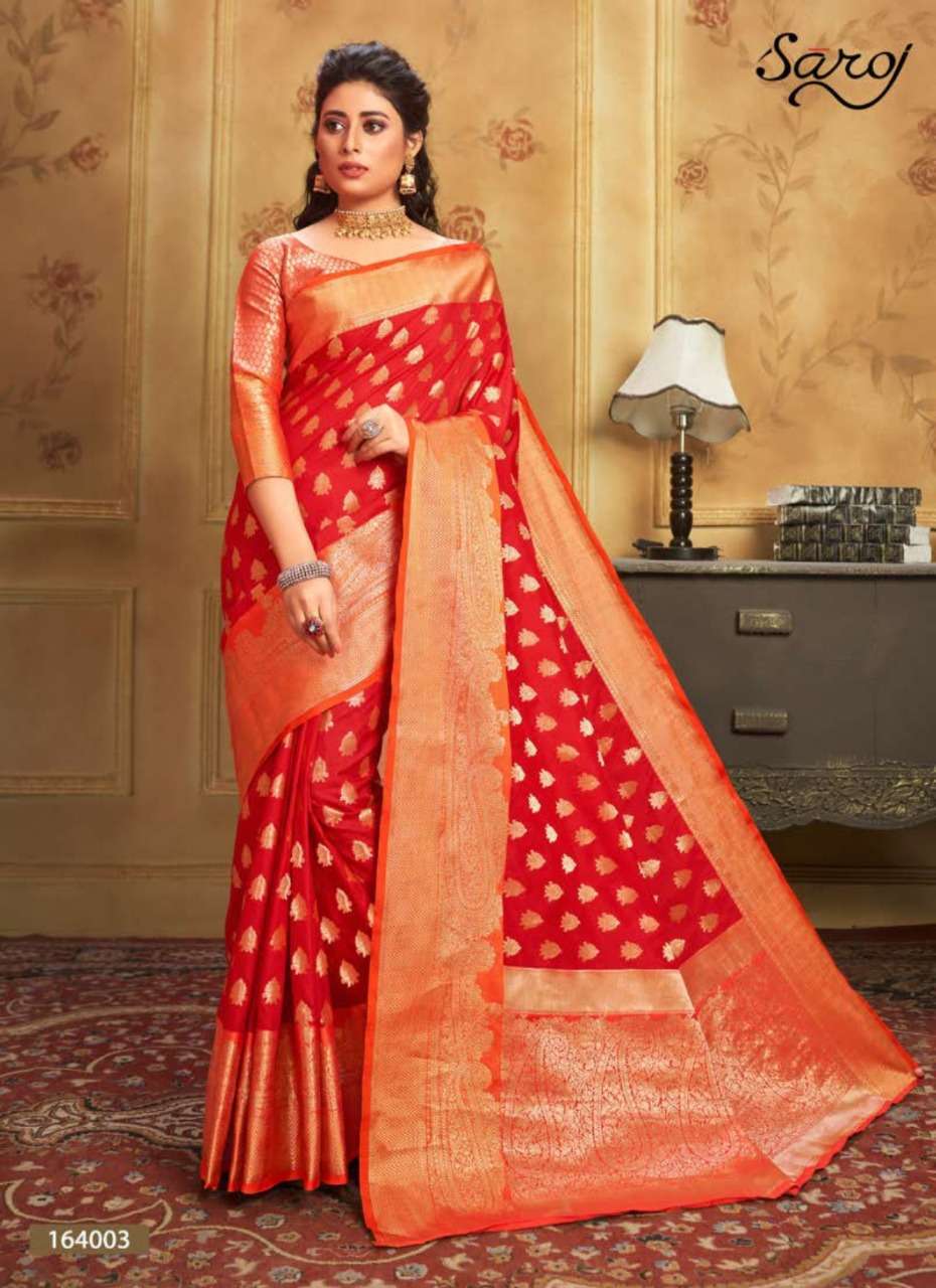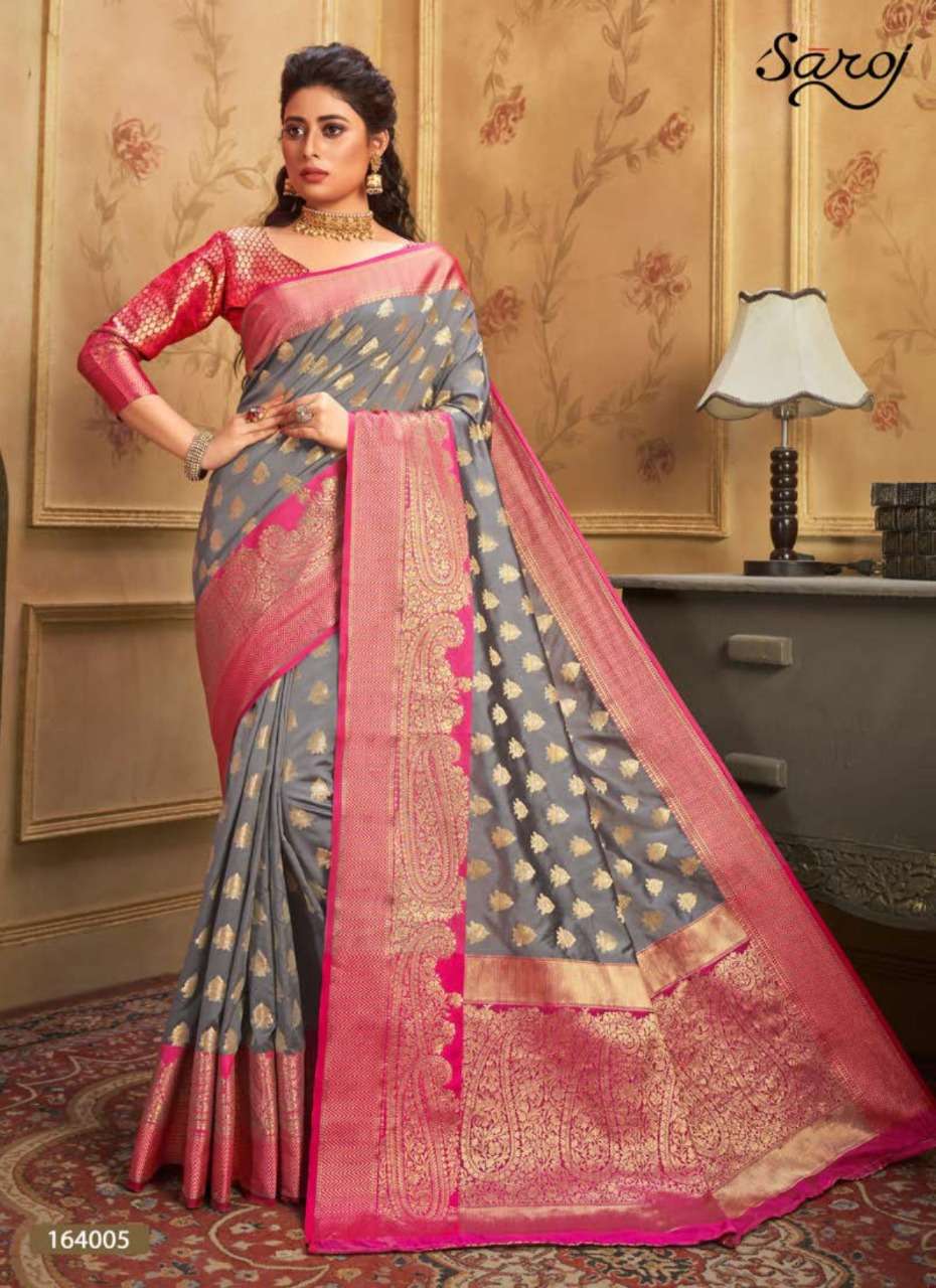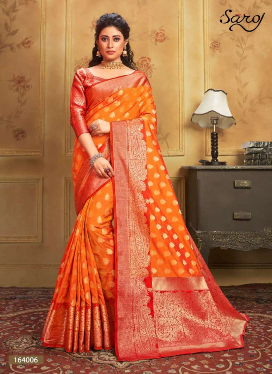 Brand - Saroj . Fabric: Dora Sikl (Banarsi Type) Viscoss Butti Jaq. Border. |