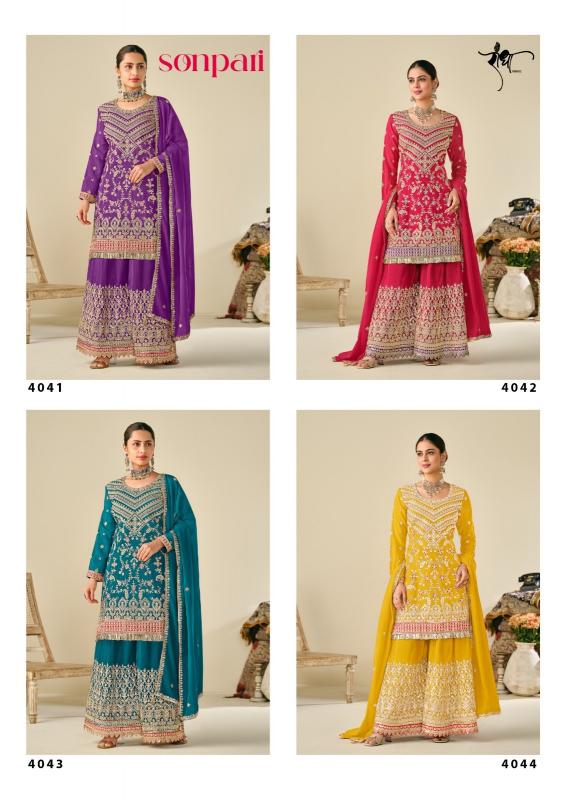 sonpari by radha trendz chinon readymade fashionable plazzo suits online