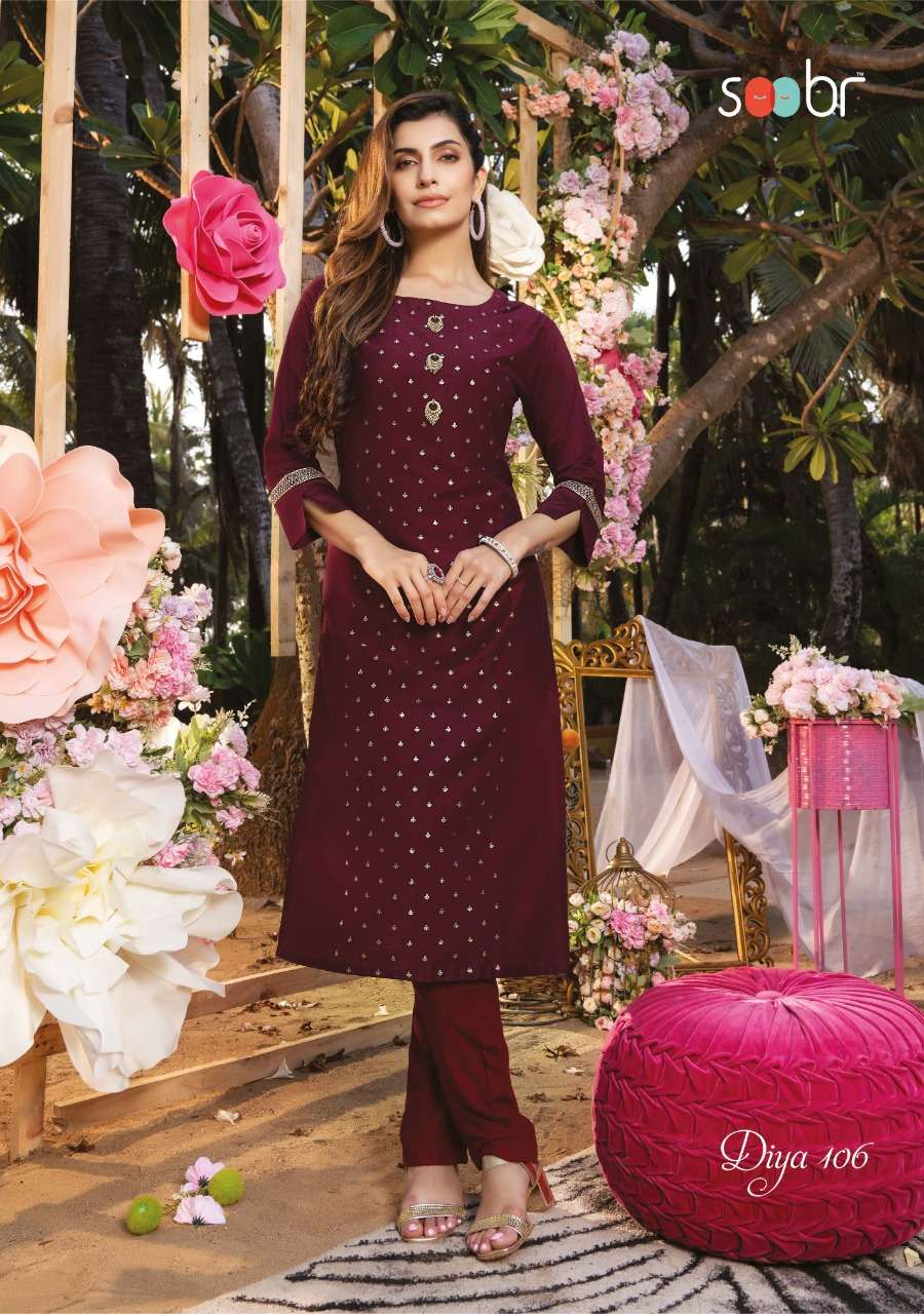 soobr diya straight silky readymade kurtis online wholesaler