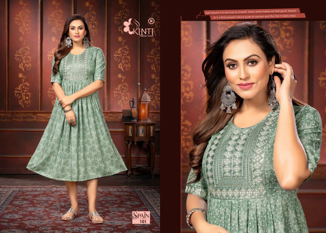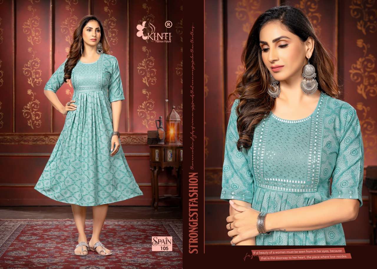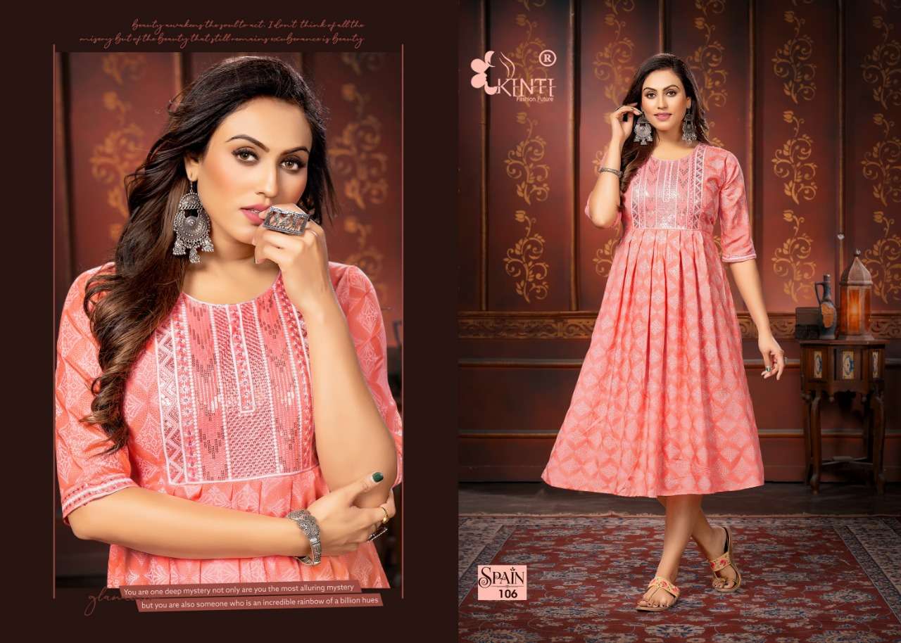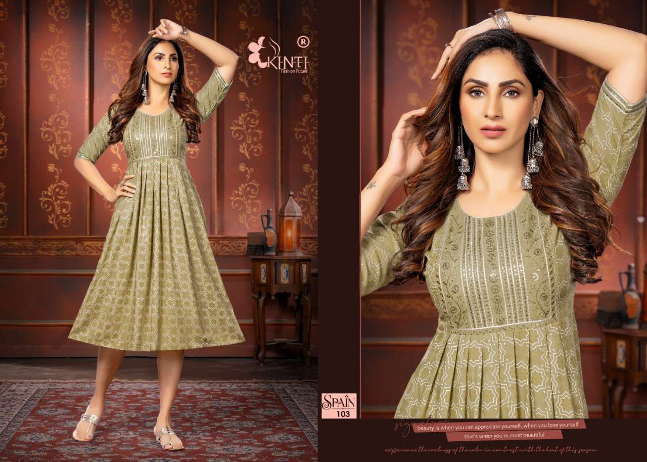 spain by kinti sequence embroidery kurti wholesale