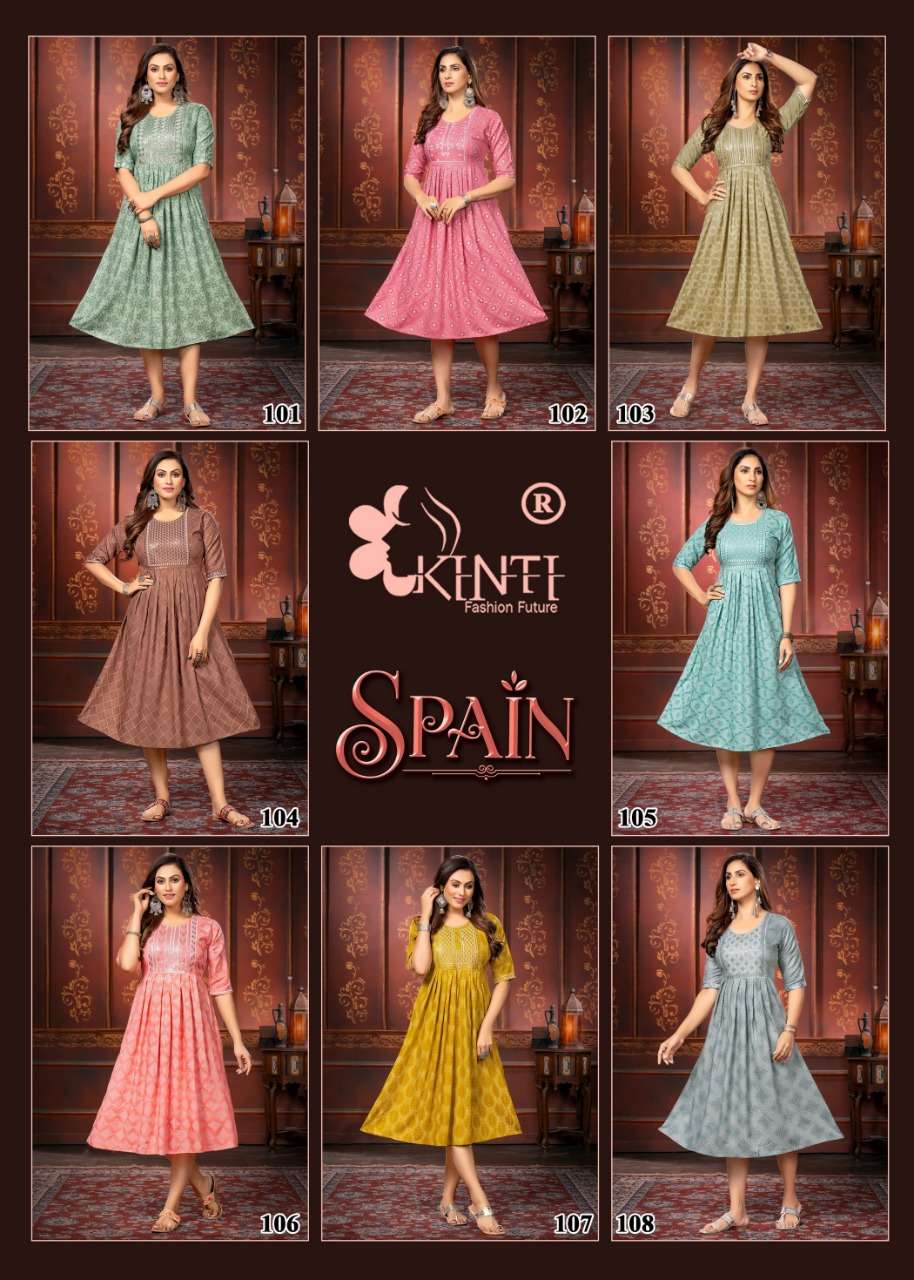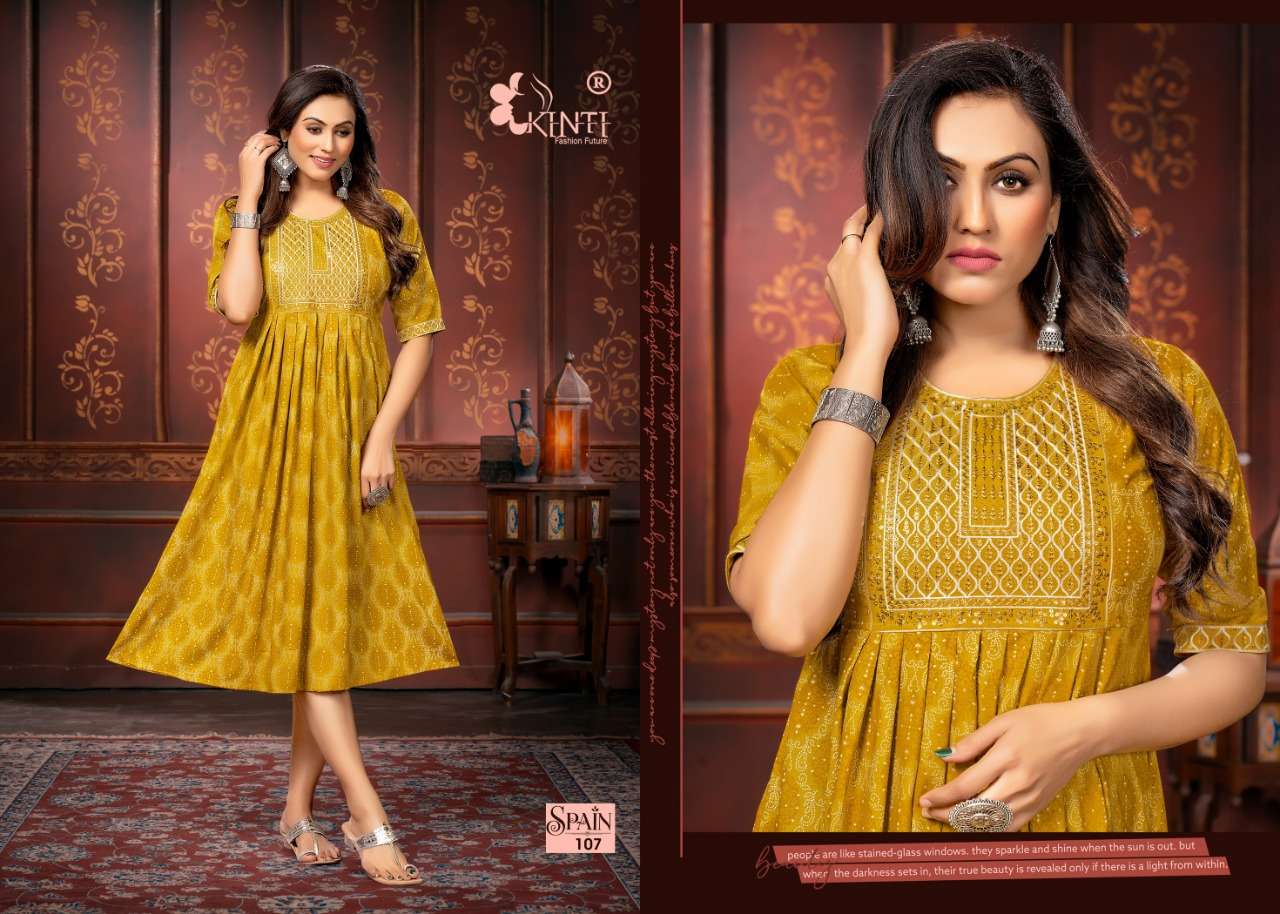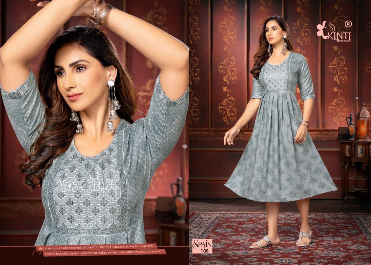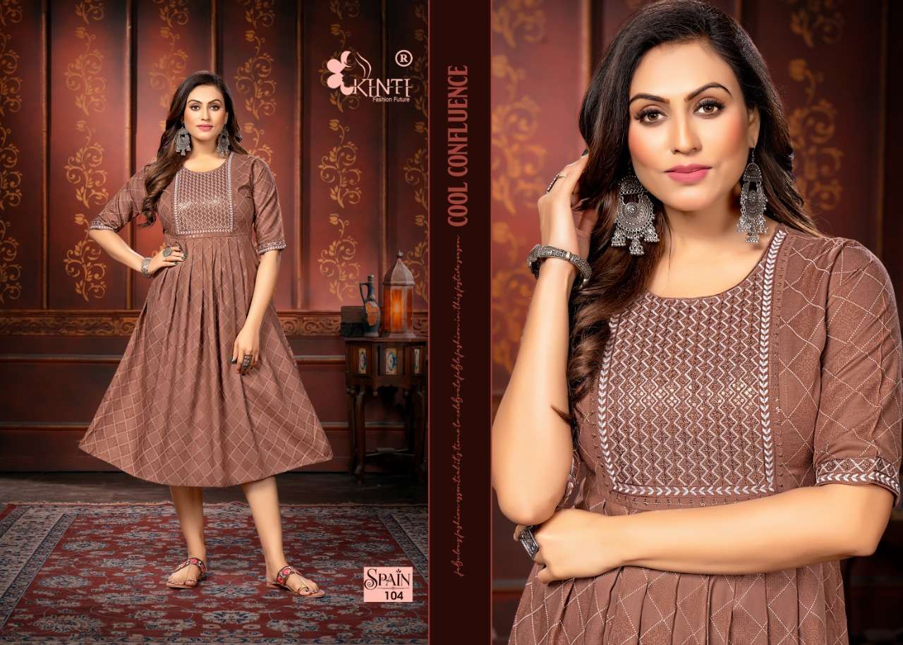 spain by kinti sequence embroidery kurti wholesale
