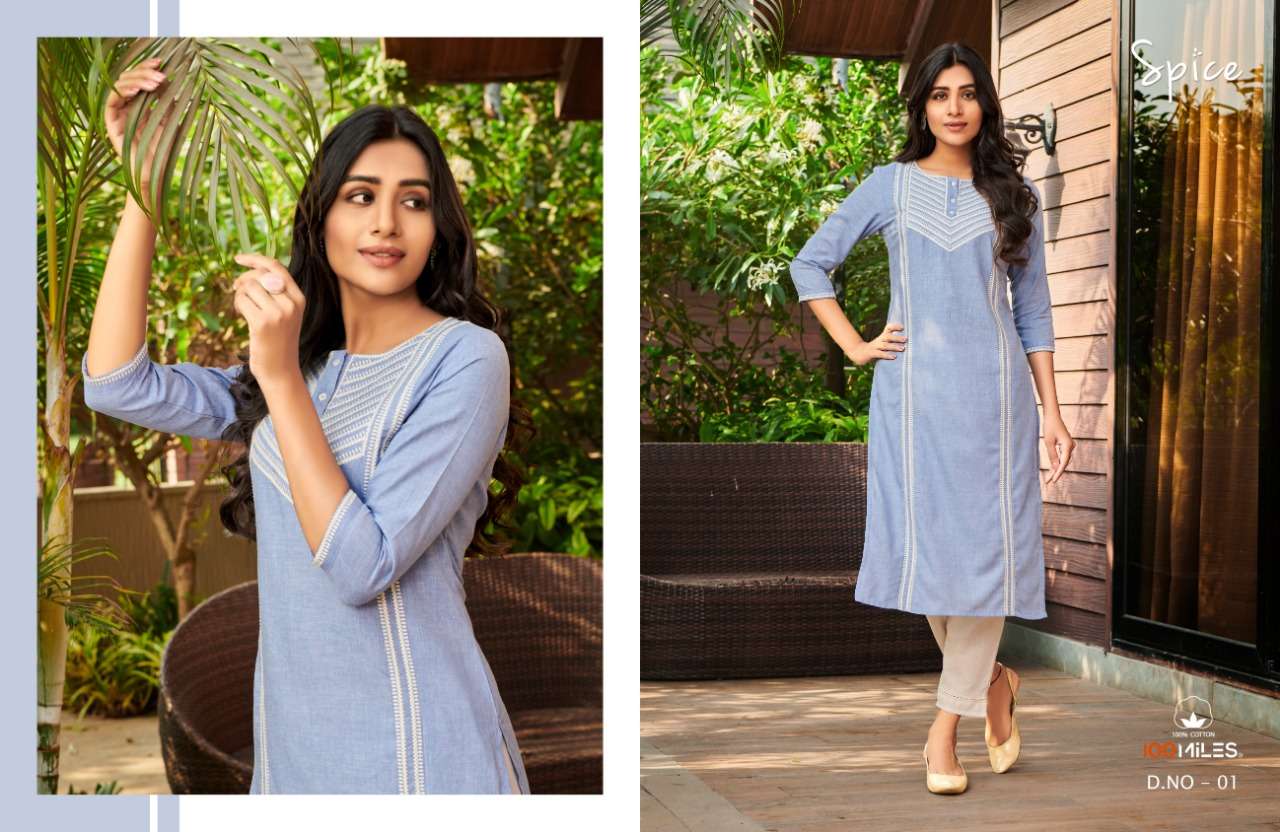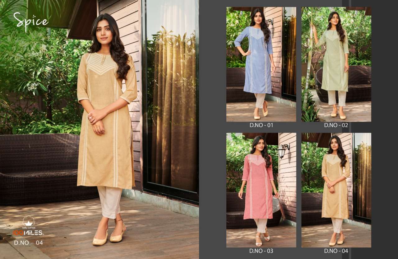 Catalog : SPICE Style : Pure Linen Cotton fancy embroidered Kurtis with back work also. BRAND : 100MILES® SIZES : S to 2XL RATE : 435/- Pieces: 4 per Bag |