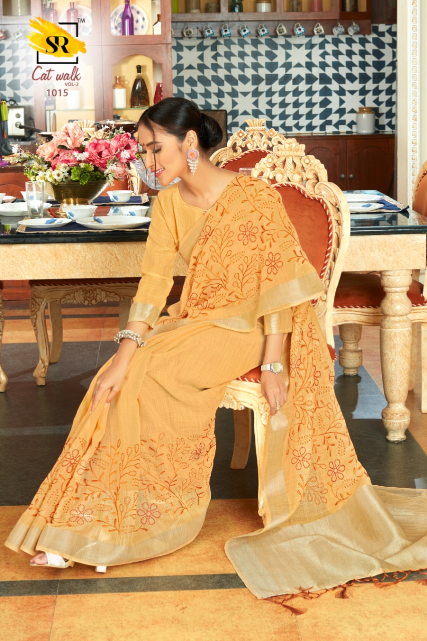 SR-BRANDS New Catalog CATWALK VOL 2 A New Concept now in new design Fabric- PURE LINEN WOTK WITH WEAVING PALLU Pes- 08PES Rate ~ 935/-₹ Concept- LINEN WORK Booking started HURRY |