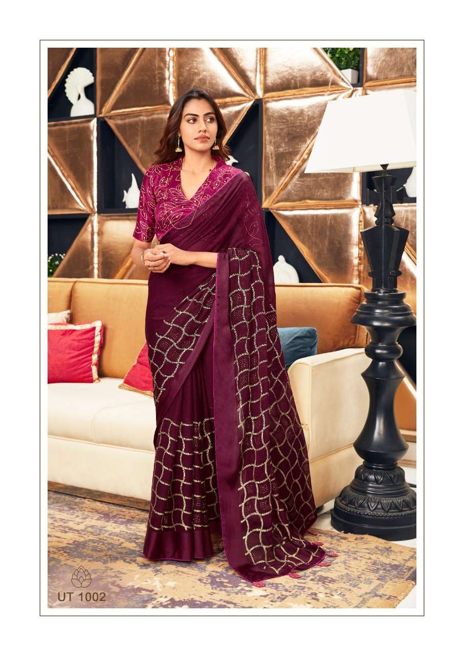 sr present utsav designer swaroski work saree with handwork blouse peice collection