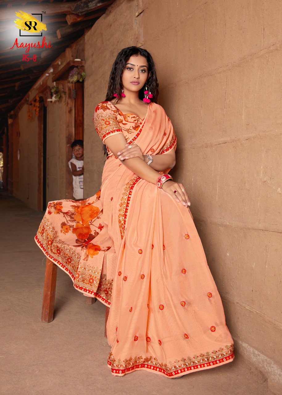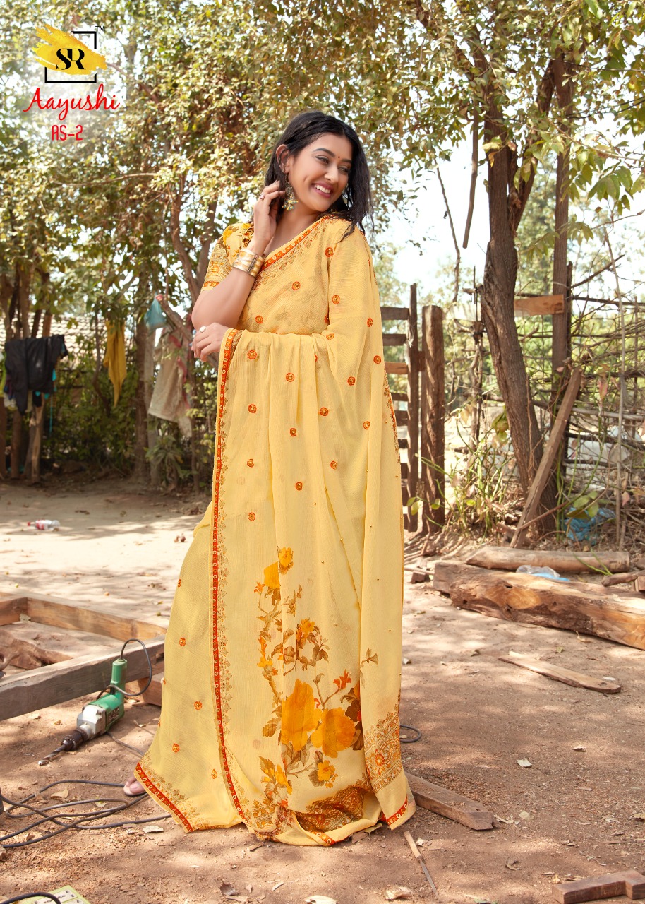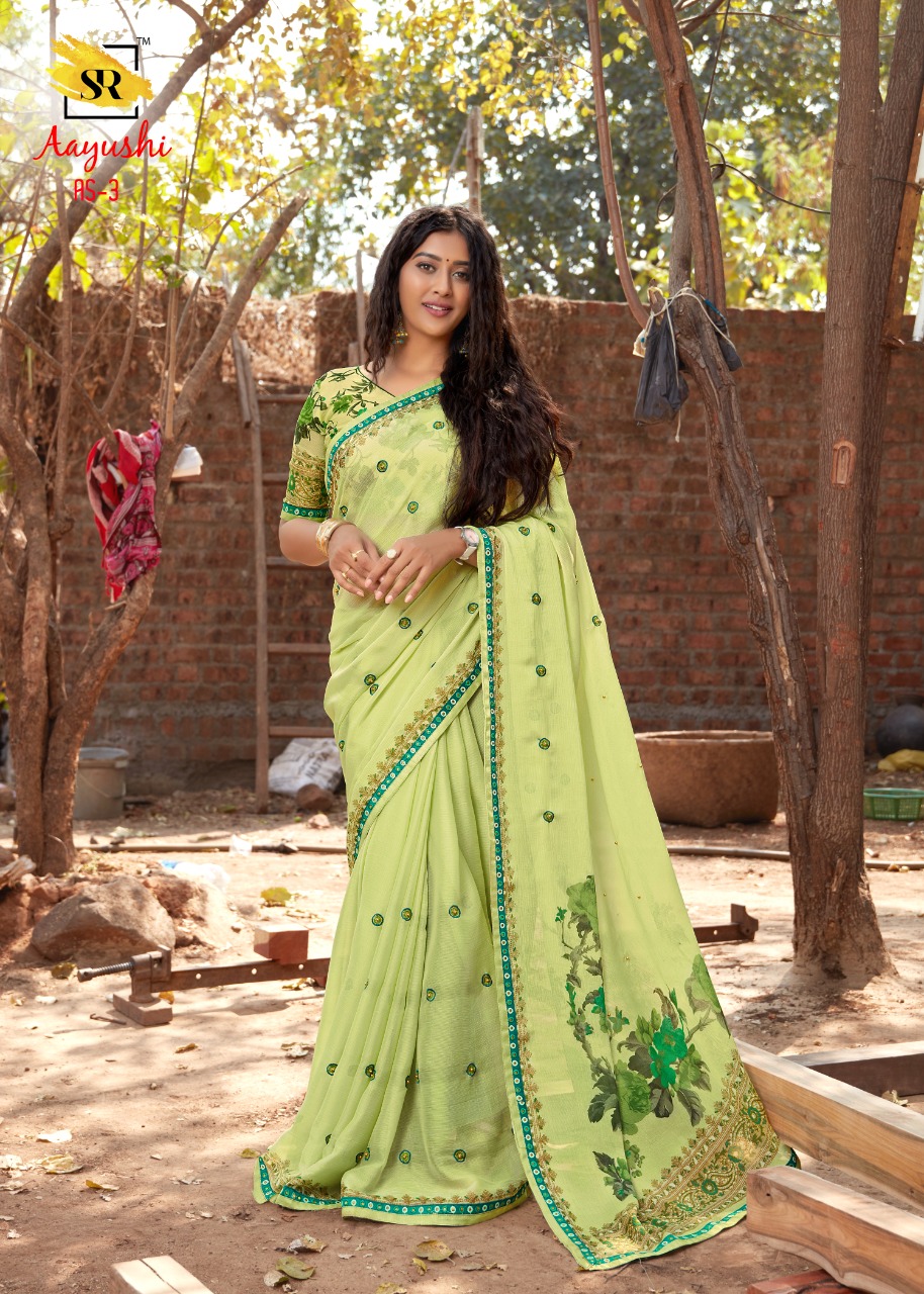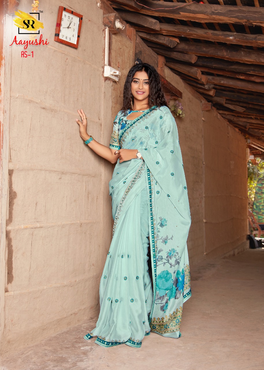 Sr Presents Aayushi Chiffon Embroidery Work Printed Saree At Wholesale Price