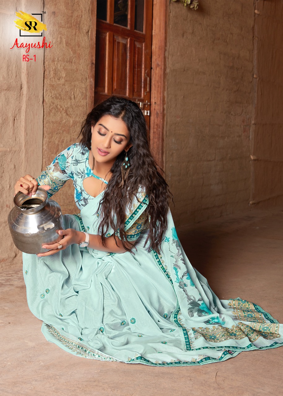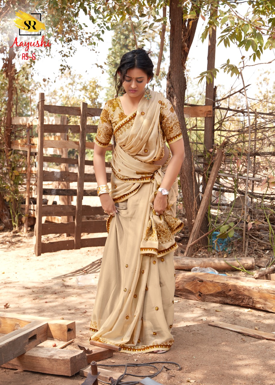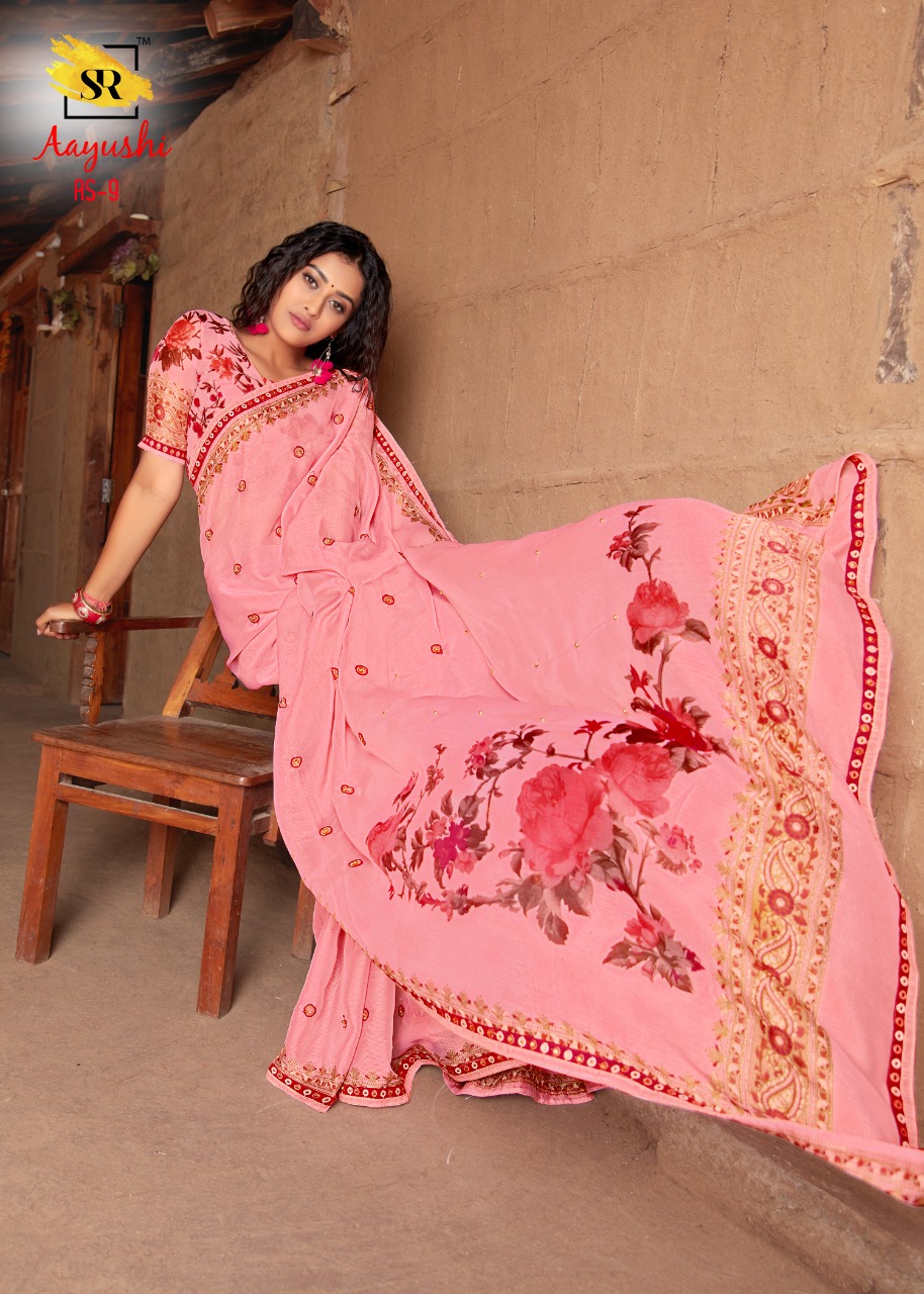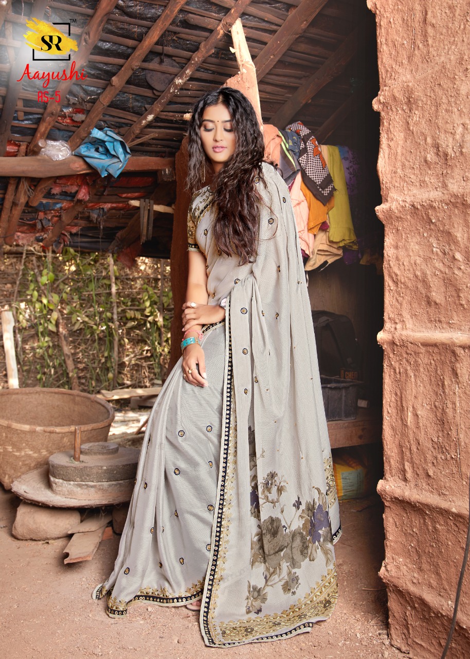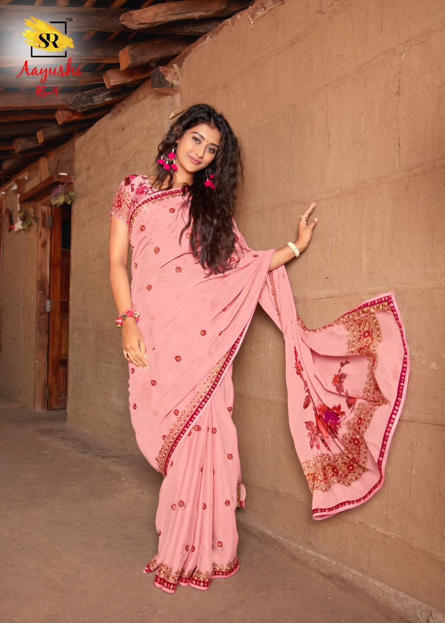 Sr Presents Aayushi Chiffon Embroidery Work Printed Saree At Wholesale Price
