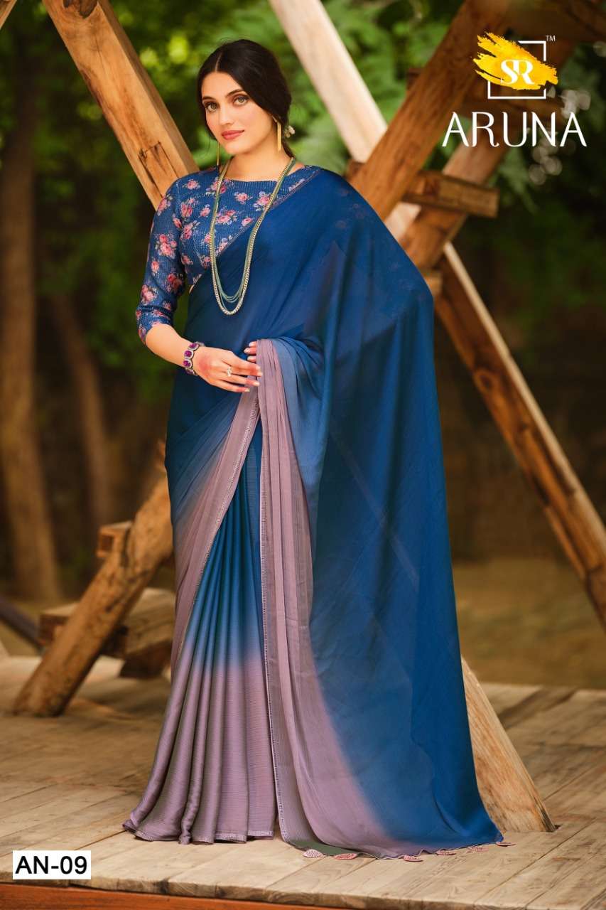 sr saree aruna hit 3d velvet chiffon fancy saris with sequence work blouse wholesaler