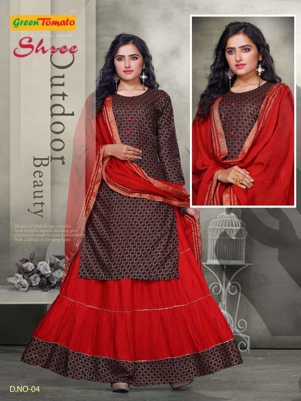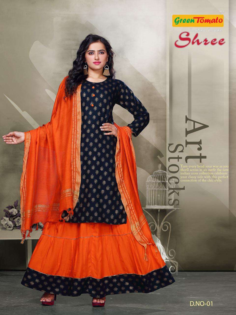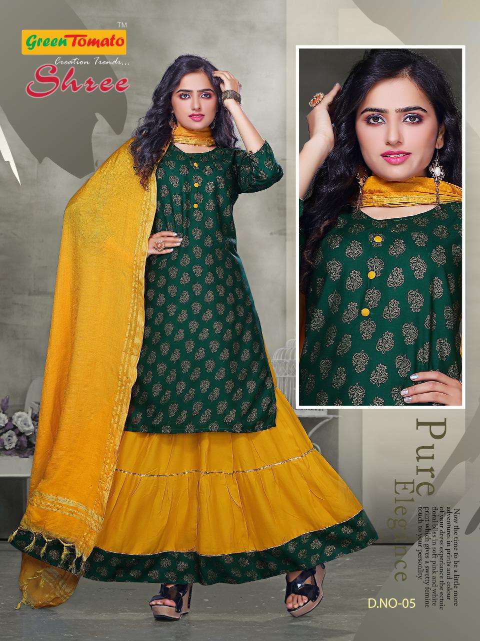 Sree By Green Tomato Heavy Rayon Readymade Suit Catlog