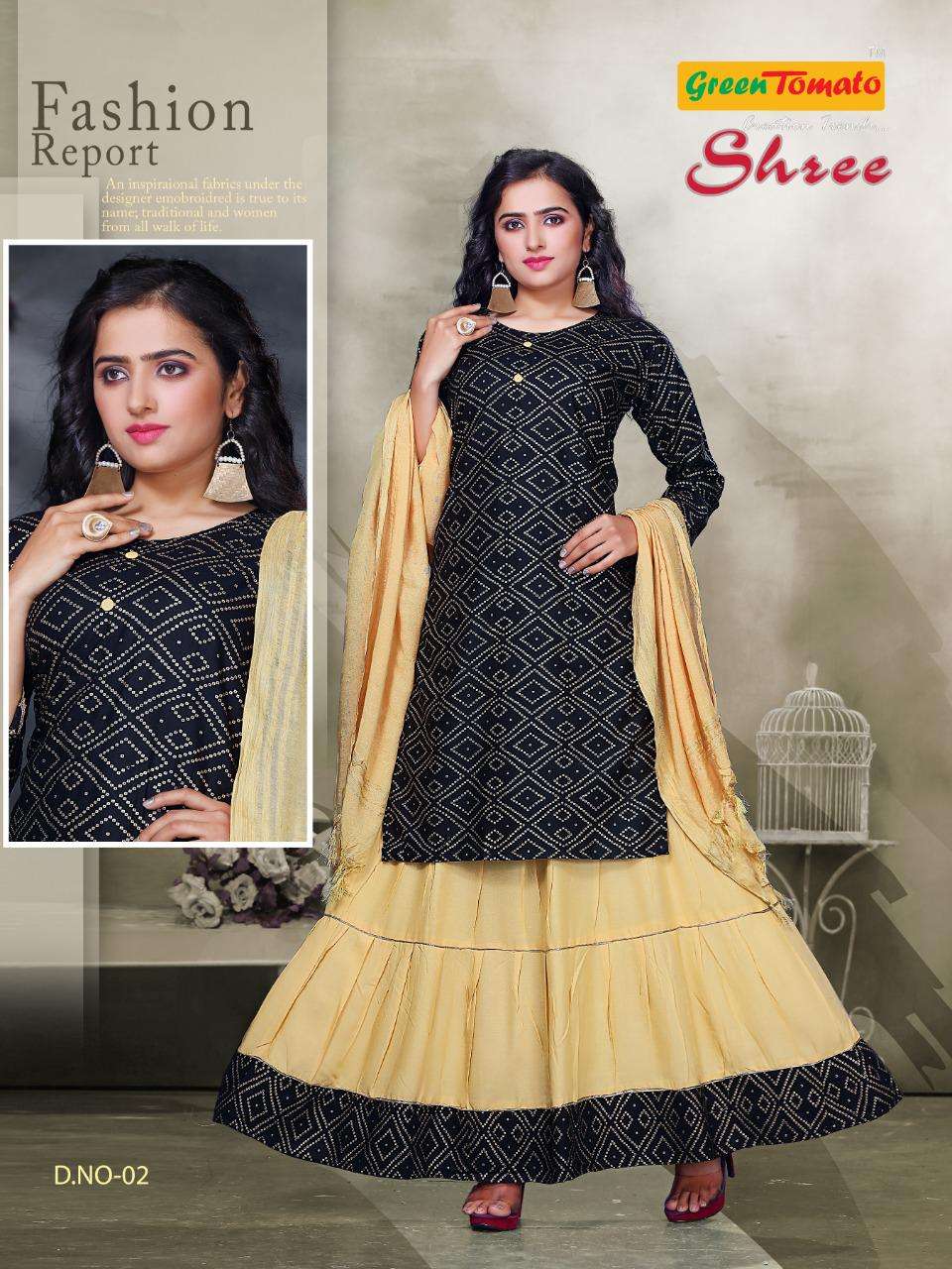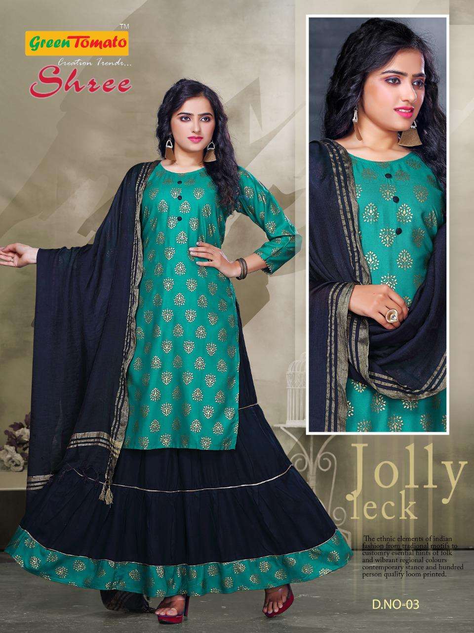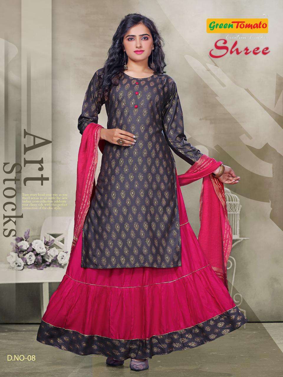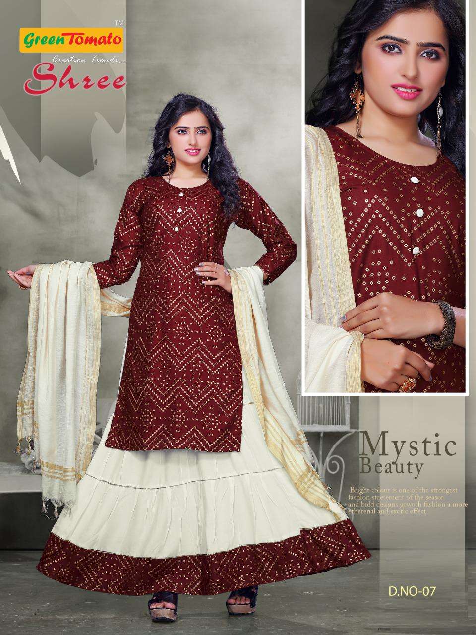 Sree By Green Tomato Heavy Rayon Readymade Suit Catlog