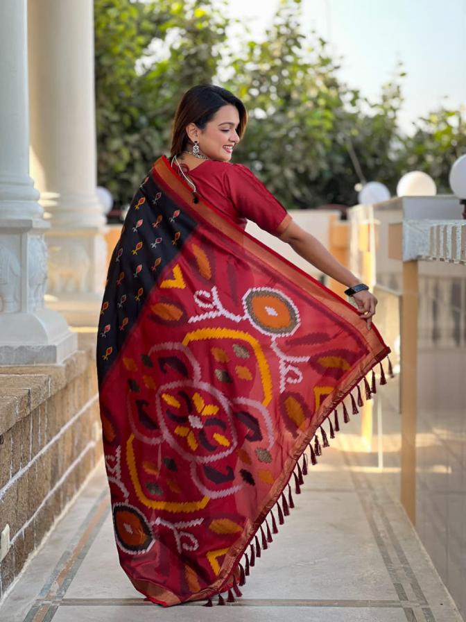 New Catalog ❤️❤️ Name : Srivali Description : Weaving Silk Saree With Ikkat And Patola Weaving Concept in Saree, Along with Contrast Weaving Border, Contrast Rich Pallu And Contrast Blouse as Shown. Fabric : Soft Silk. Rate : 1499/- +gst 100% Guarantee in Fabric. Single’s and Bulk Ready. |