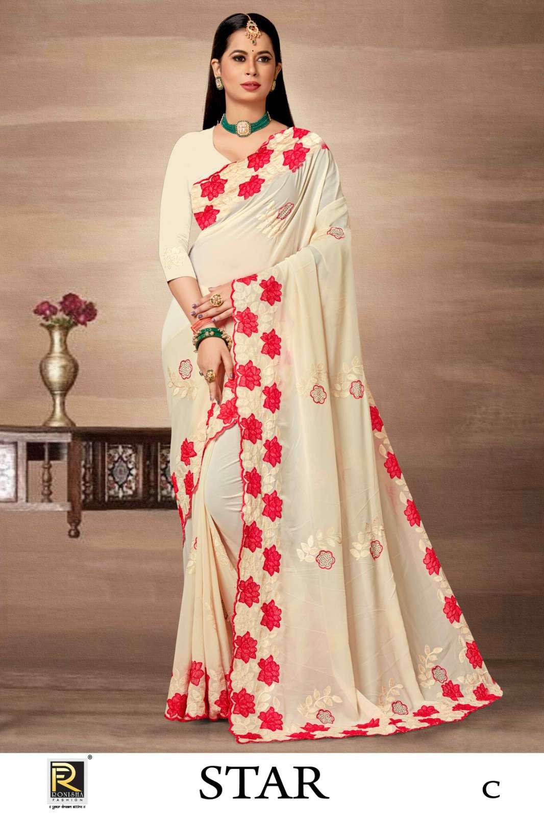 STAR BY RANJNA SAREE FANCY FABRICS EMBROIDERY WORK & FANCY DESIGNER BORDER SUPER HIT COLLECTION