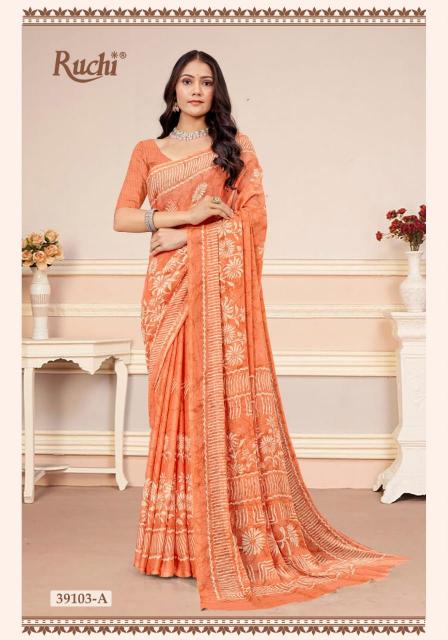 star chiffon 182 by ruchi linen silk with weaved rainbow best sarees online
