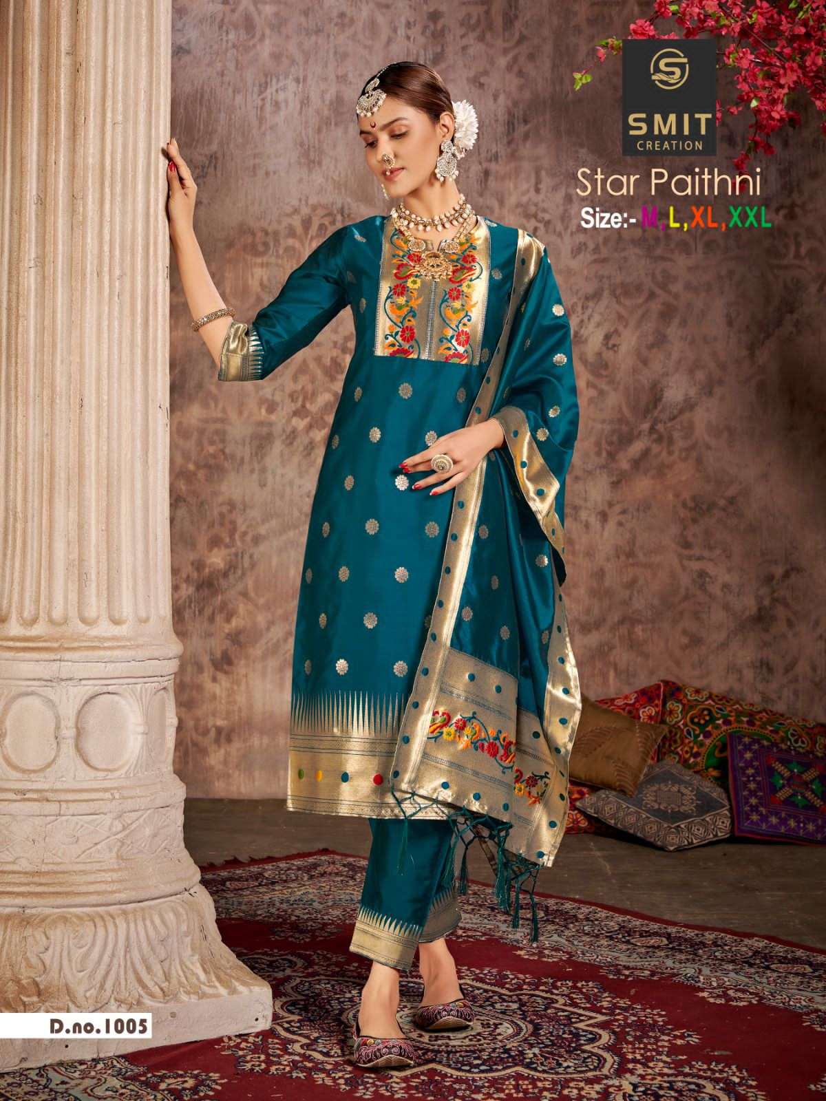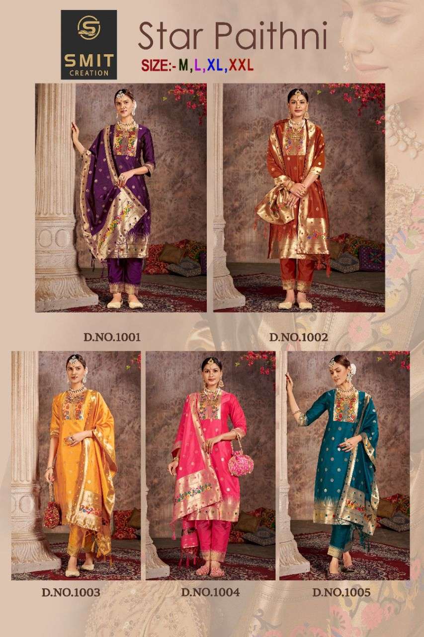 SMIT CREATION®️👩🎨 “STAR PAITHNI” Top 👗-Pure Tapela Silk With Bottam- Pure Tapeta Pant With Duptta- Pure Tapeta With Pallu SIZE:- M Pattern. 3. Pecs. Readymade ₹799/- per pcs |