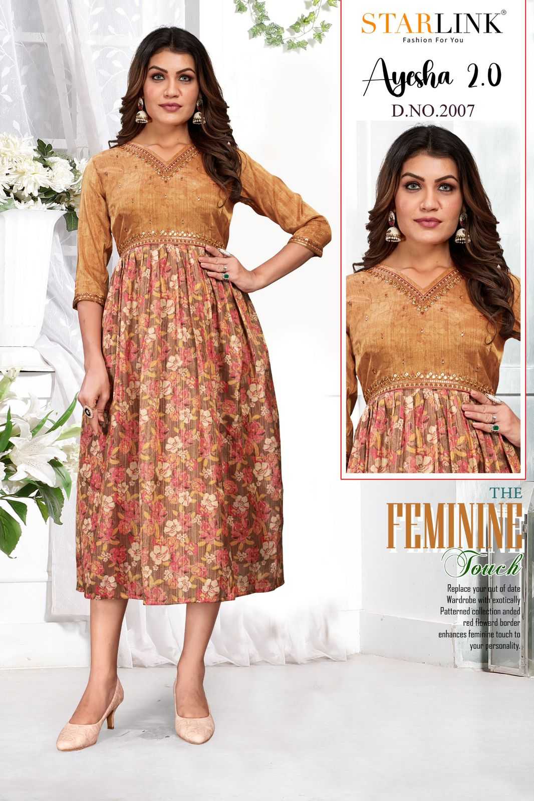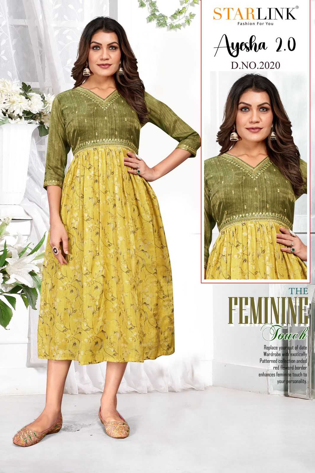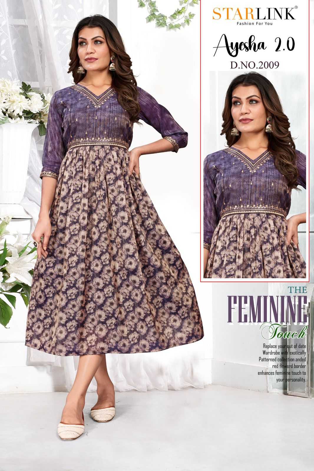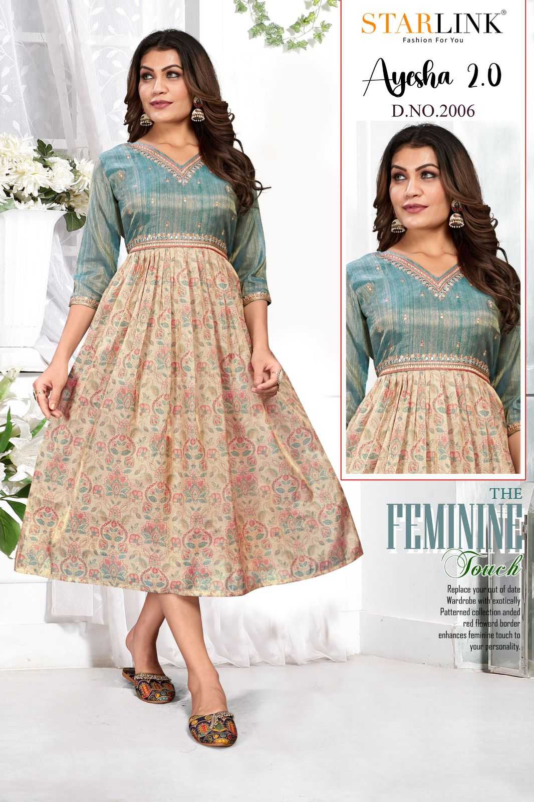 STARLINK THE WAIT IS OVER We are back again to excite you with our new kurti launch:- 👗Name:- AYESHA 2.0 🧶About🧶 🪢TOP :-ERODE SILK WITH DIGITAL NEGATIVE PRINT CHOLI AND ERODE SILK WITH DIGITAL POSITIVE PRINT GHERA WITH PLEATING PATTERN 🎨Eye-Catching 25 Colours 👗FITS:- *M/L/XL/XXL (Combo Packing)* 🪡LENGTH:- 48 We are letting you know first so you can get those earlybird advantage of getting all patterns/colours. ONLY KURTI REGARDS, SHAGUN LIFE STYLE✌🏻 rate : 550/- |