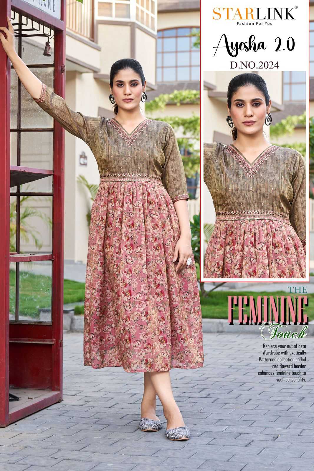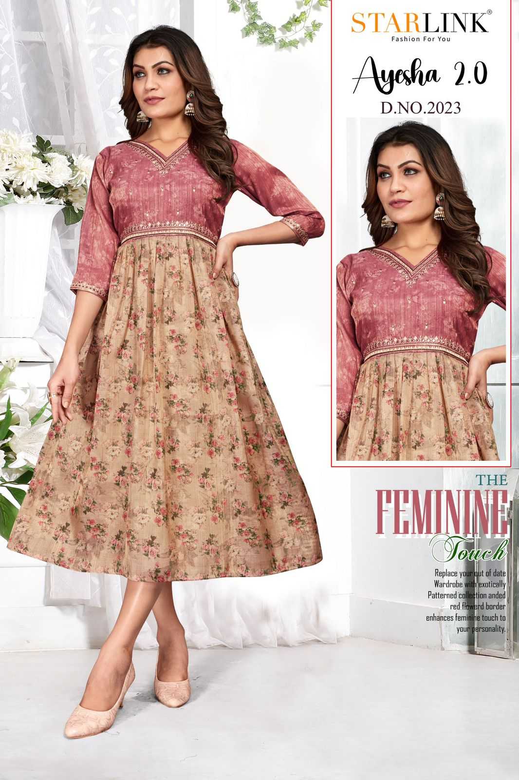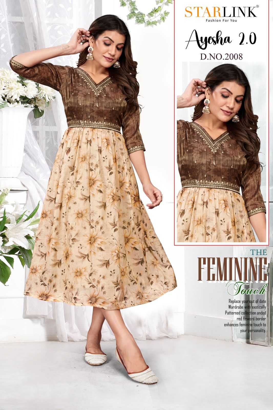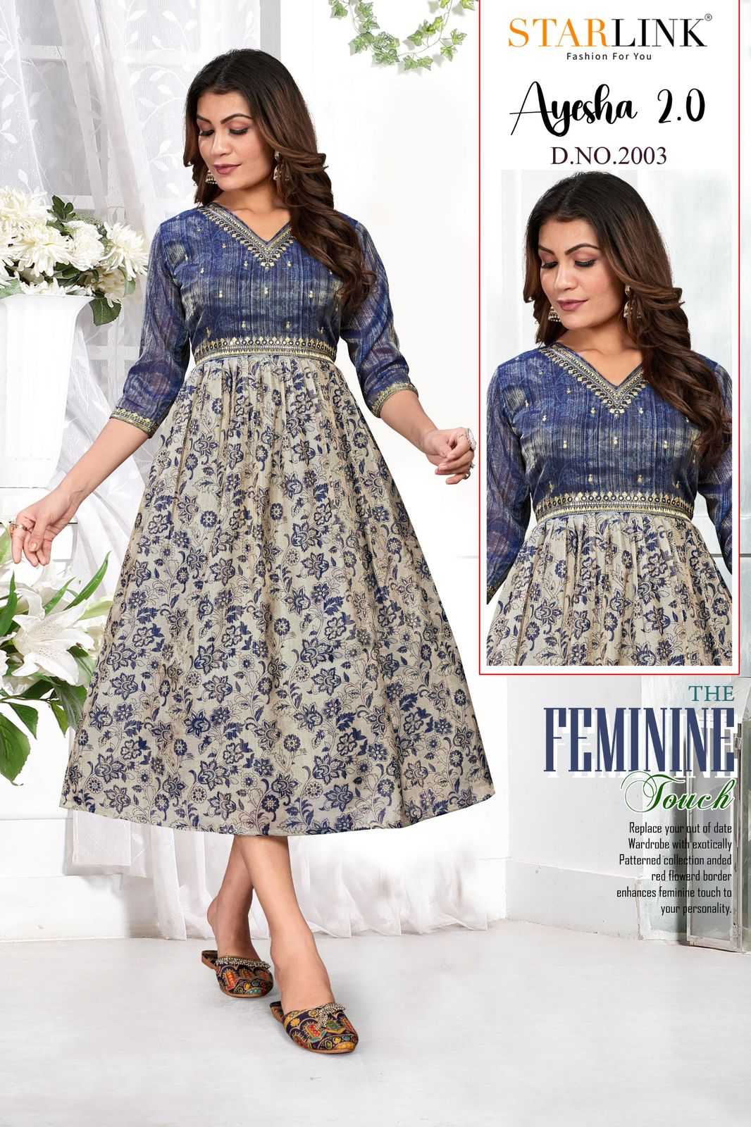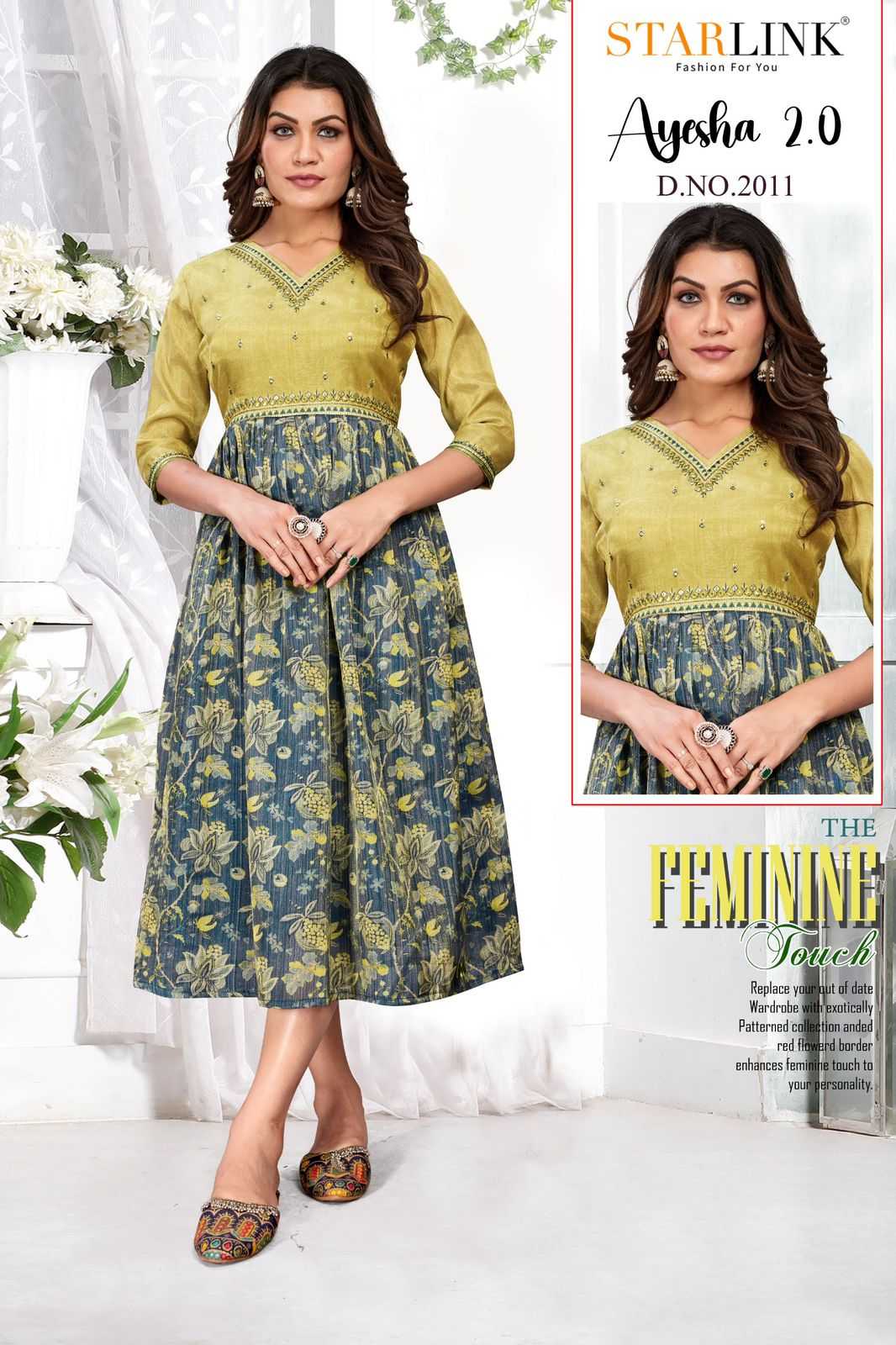 STARLINK THE WAIT IS OVER We are back again to excite you with our new kurti launch:- 👗Name:- AYESHA 2.0 🧶About🧶 🪢TOP :-ERODE SILK WITH DIGITAL NEGATIVE PRINT CHOLI AND ERODE SILK WITH DIGITAL POSITIVE PRINT GHERA WITH PLEATING PATTERN 🎨Eye-Catching 25 Colours 👗FITS:- *M/L/XL/XXL (Combo Packing)* 🪡LENGTH:- 48 We are letting you know first so you can get those earlybird advantage of getting all patterns/colours. ONLY KURTI REGARDS, SHAGUN LIFE STYLE✌🏻 rate : 550/- |