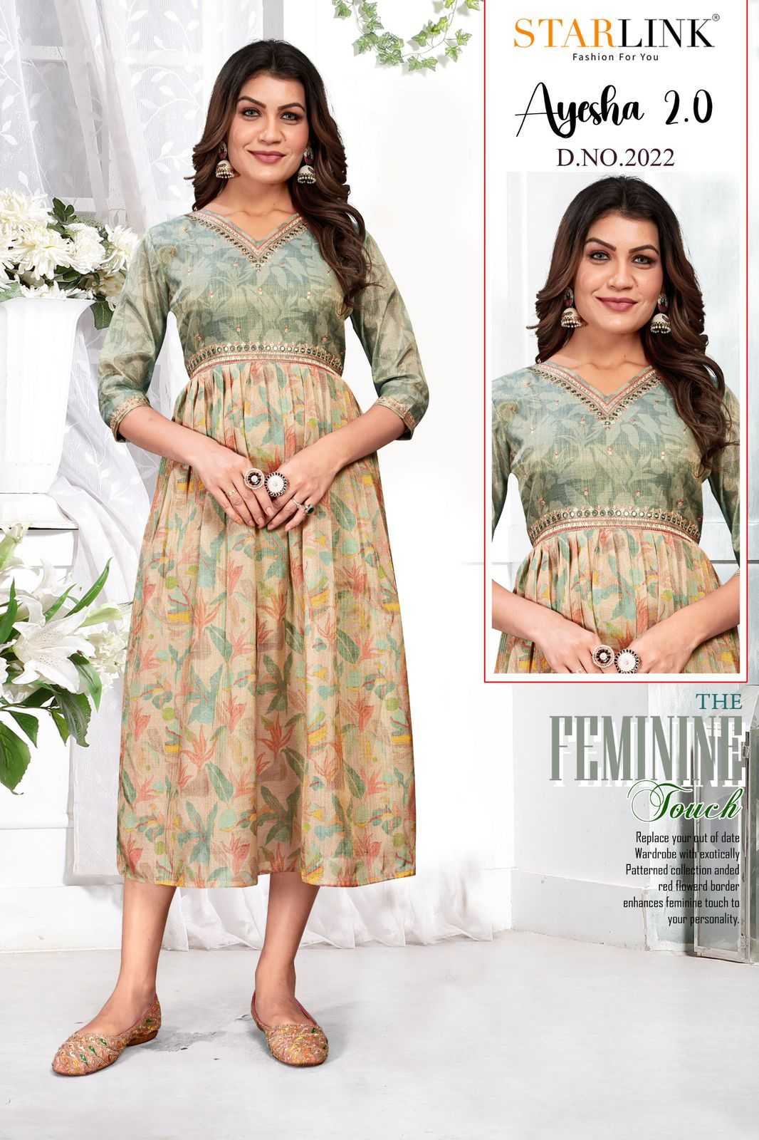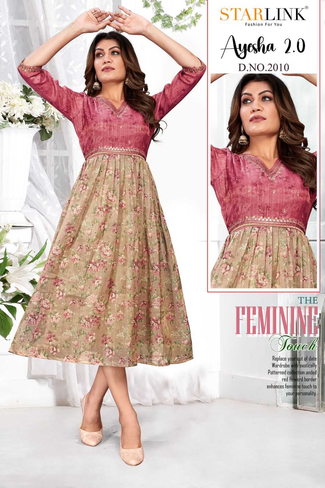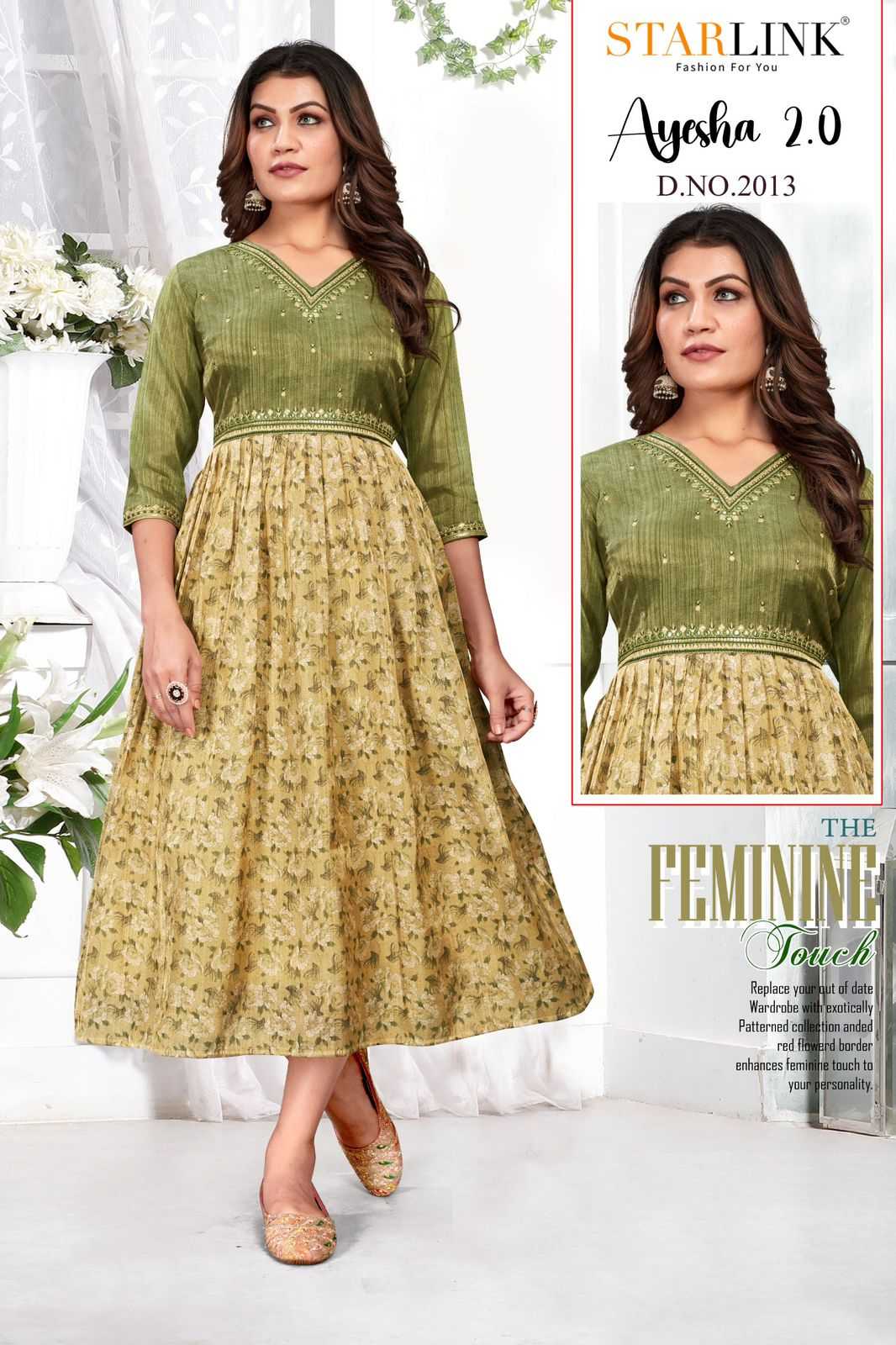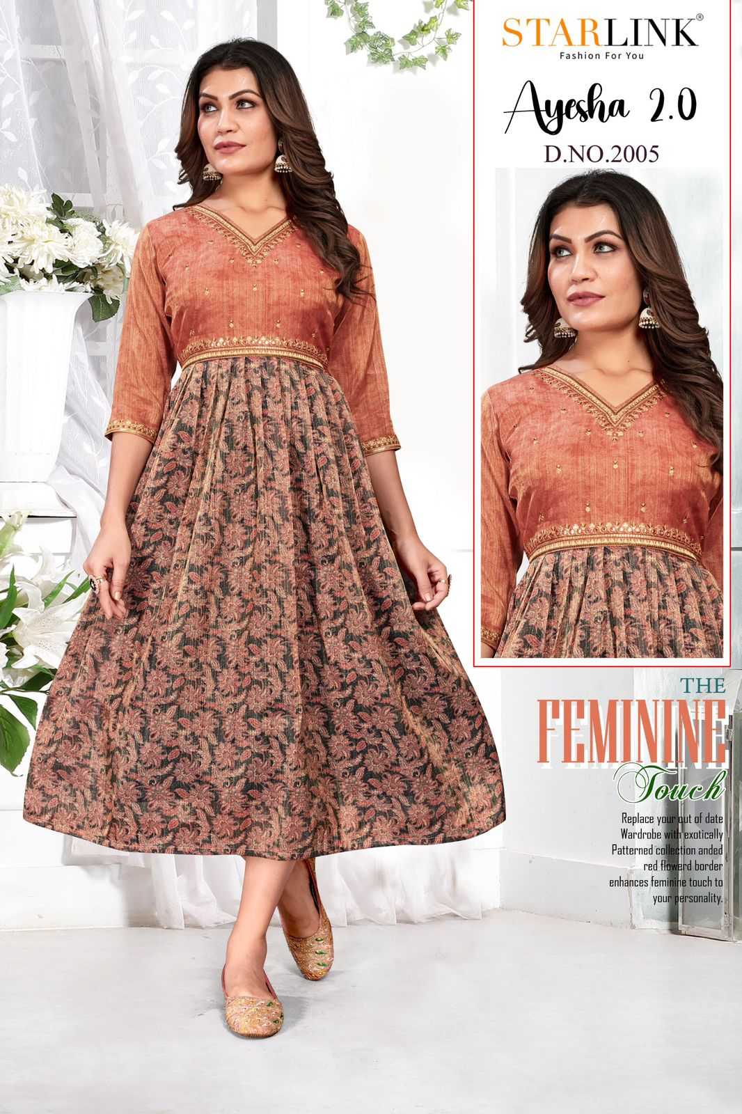 STARLINK THE WAIT IS OVER We are back again to excite you with our new kurti launch:- 👗Name:- AYESHA 2.0 🧶About🧶 🪢TOP :-ERODE SILK WITH DIGITAL NEGATIVE PRINT CHOLI AND ERODE SILK WITH DIGITAL POSITIVE PRINT GHERA WITH PLEATING PATTERN 🎨Eye-Catching 25 Colours 👗FITS:- *M/L/XL/XXL (Combo Packing)* 🪡LENGTH:- 48 We are letting you know first so you can get those earlybird advantage of getting all patterns/colours. ONLY KURTI REGARDS, SHAGUN LIFE STYLE✌🏻 rate : 550/- |