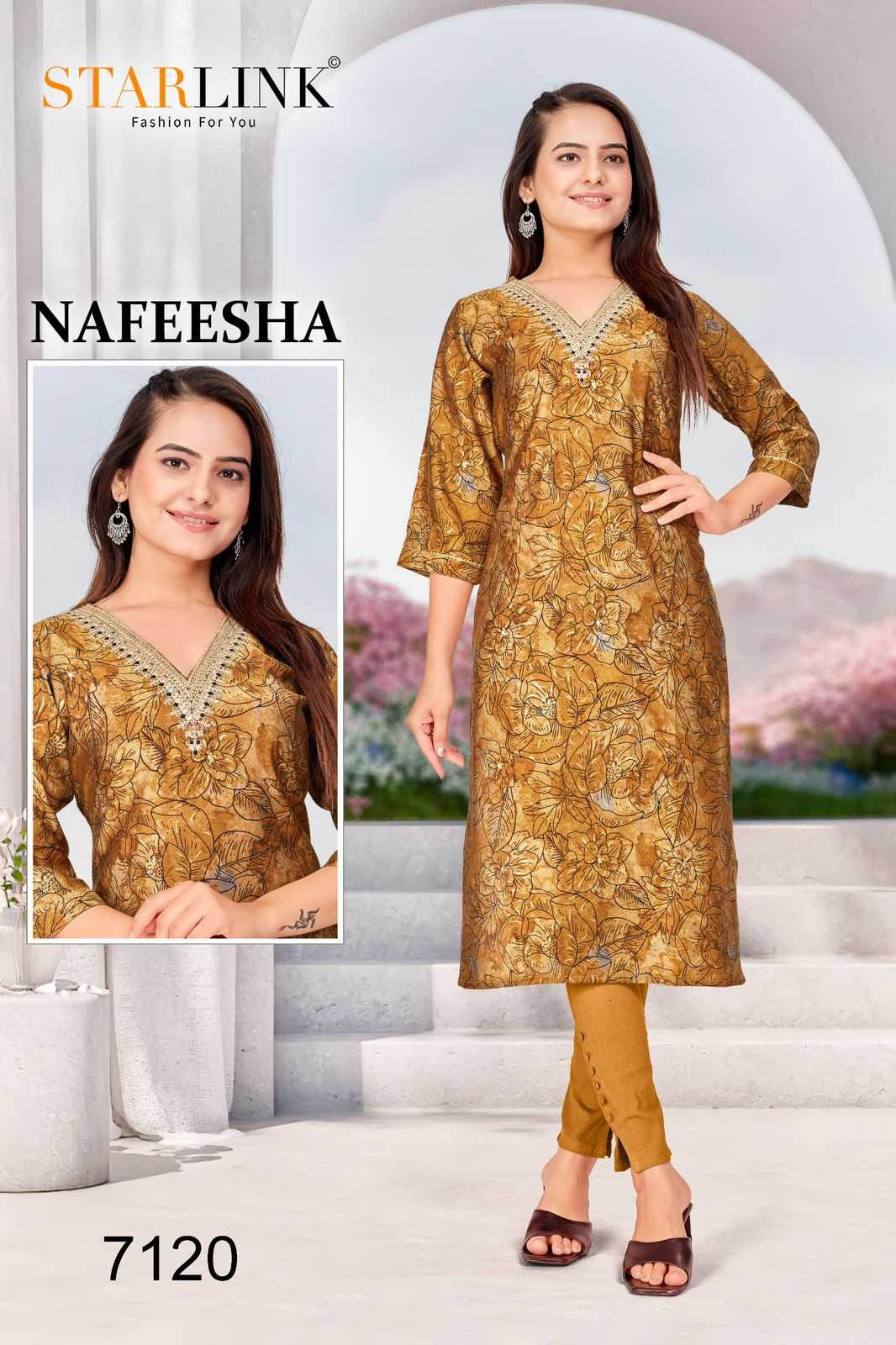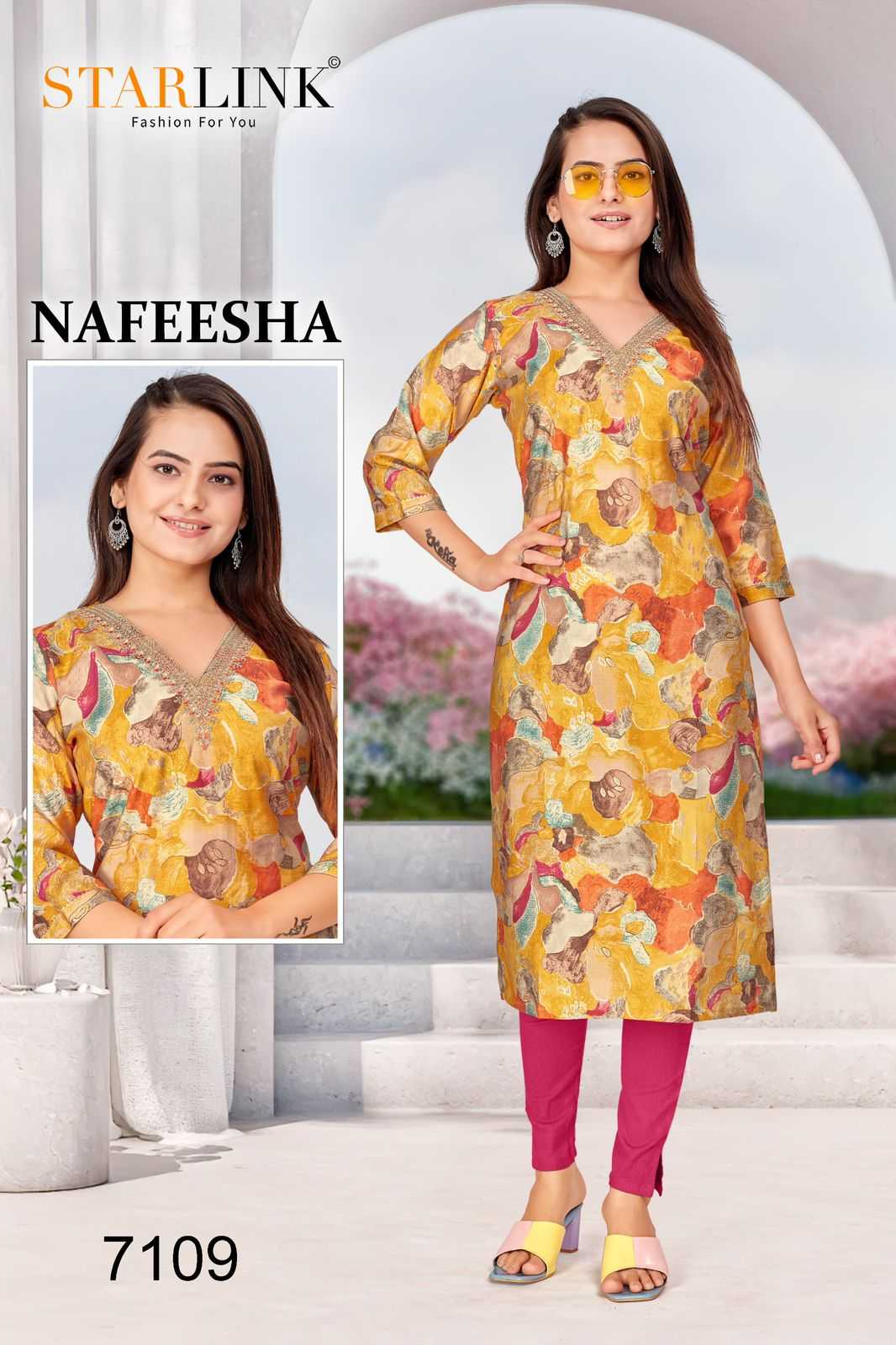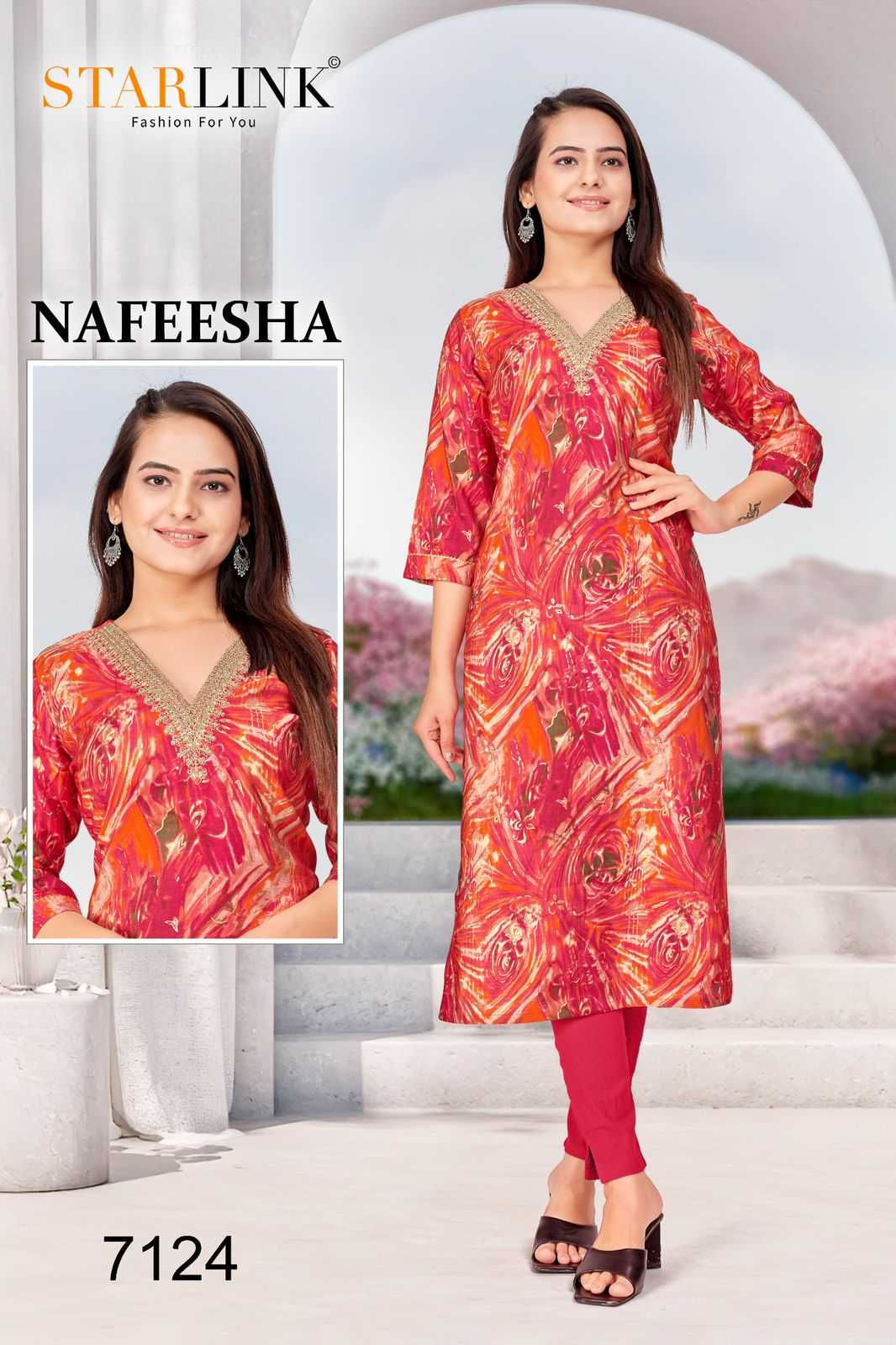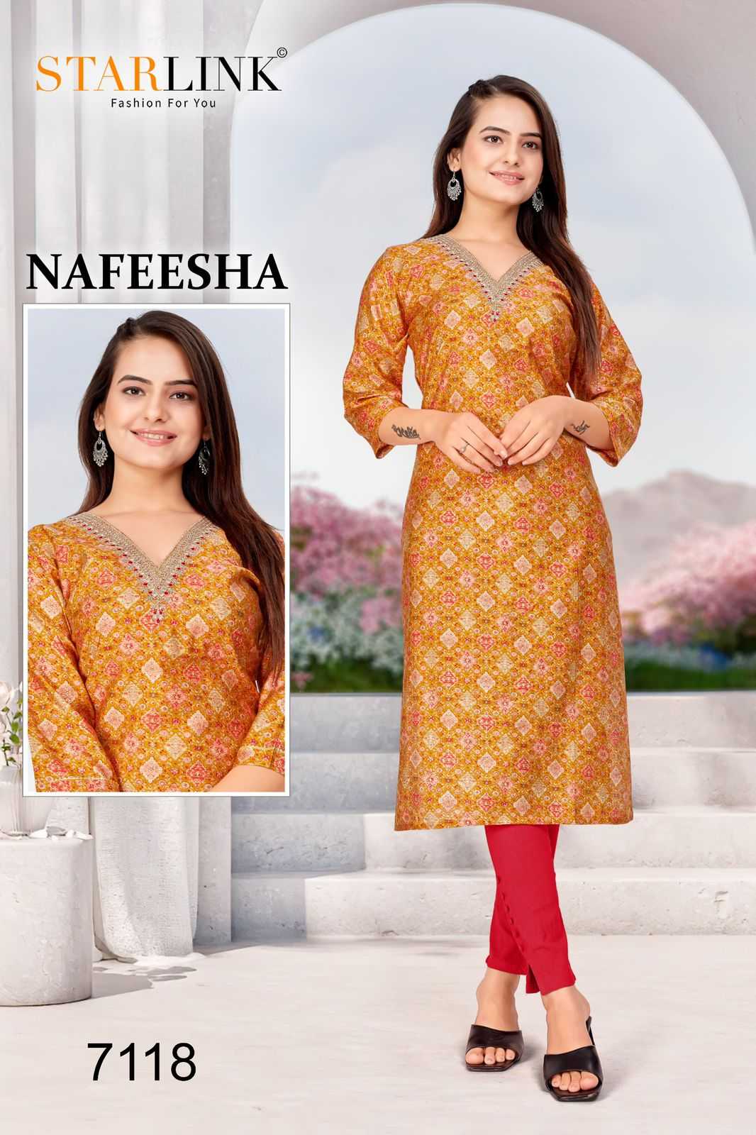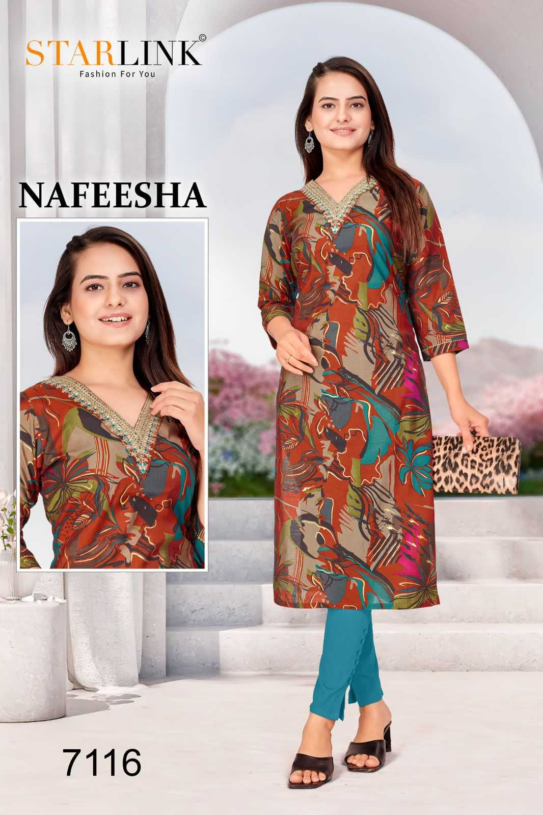 starlink nafeesha stitched fancy straight ladies kurti combo set