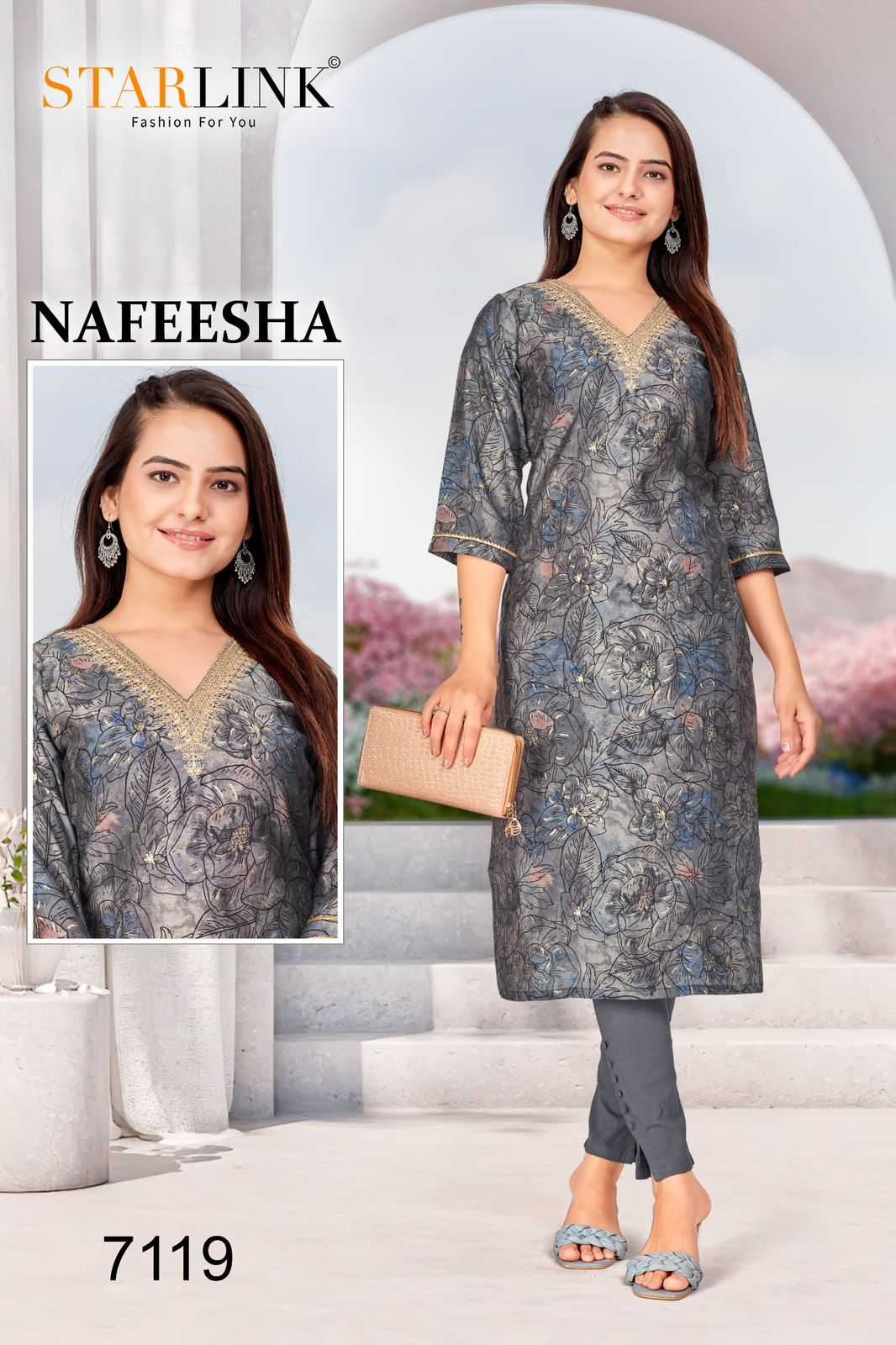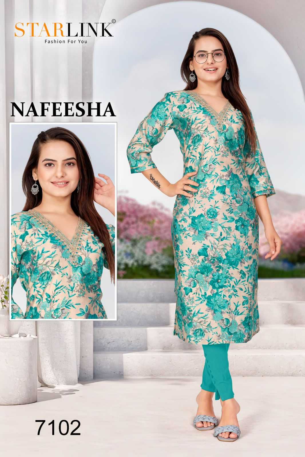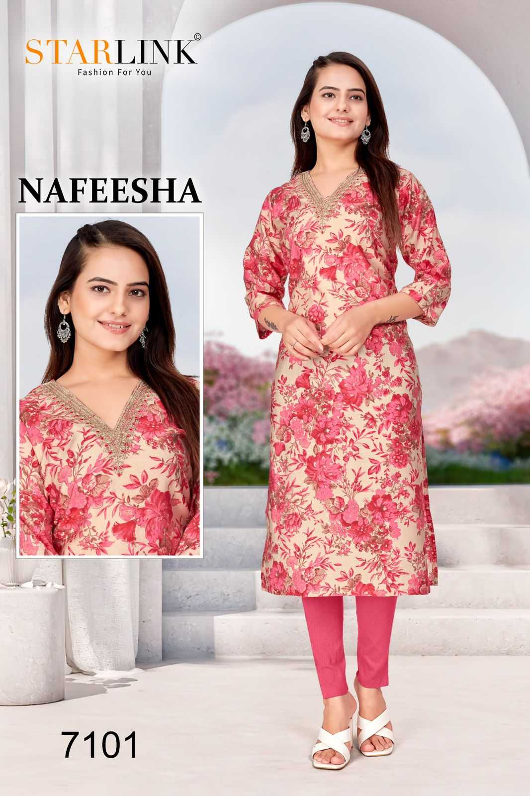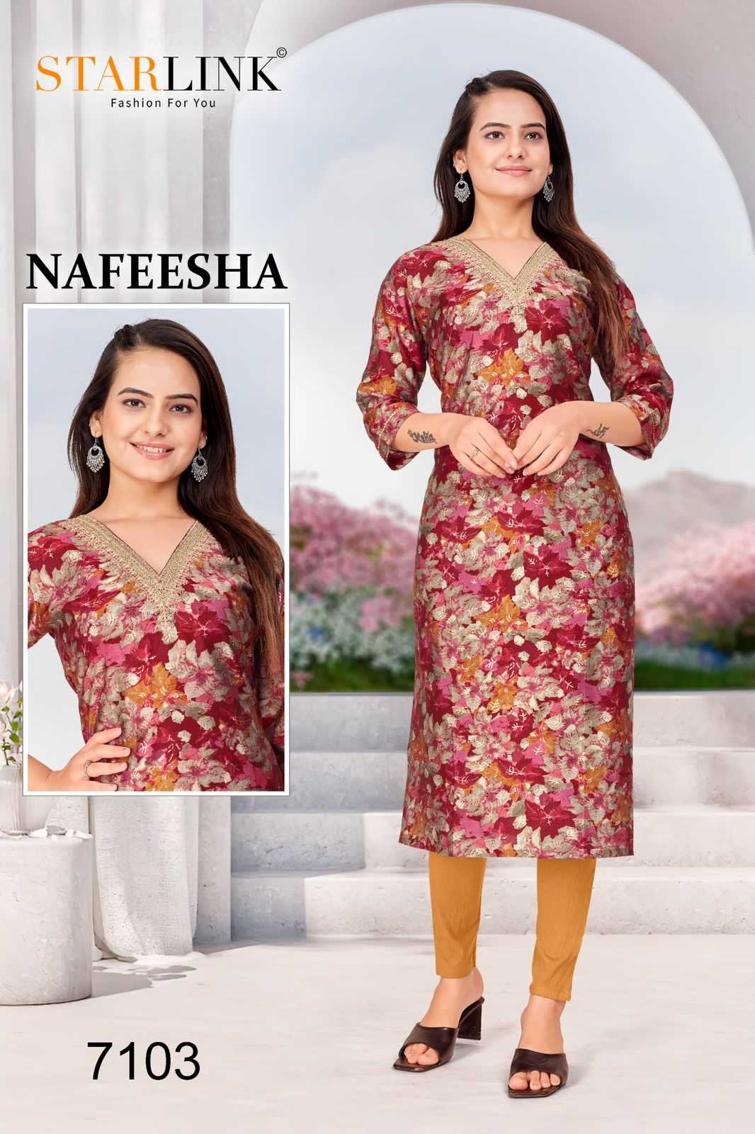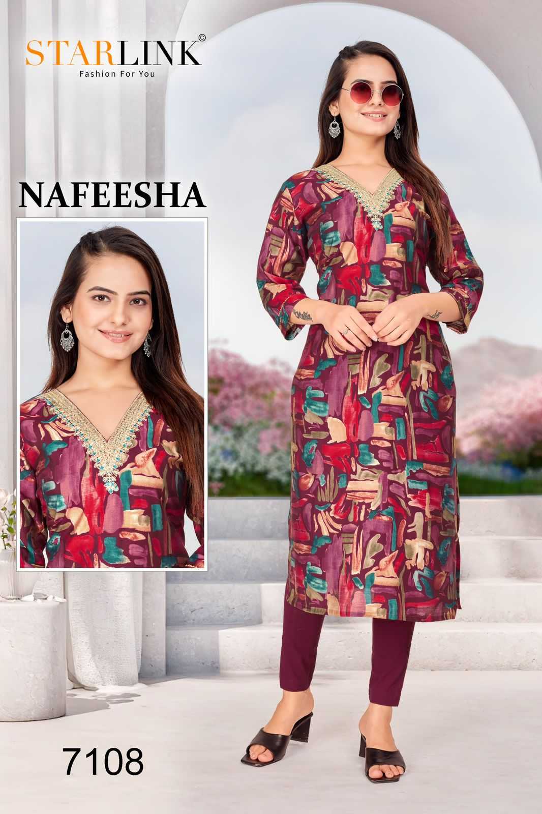starlink nafeesha stitched fancy straight ladies kurti combo set