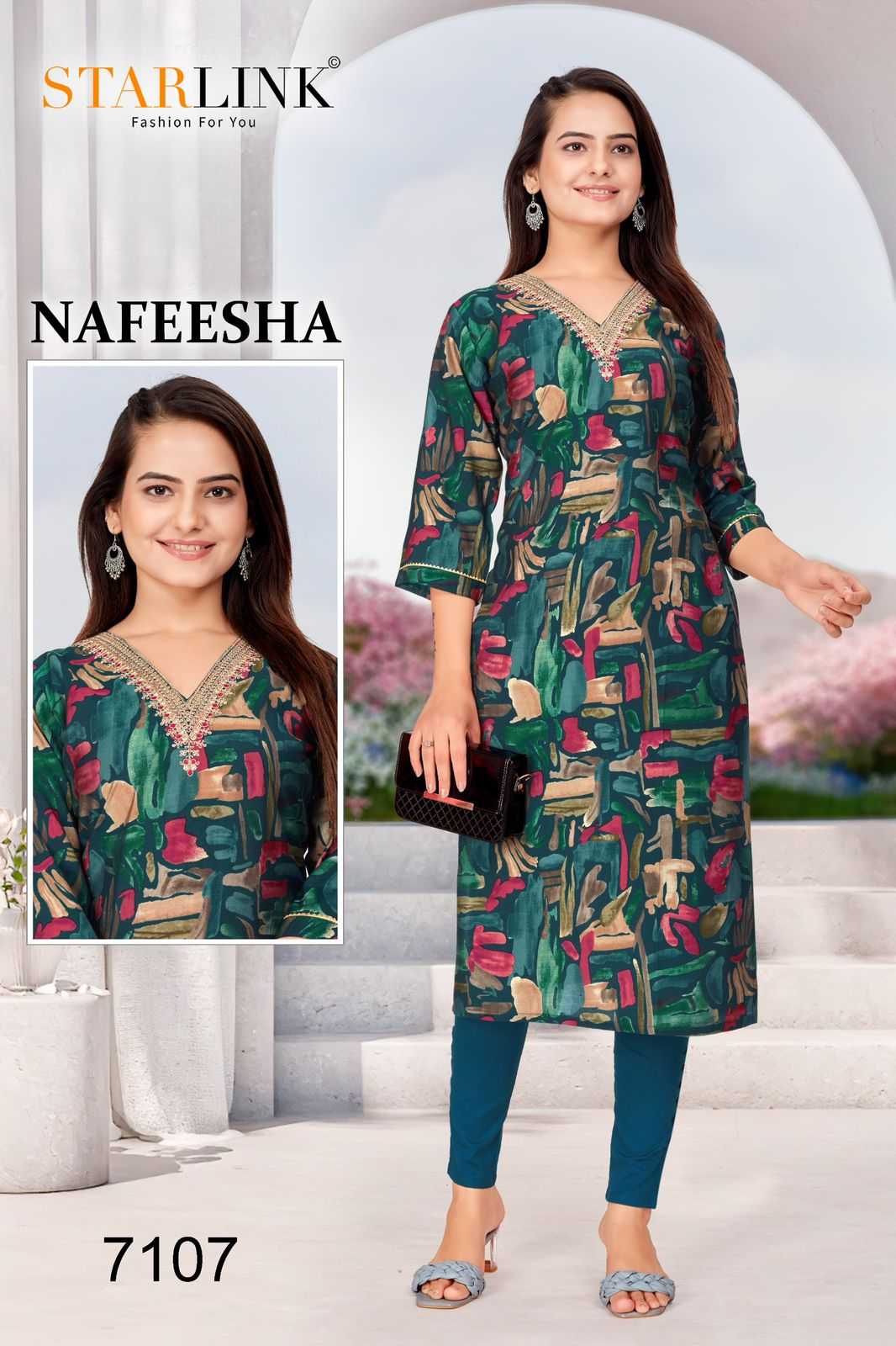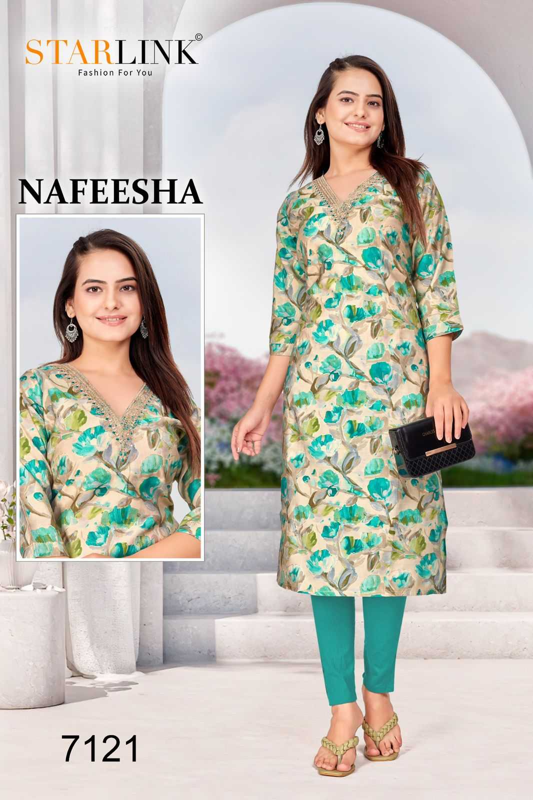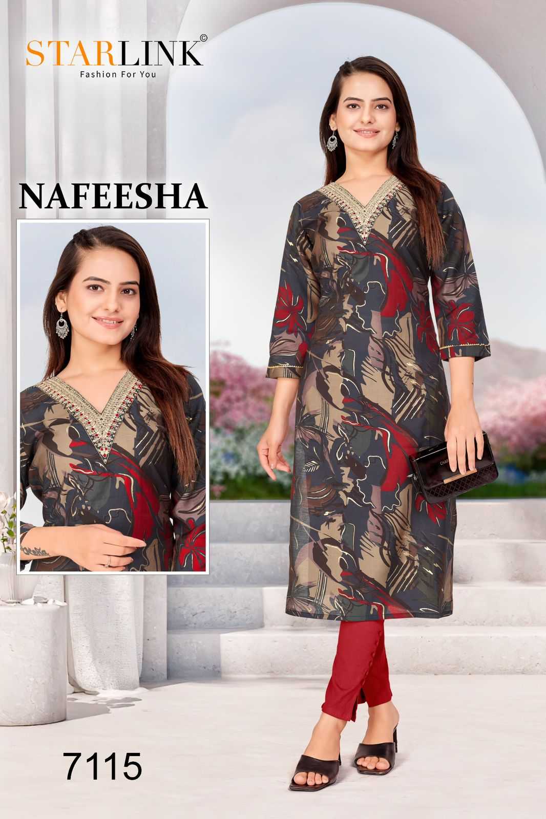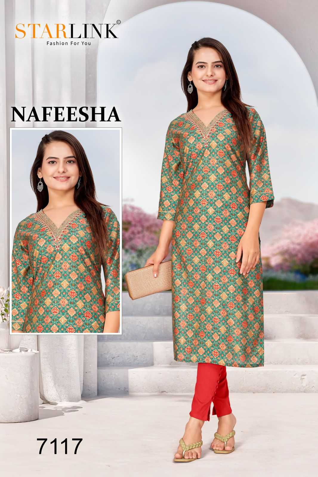 starlink nafeesha stitched fancy straight ladies kurti combo set