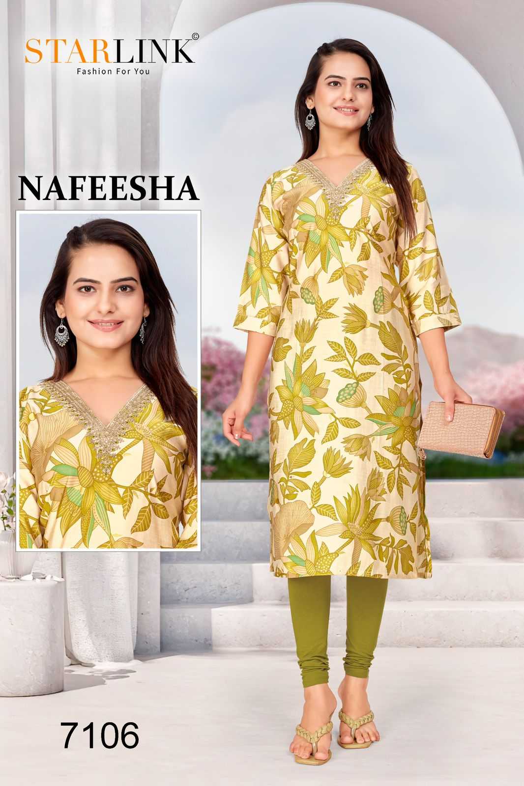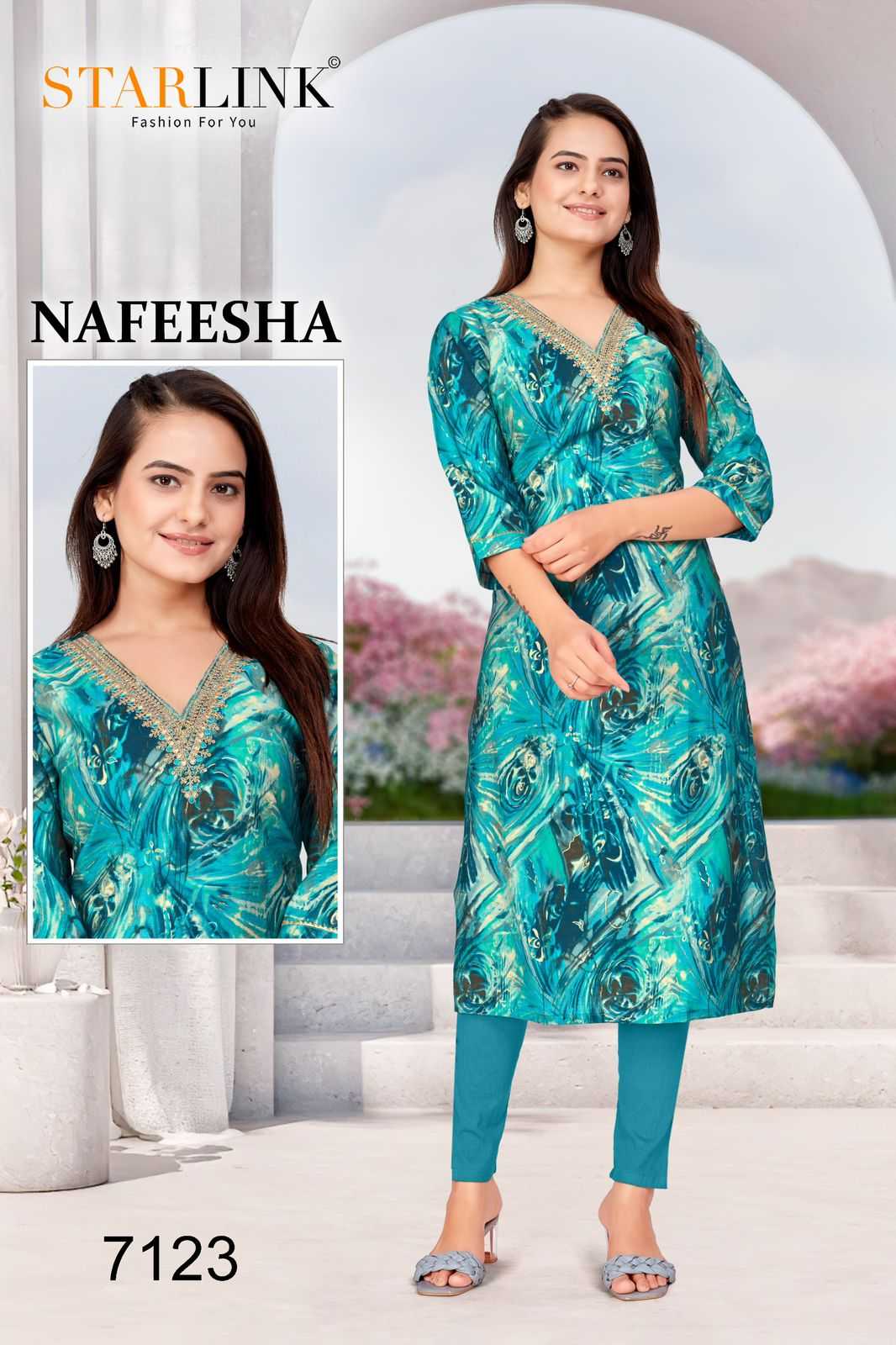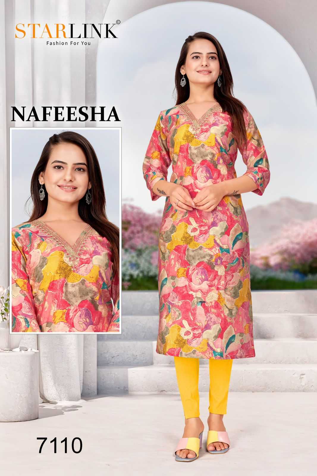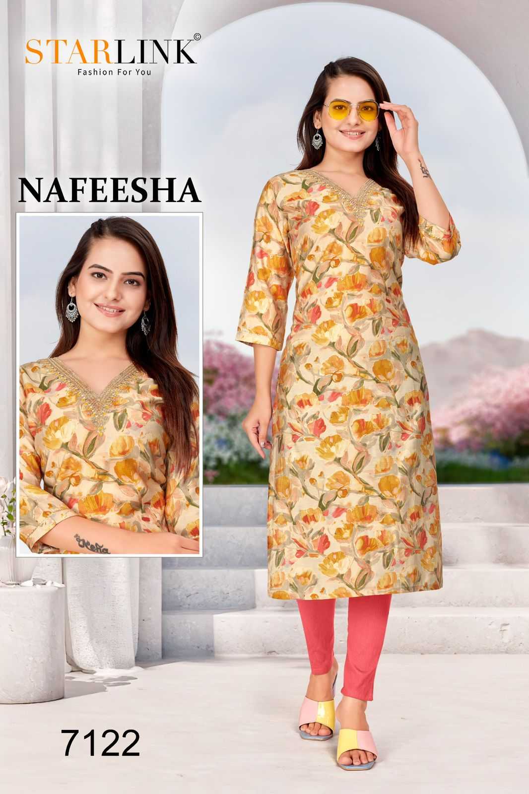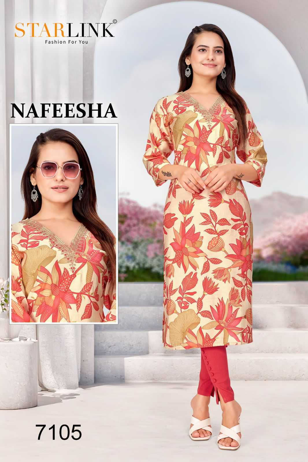 starlink nafeesha stitched fancy straight ladies kurti combo set
