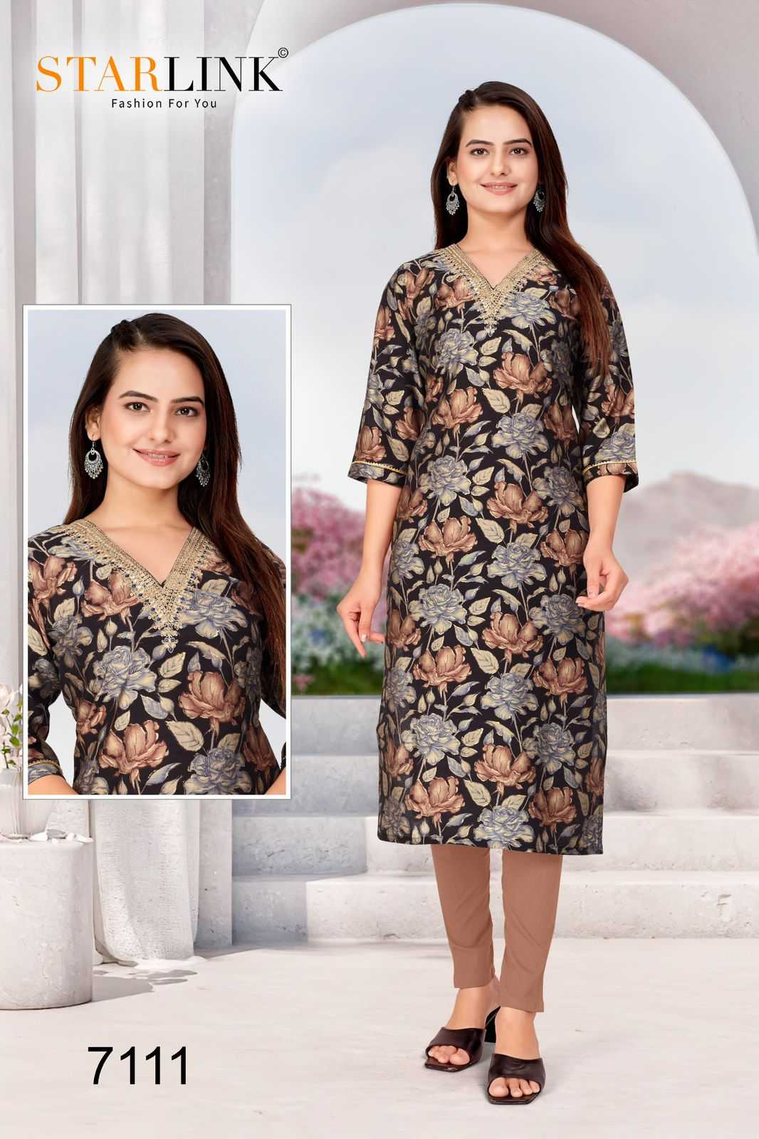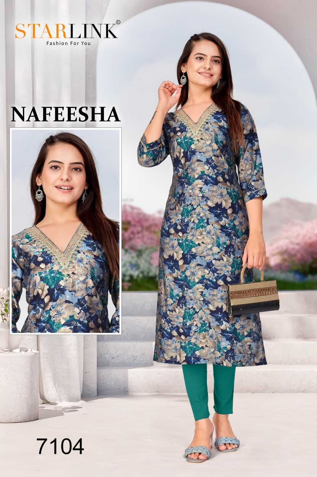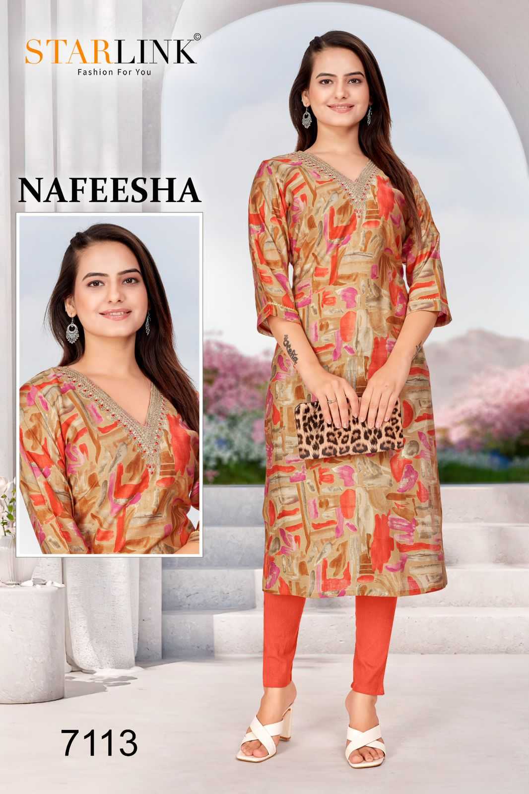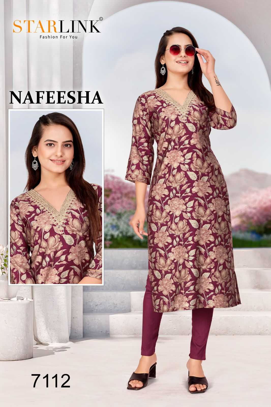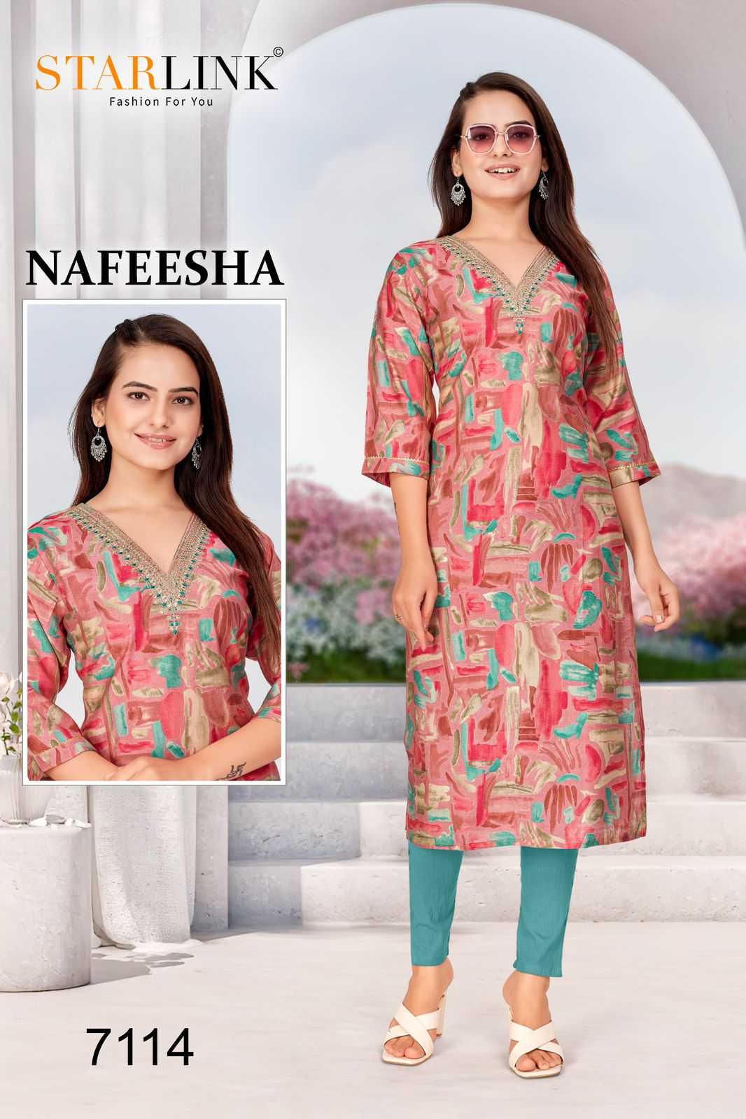 starlink nafeesha stitched fancy straight ladies kurti combo set