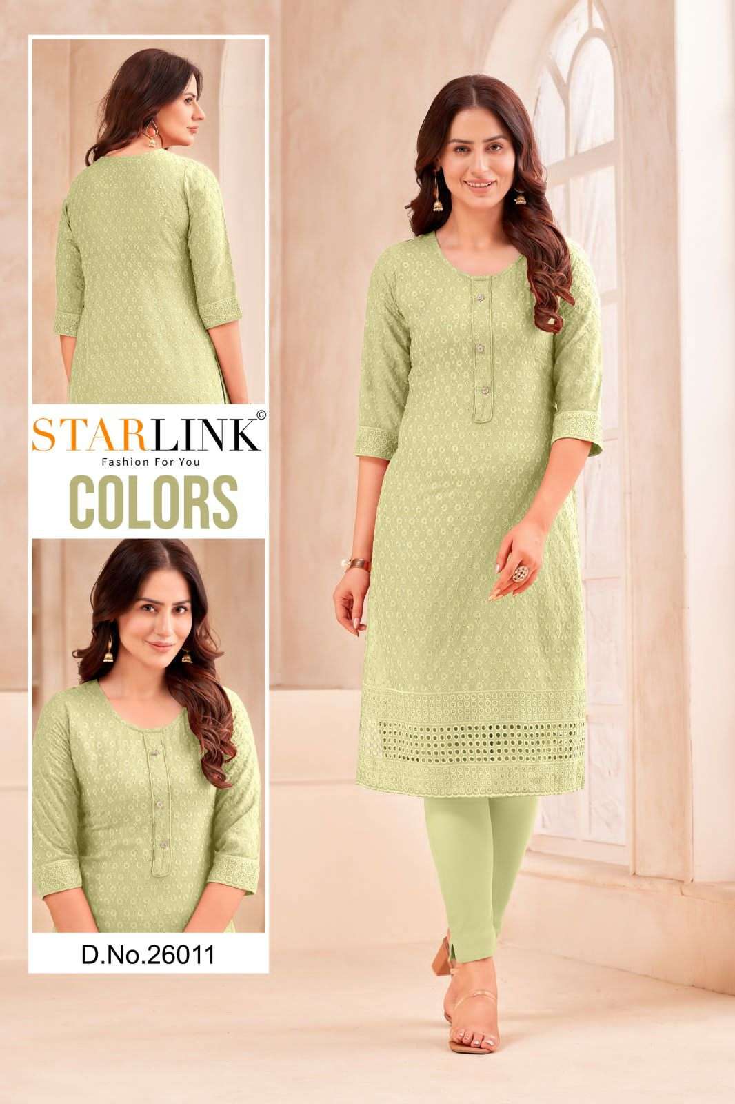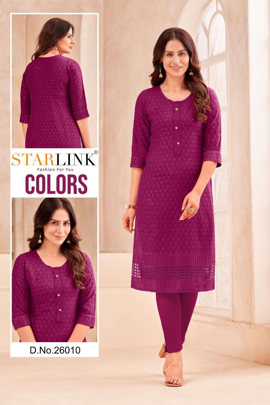 "STARLINK" is happy to announce the launch of new KURTI & READYMADE. 📒 Catlouge Name :- *COLOURS * 🔻Description🔻 🔹 FABRIC- TOP-RAYON WITH SHIFFLI WORK *SIZE- M-L-XL-XXL( COMBO PACKING) *rate - 425 per pcs |