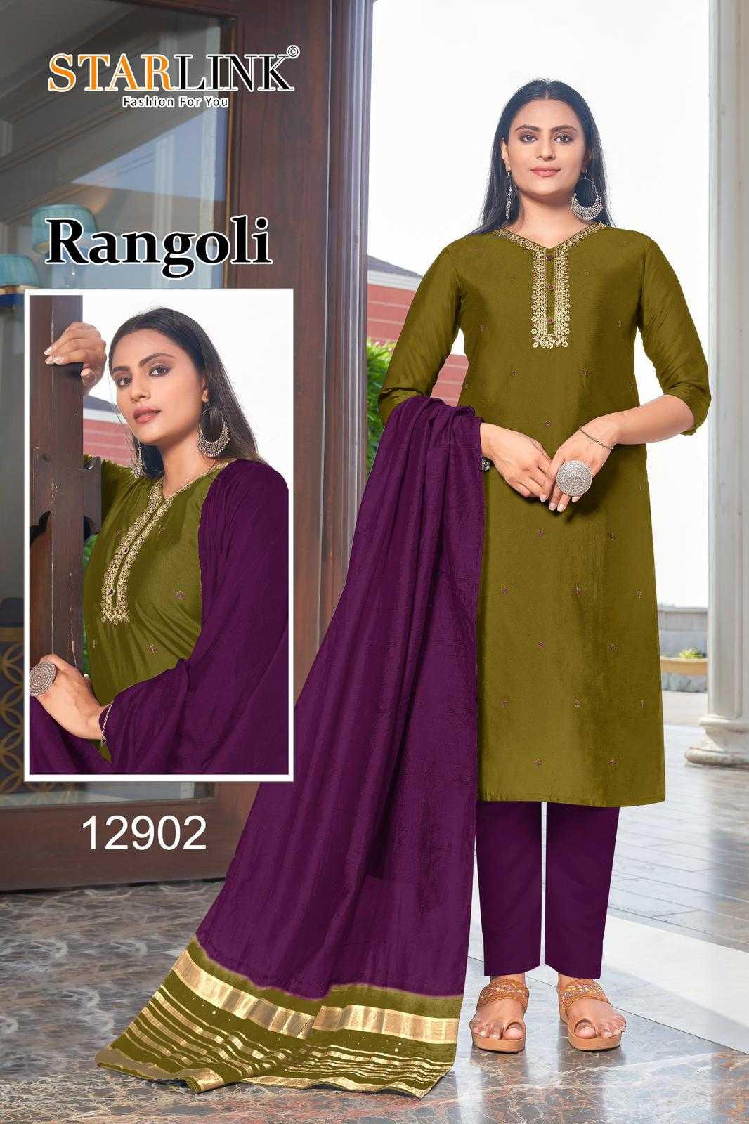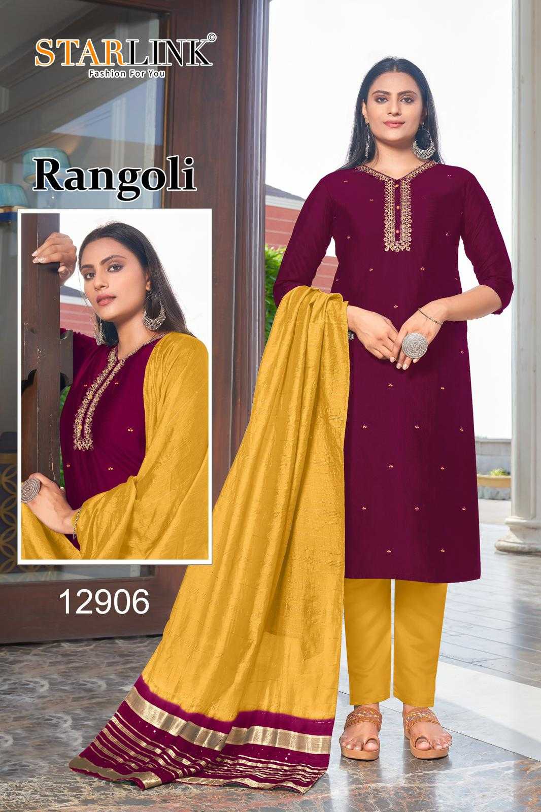 starlink rangoli embroidery work attractive look full stitch combo 3pcs dress
