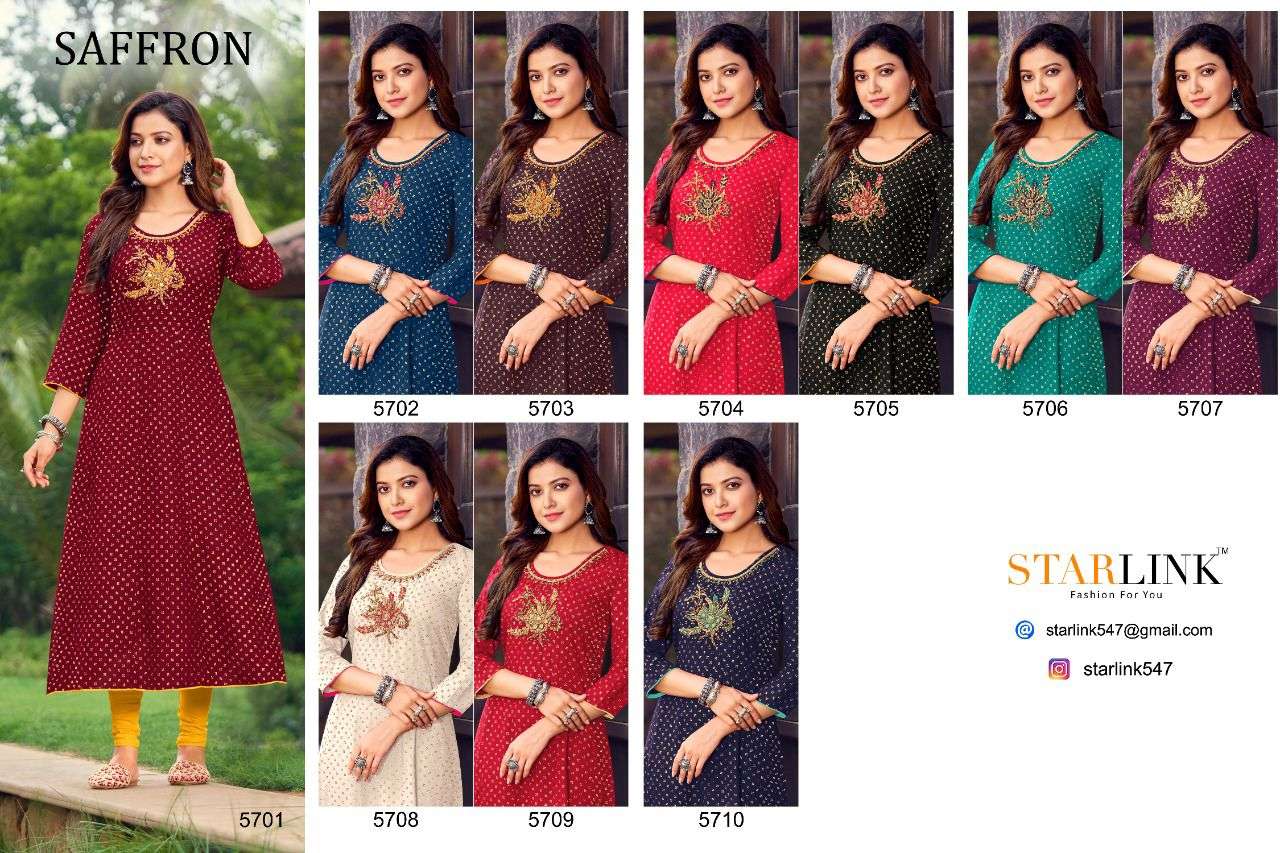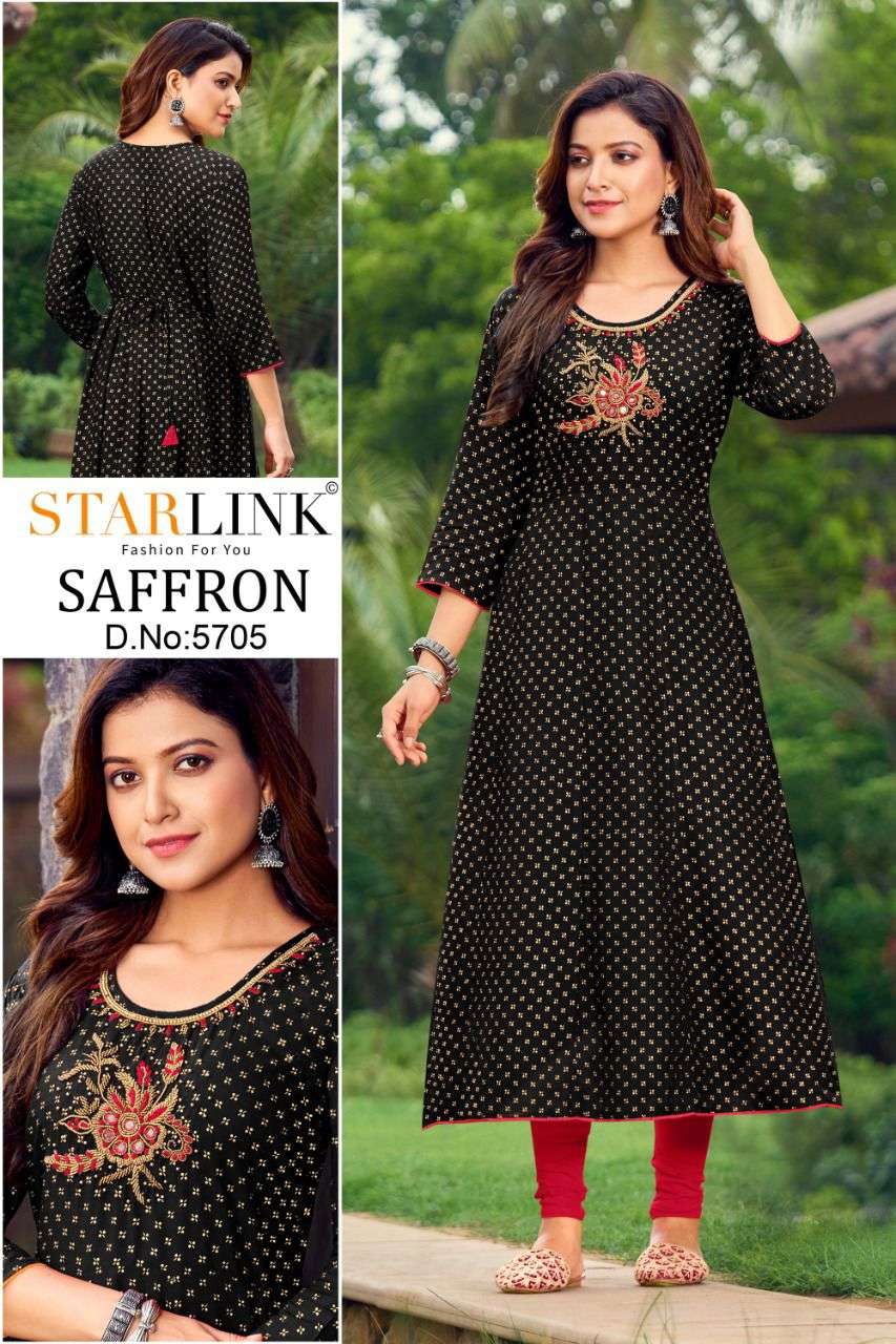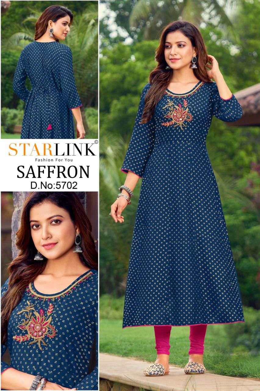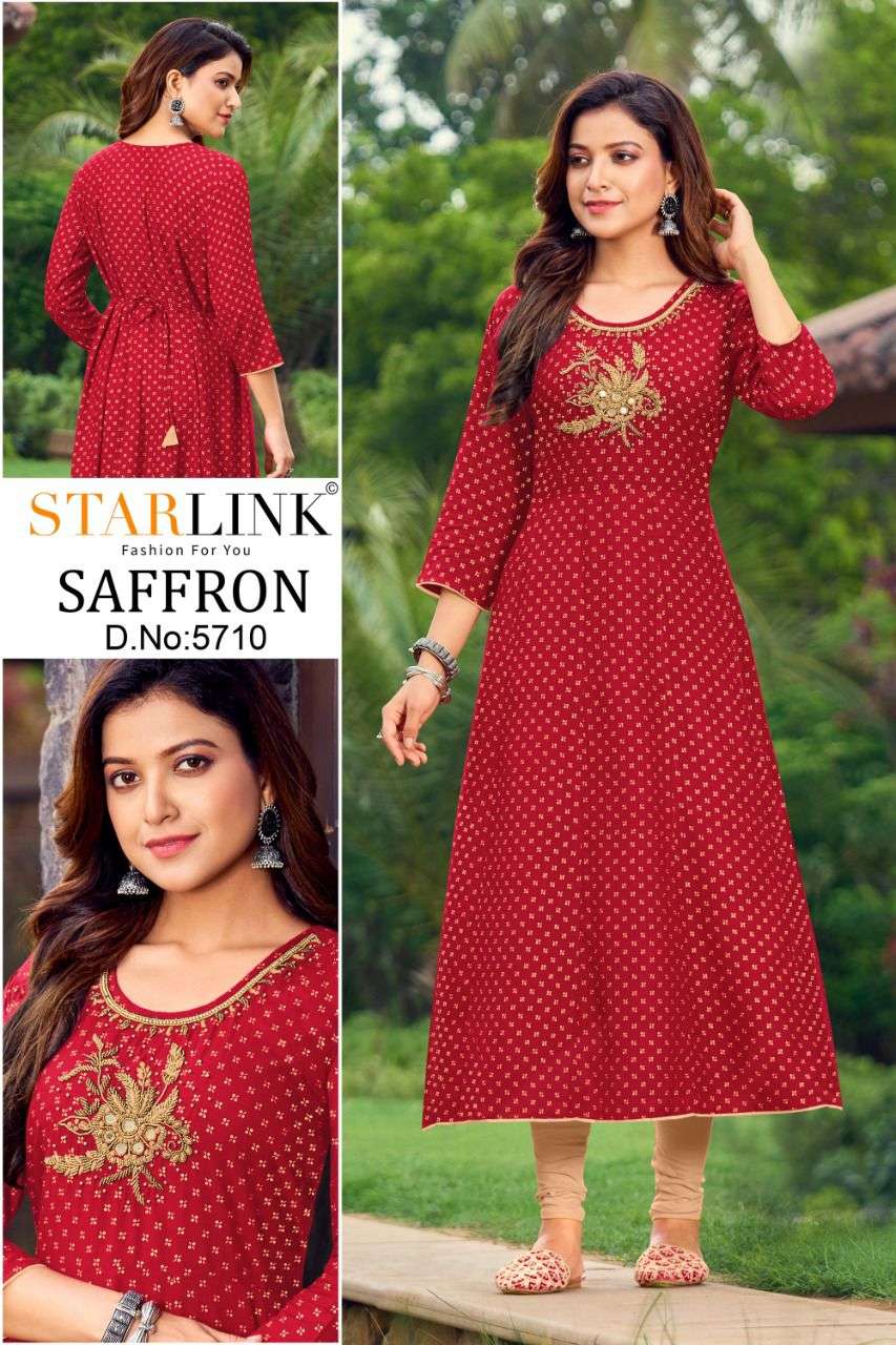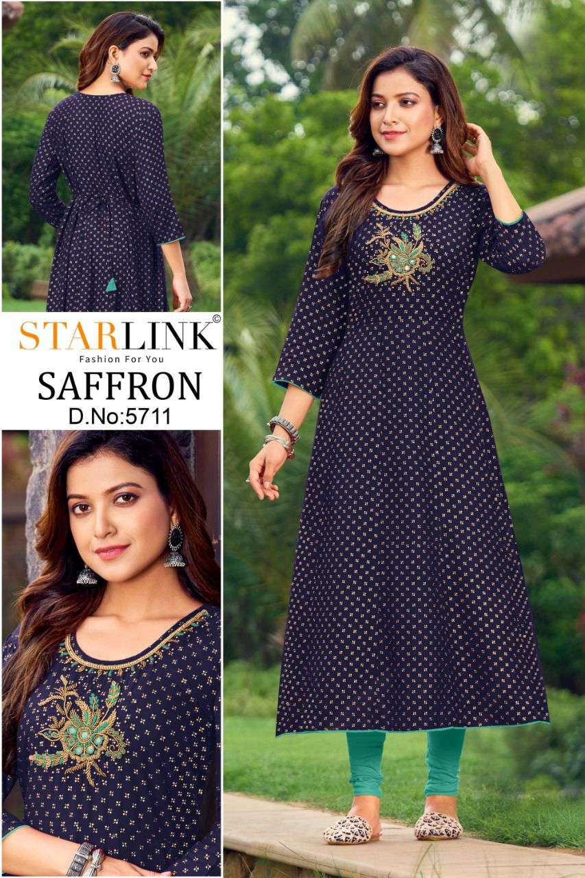 "STARLINK" is happy to announce the launch of new KURTI & READYMADE. 📒 Catlouge Name :- *SAFFRON * 🔻Description🔻 🔹 FABRIC- TOP-RAYON WITH FOIL WITH EMBROIDERY WORK |