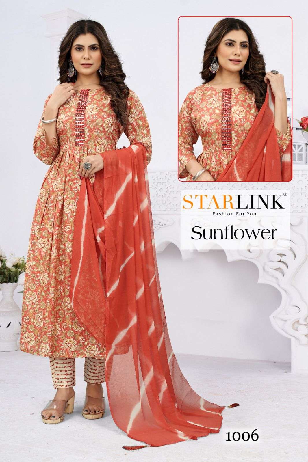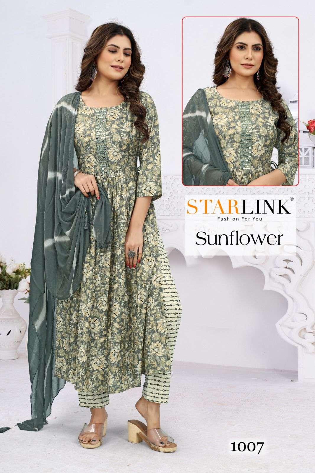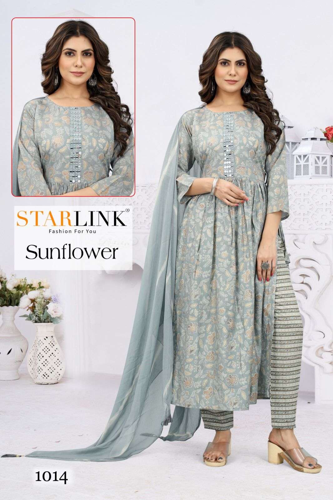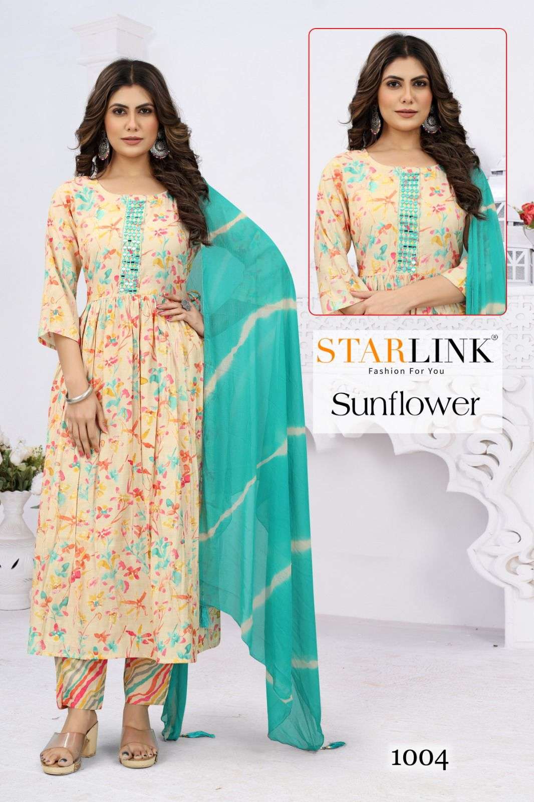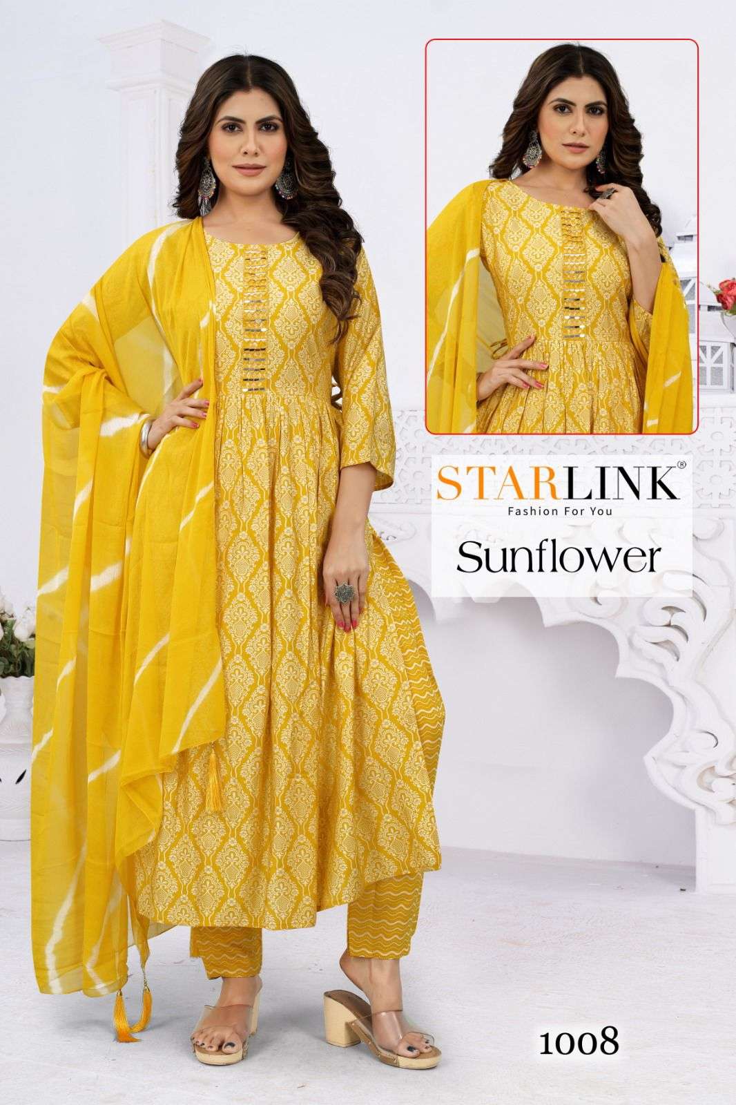 starlink sunflower readymade nyra cut top with bottom and dupatta combo set