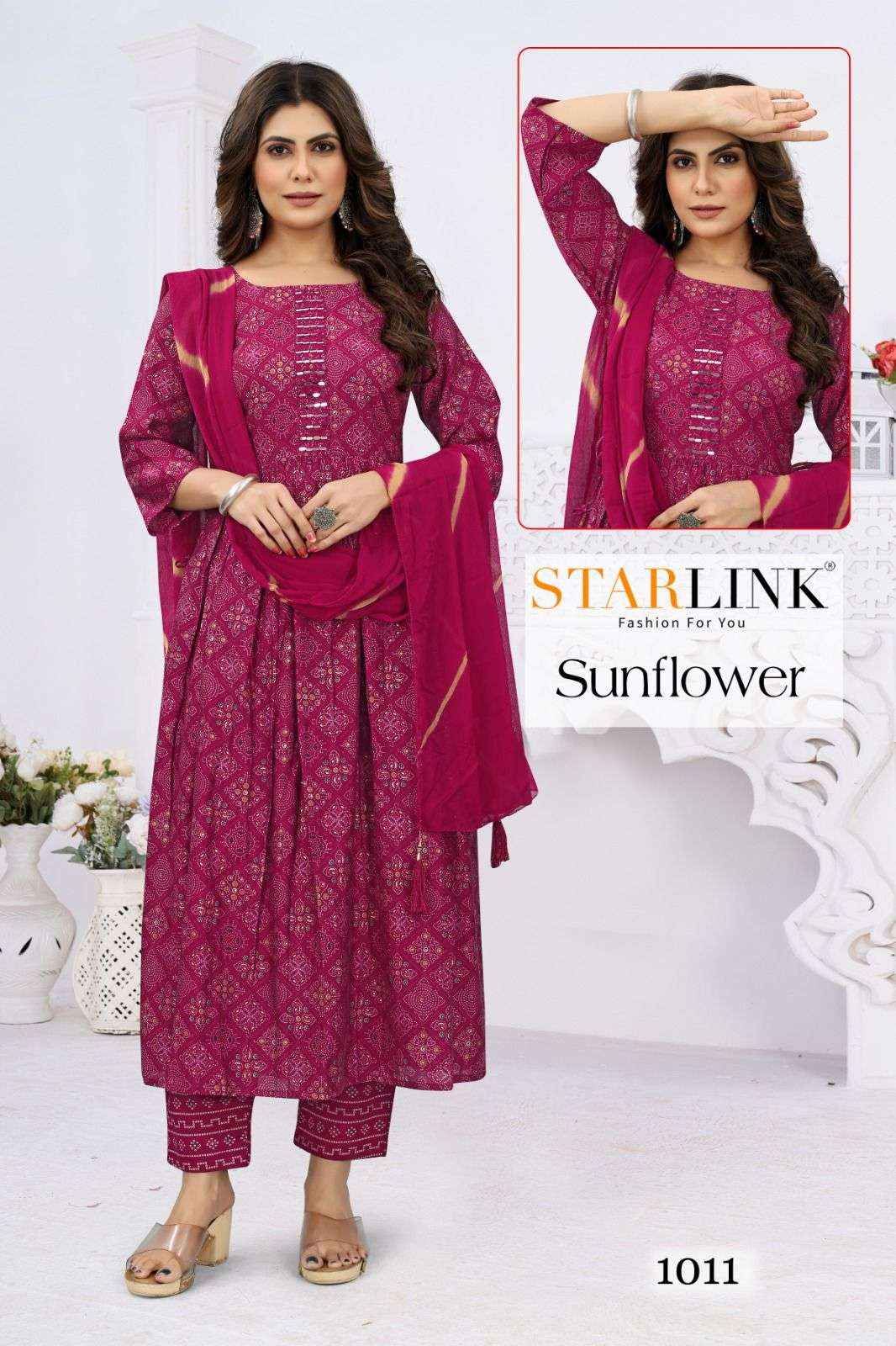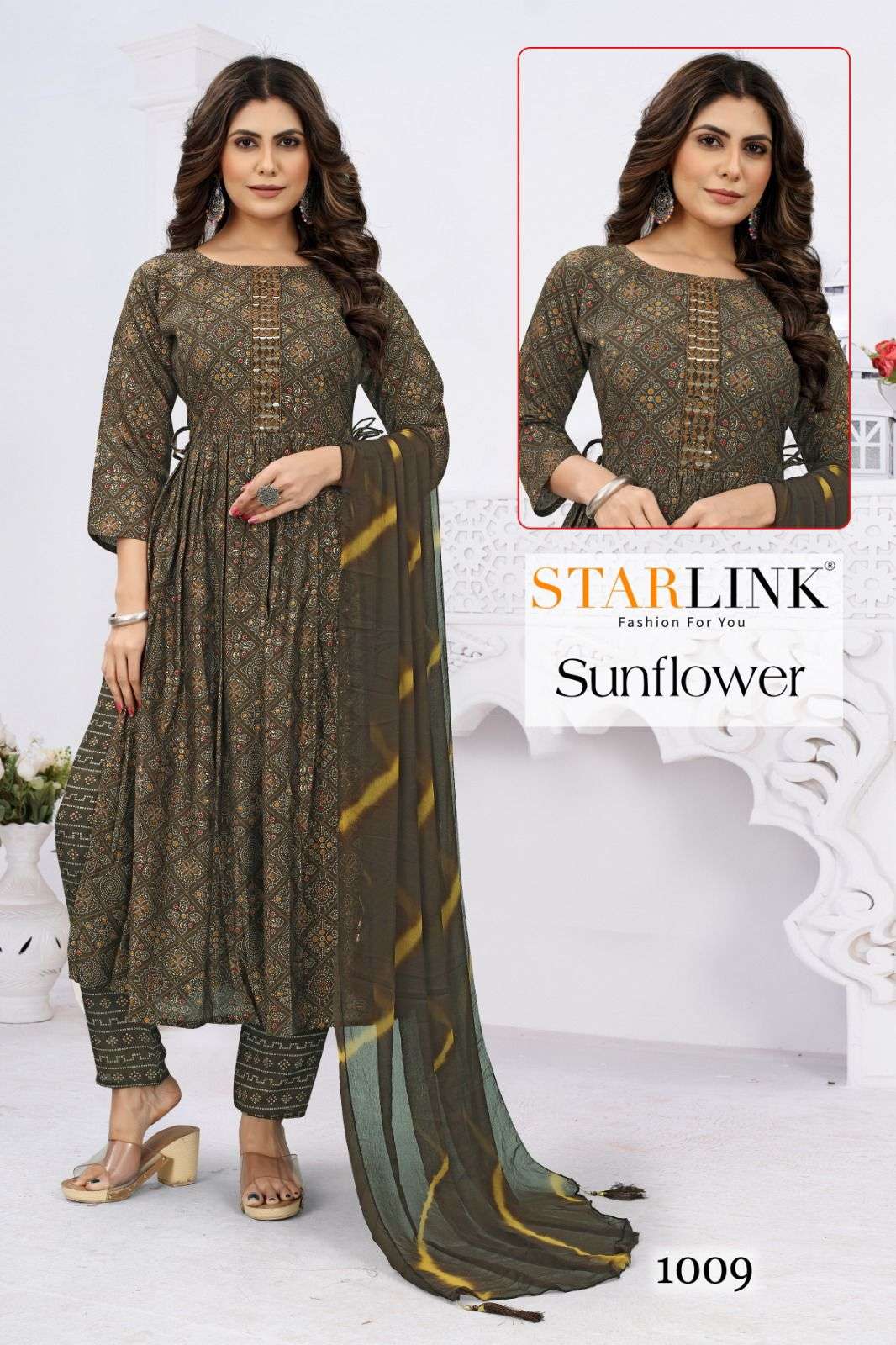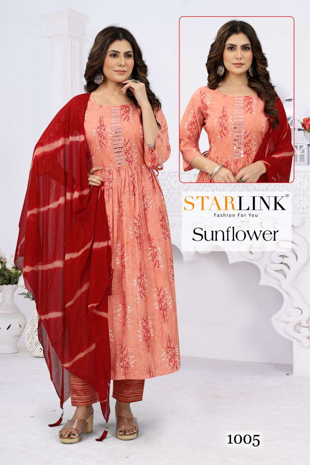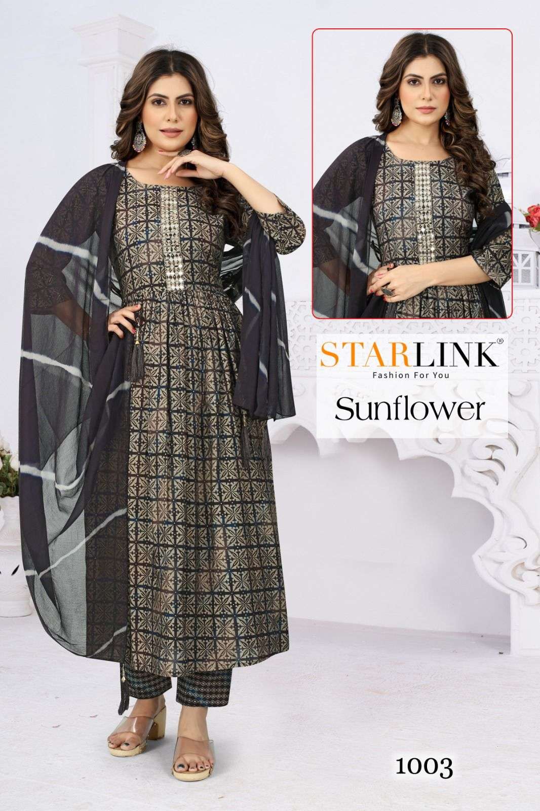 starlink sunflower readymade nyra cut top with bottom and dupatta combo set