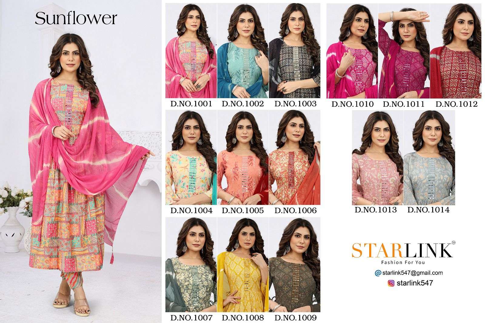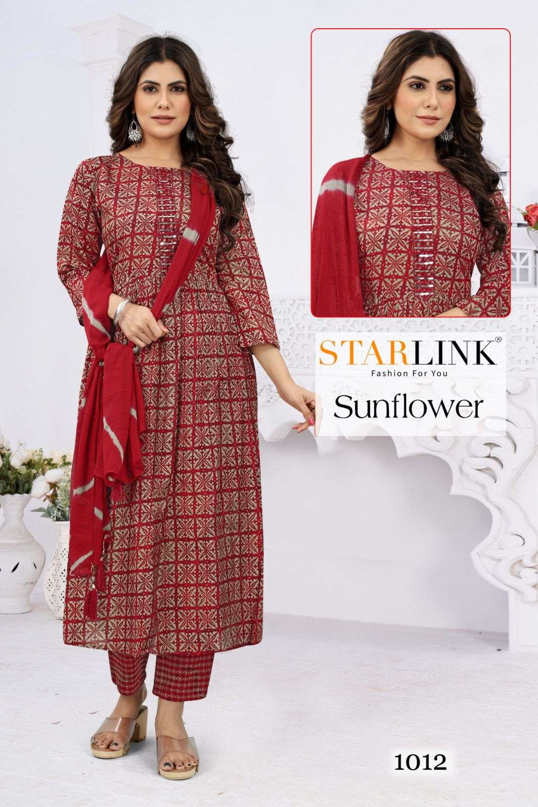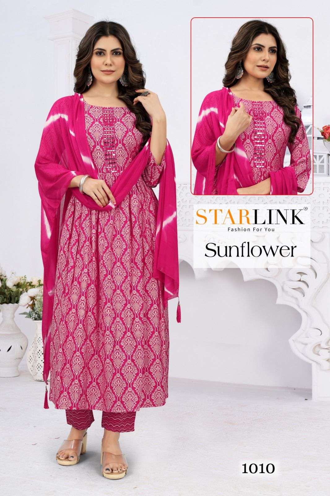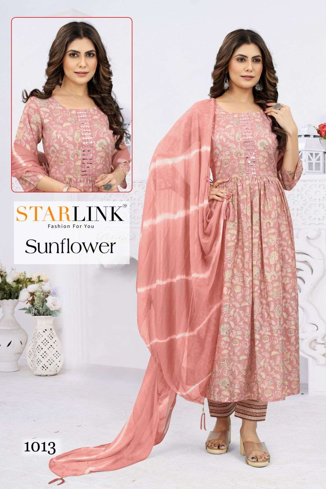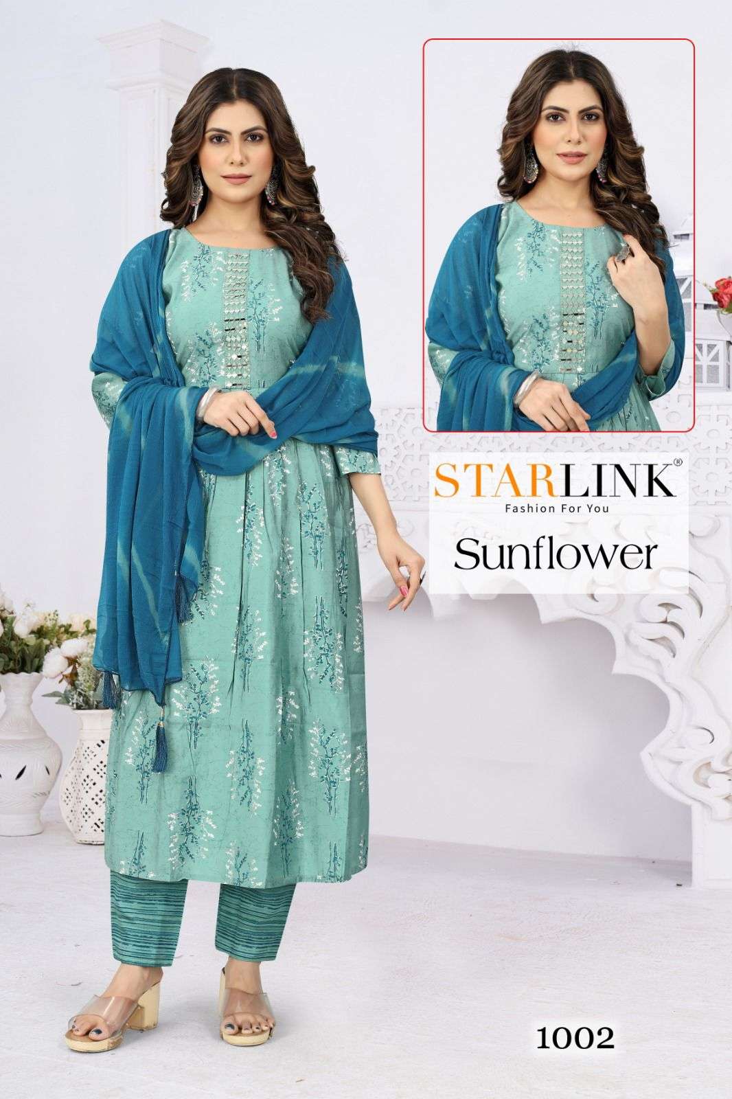 starlink sunflower readymade nyra cut top with bottom and dupatta combo set