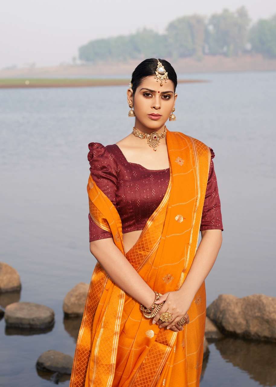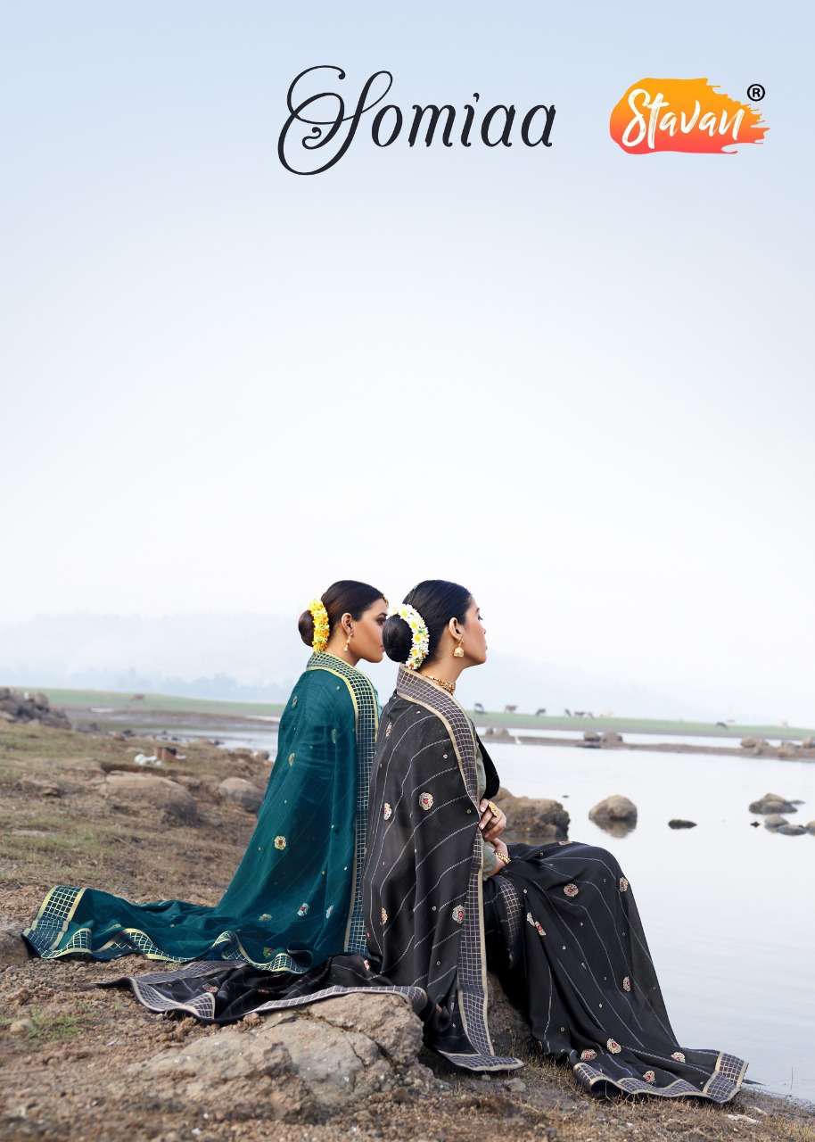 stavan brand present somiaa fancy jacqurad border saree with blouse peice wholesaler