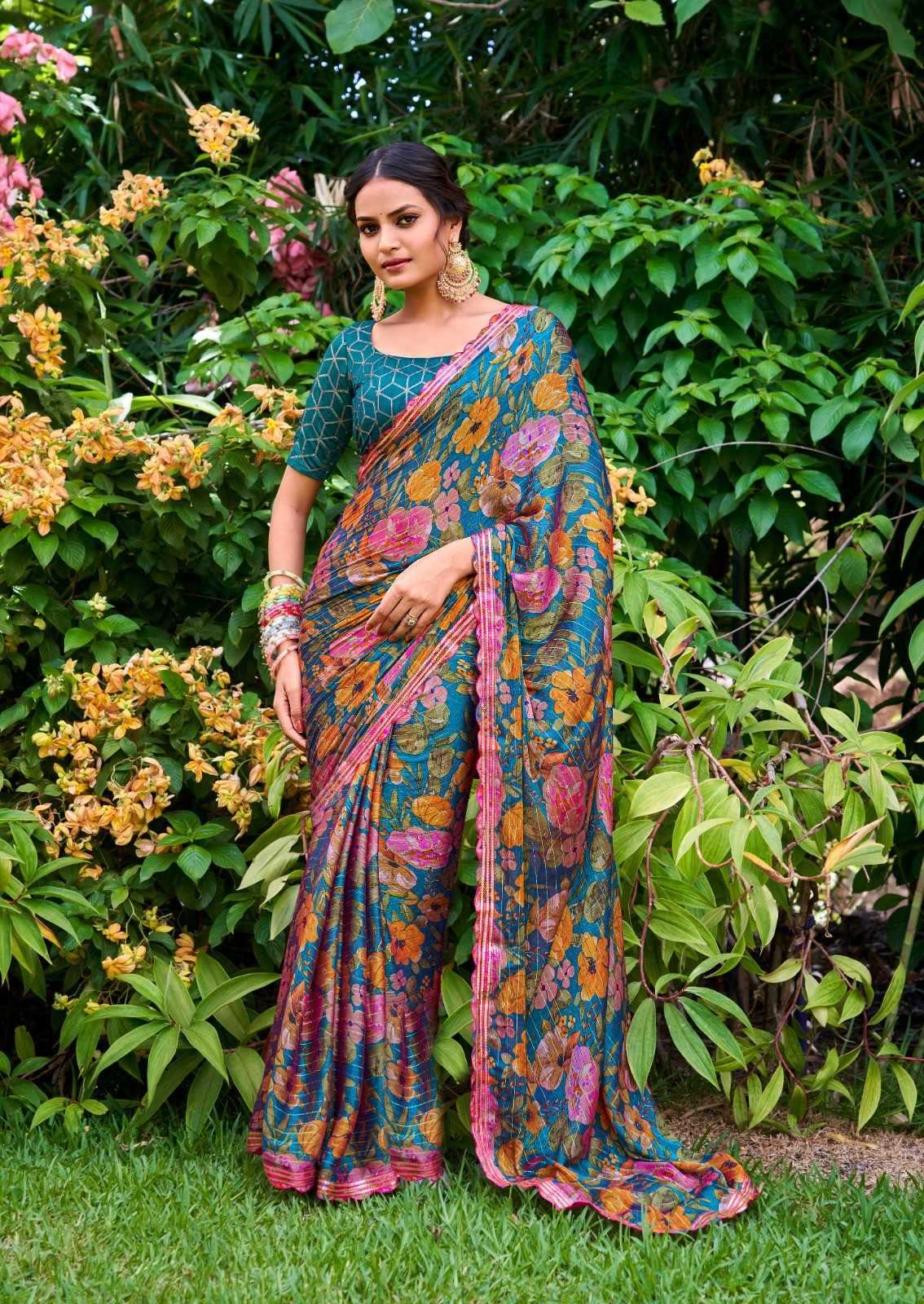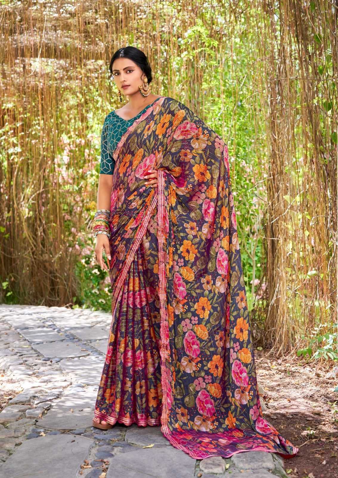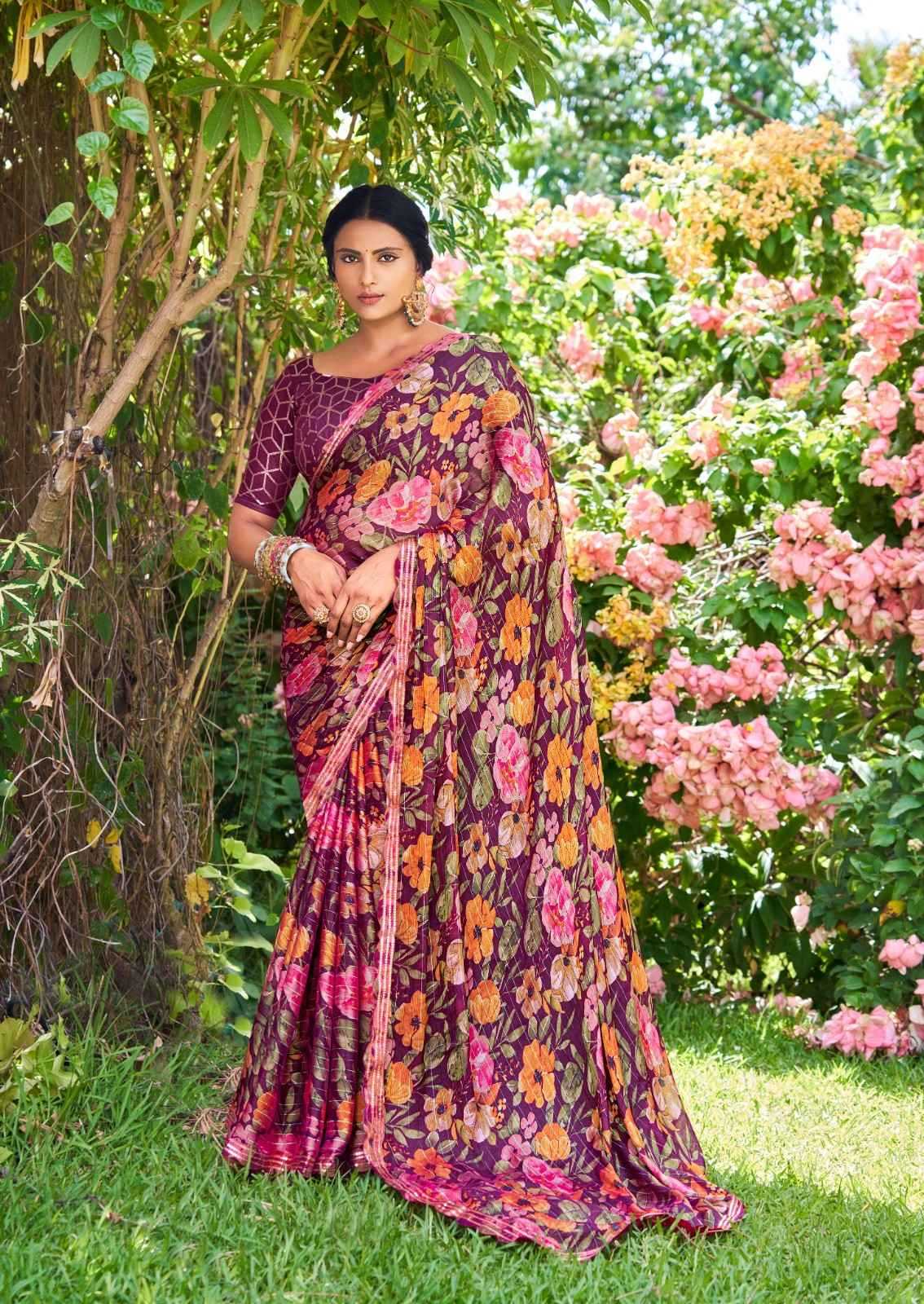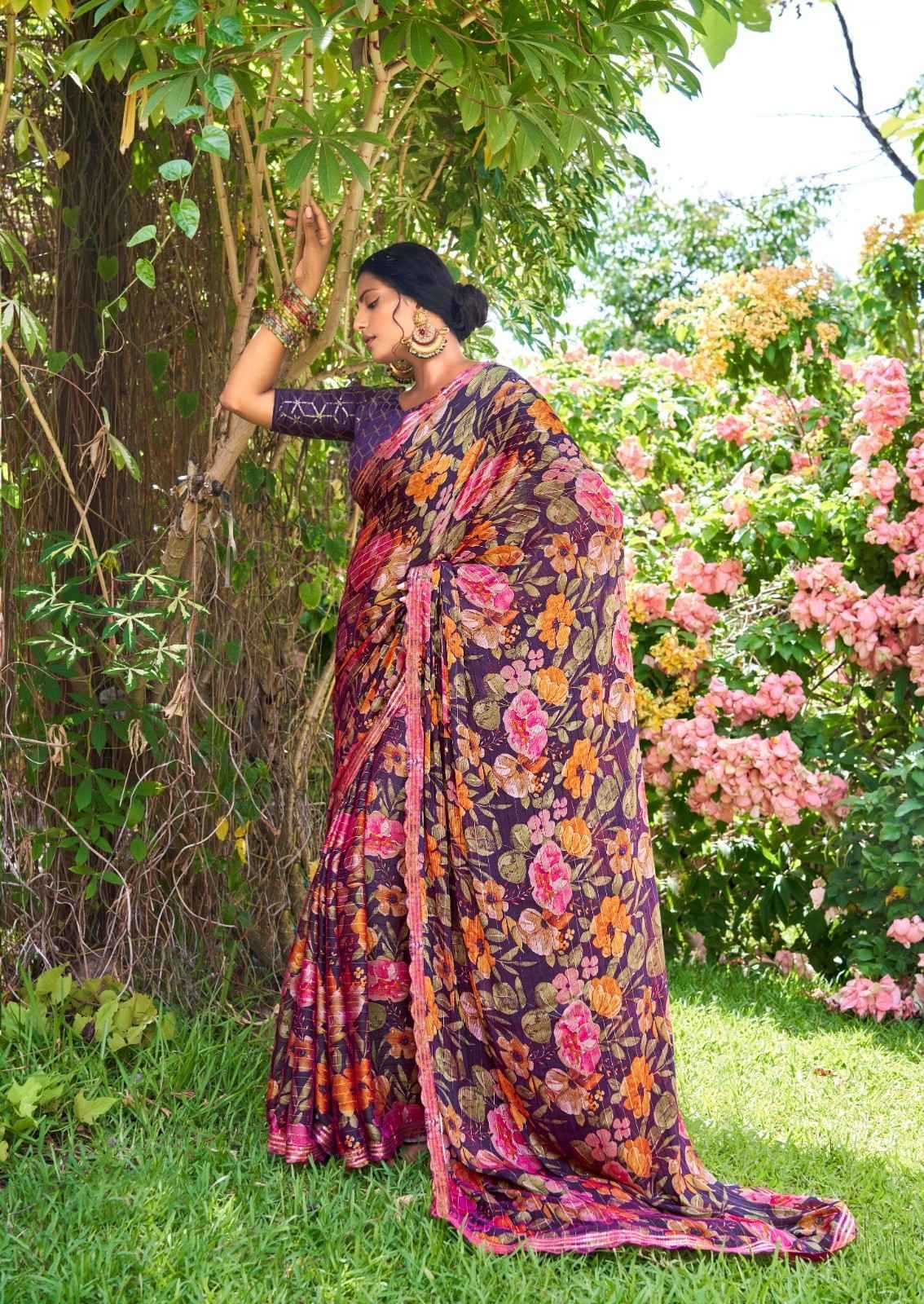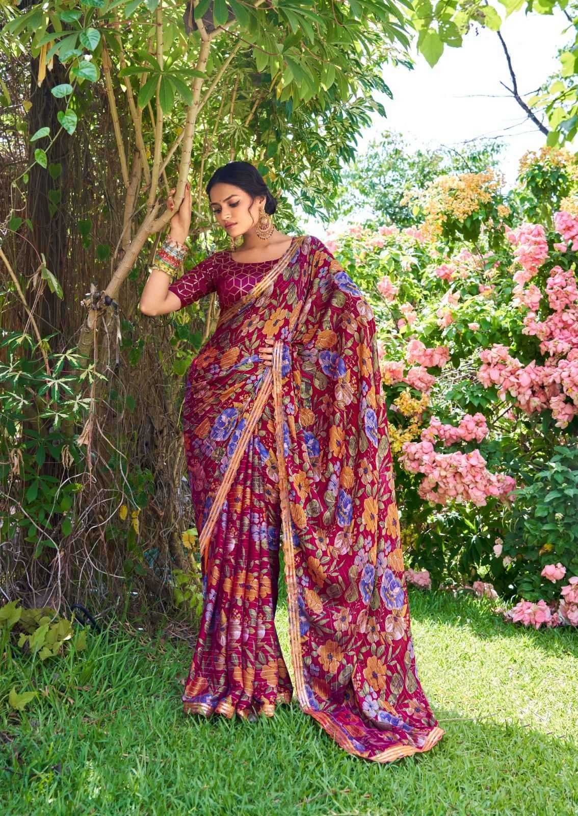 stavan feena velvet chiffon exclusive design saree supplier