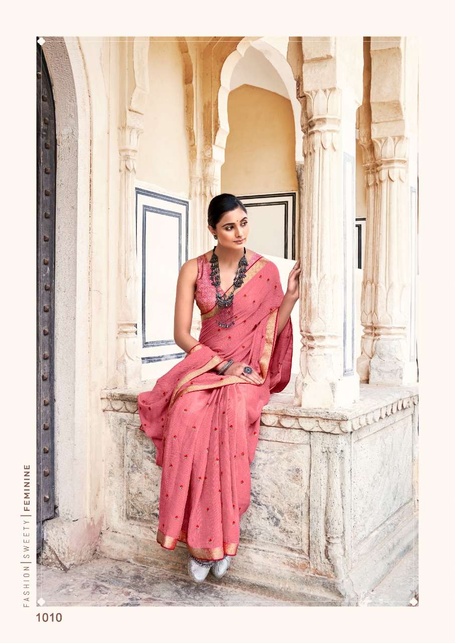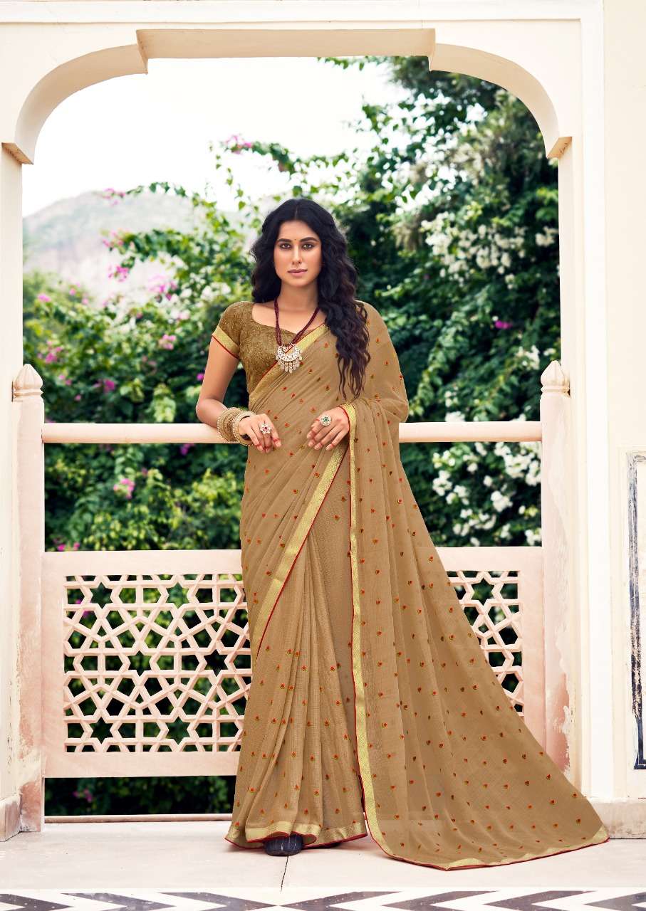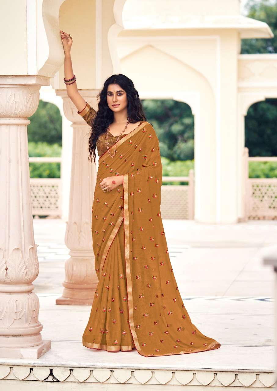 stavan hrutvi chiffon with embroidery work sarees authorized supplier