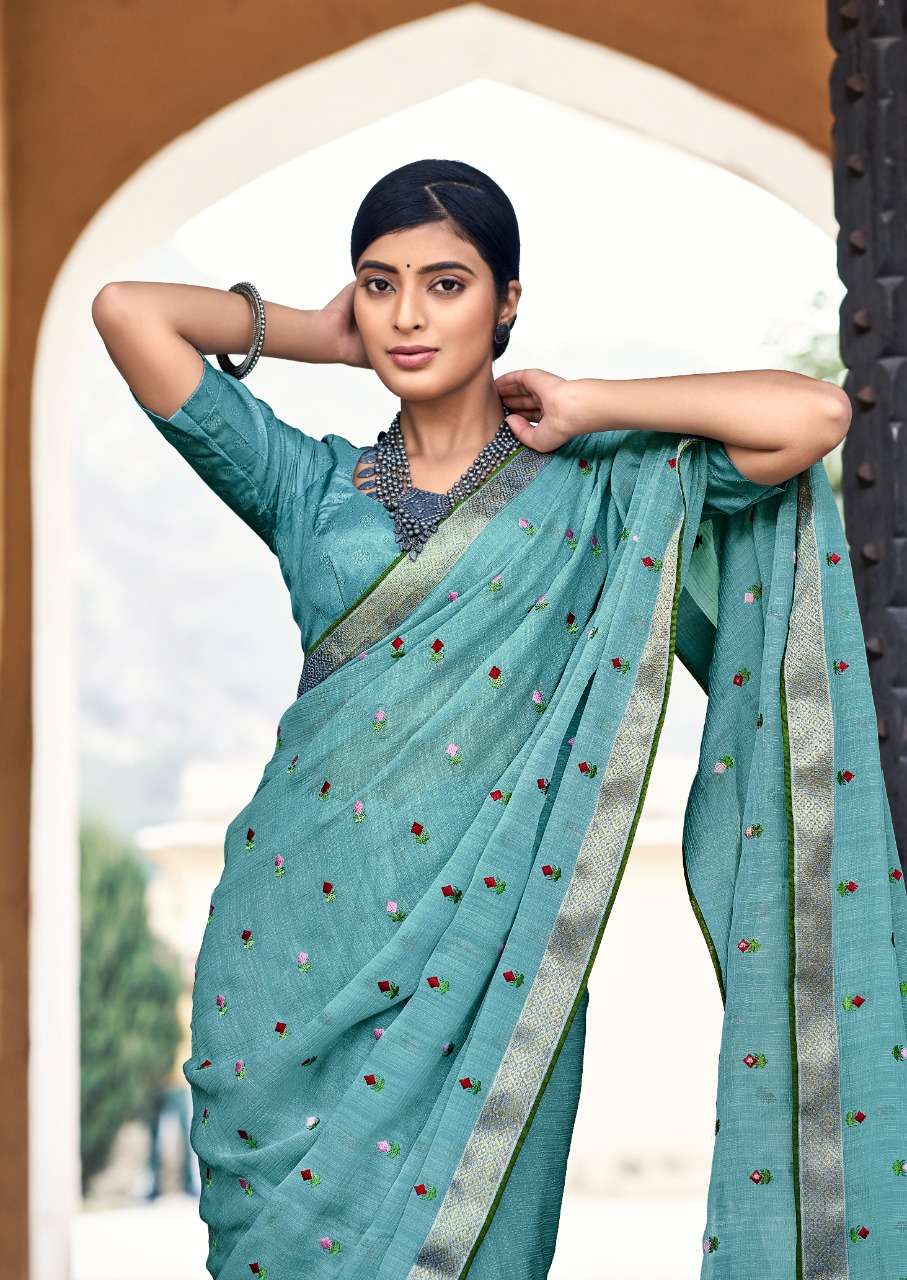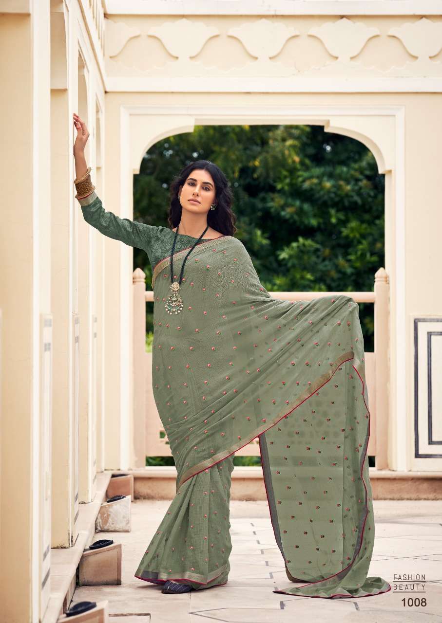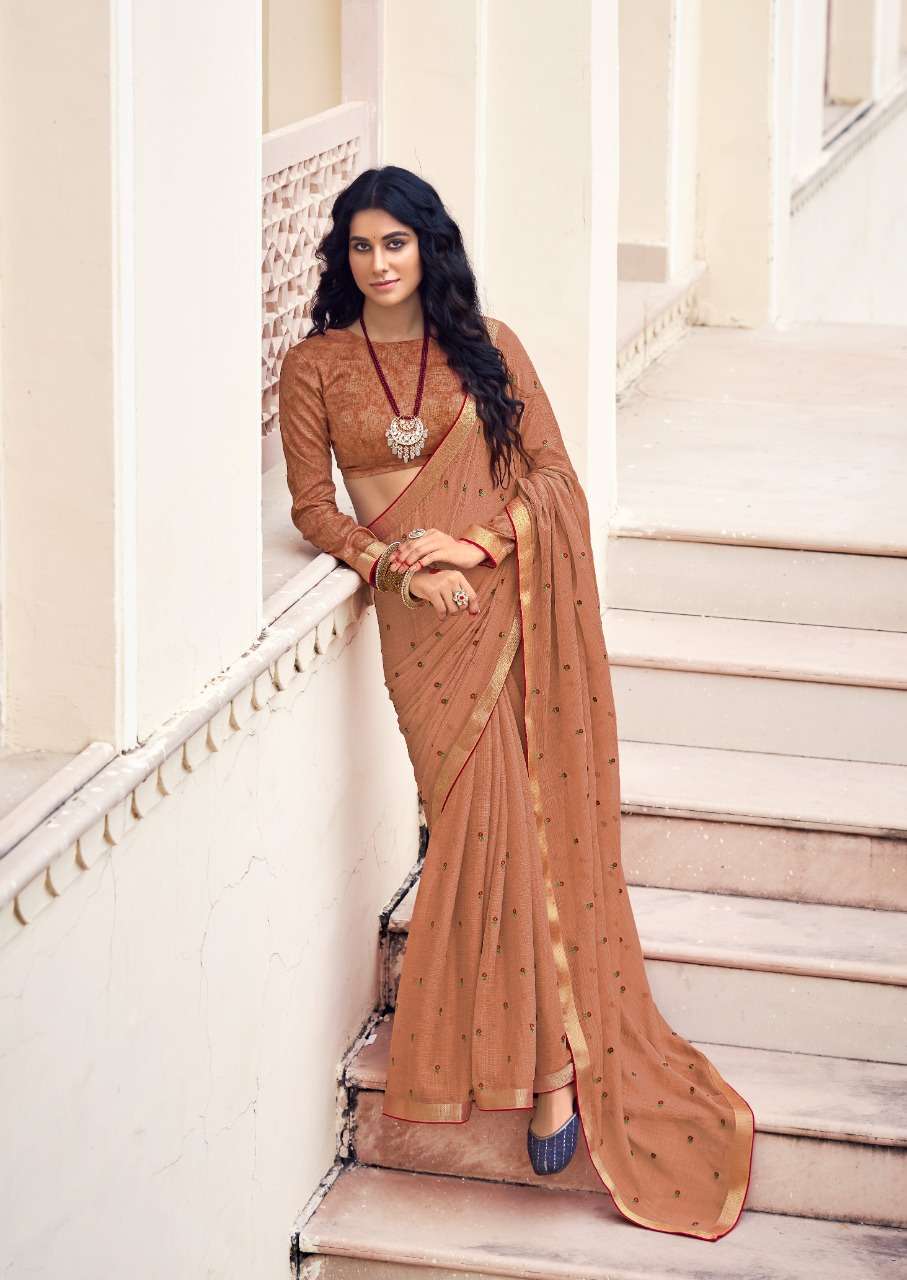 stavan hrutvi chiffon with embroidery work sarees authorized supplier