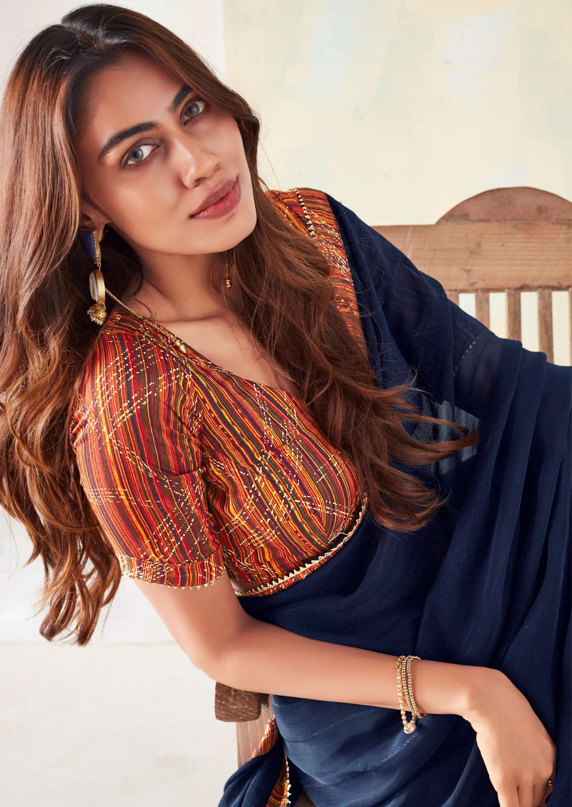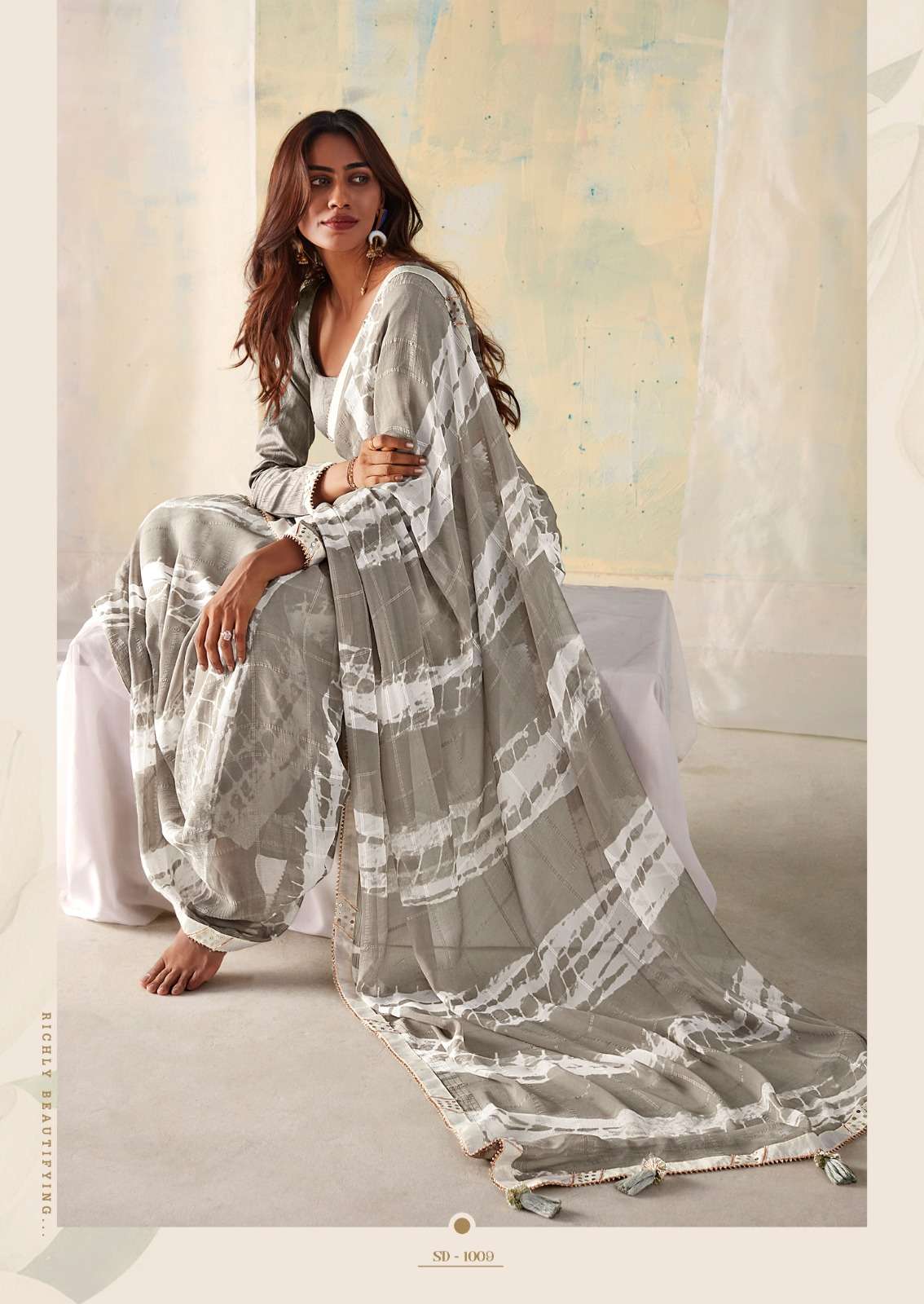 STAVAN Launching Catalogue - SAADI NEW CONCEPT WITH WEAVING GEORGETTE PATTERN FOR NEW SEASON Total - 5 Pcs Rate :- 780 |