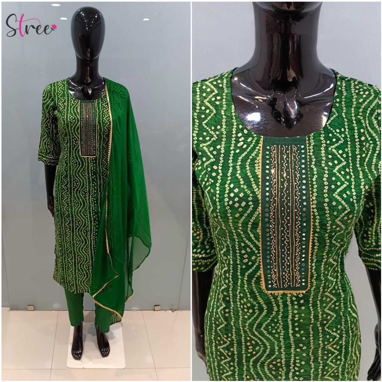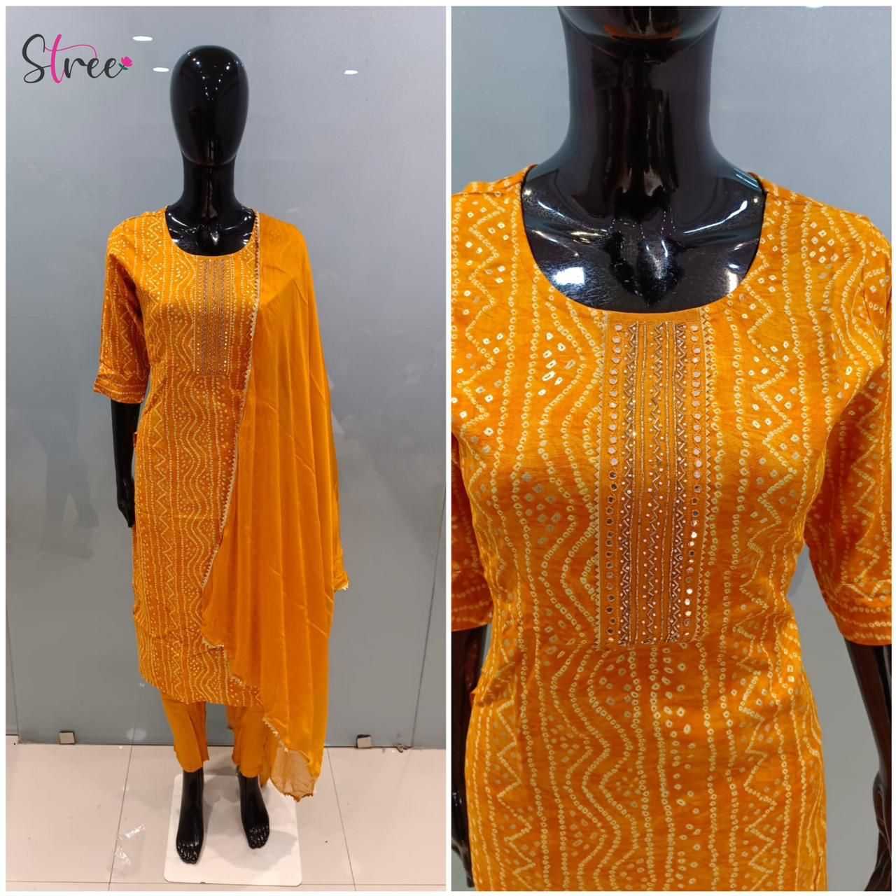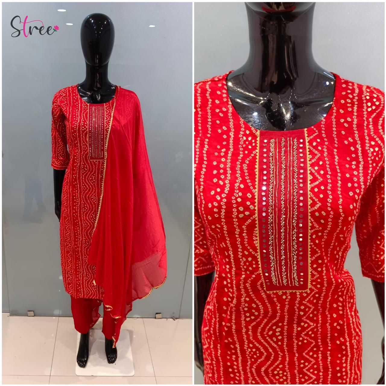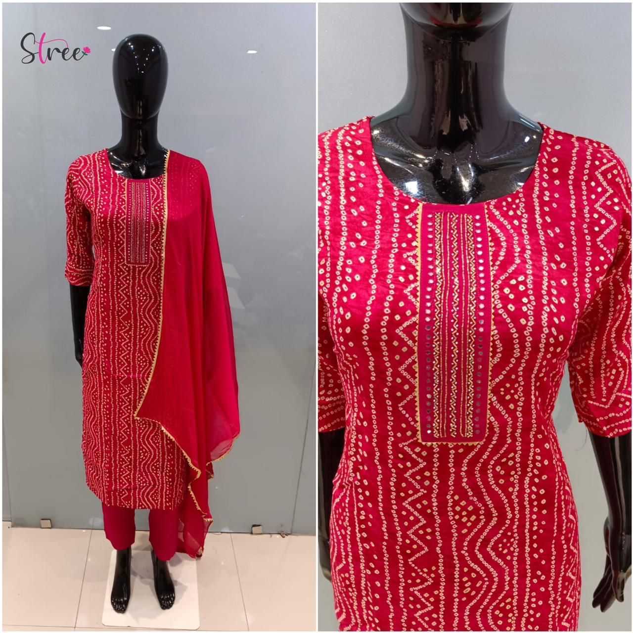 stree lifestyle rayon bandhani readymade 3pcs combo set