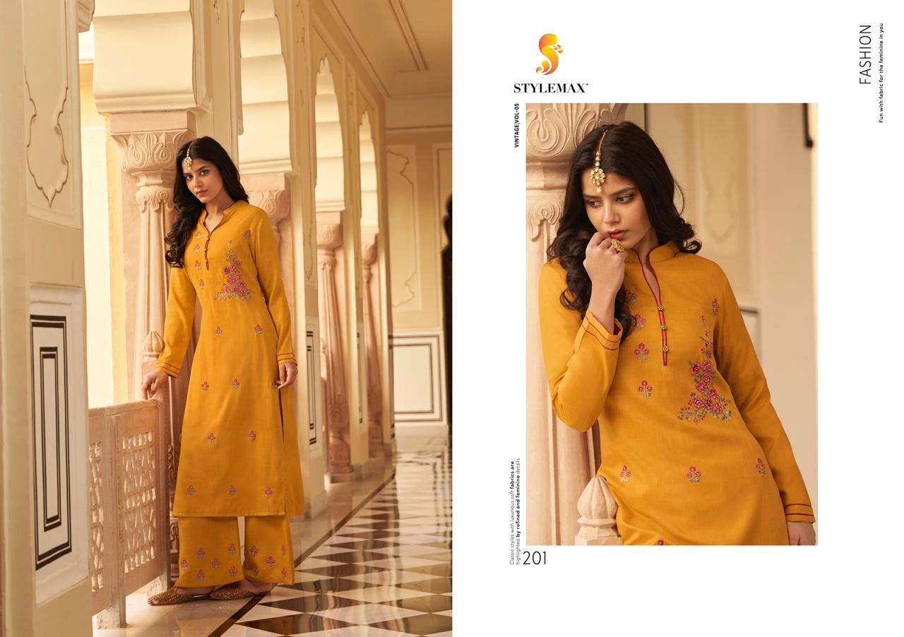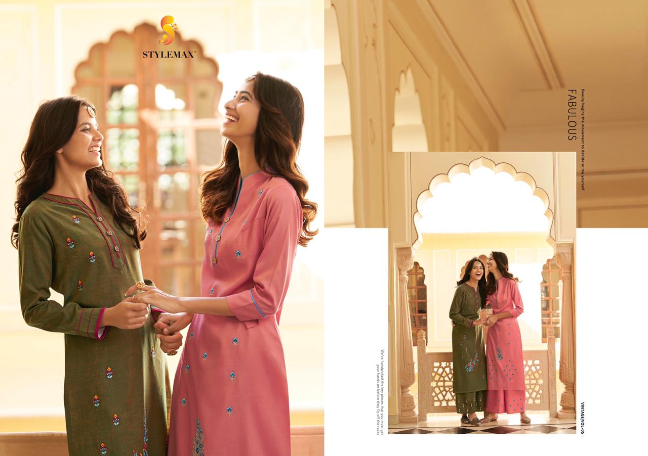 👗 * vintage vol -5 *👗 💯Quality .... *TOP-*silk two tone with embroidery * Fabric: * * - Designer style 👗 🔺TOP:- WORK:- * *Heavy embroidery * 🔺BOTTOM Plazo style : - silk to tone with full stich Plazo work * Fully stiched Kurtis & Plazo 🔺*6 pcs * Size: *M L, XL, 2XL 3XL * RATE : 899 ₹/- Set to set 🚛* DISPATCHED AFTER 3 to 4 days * |