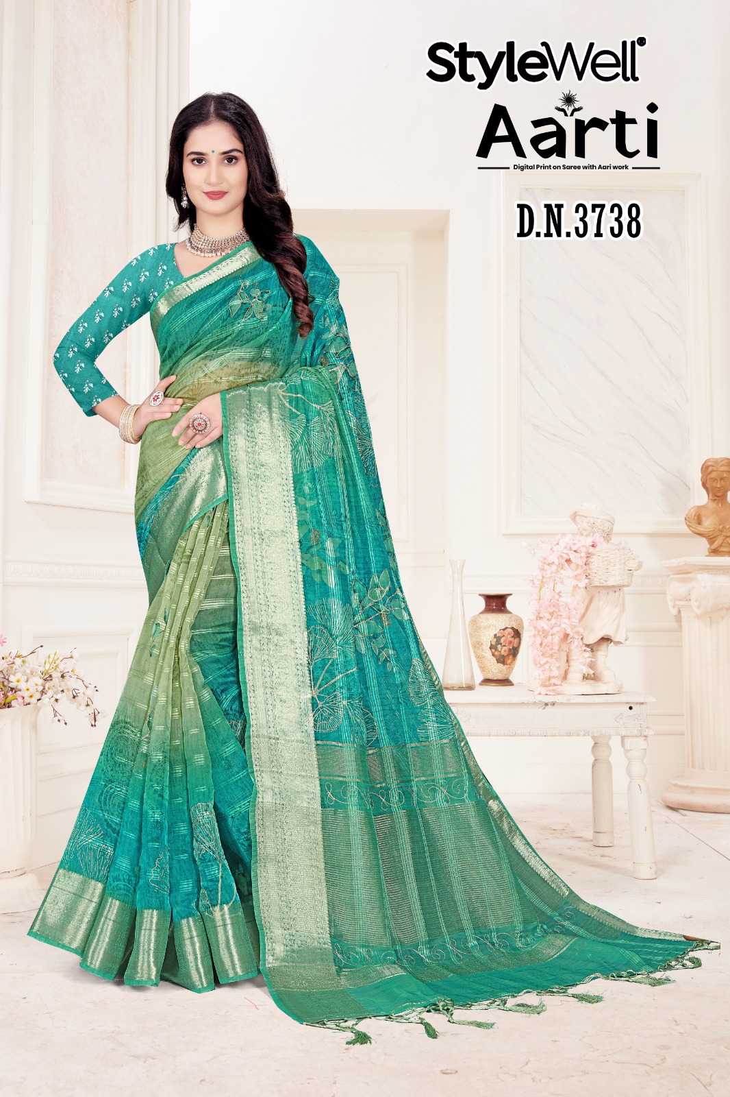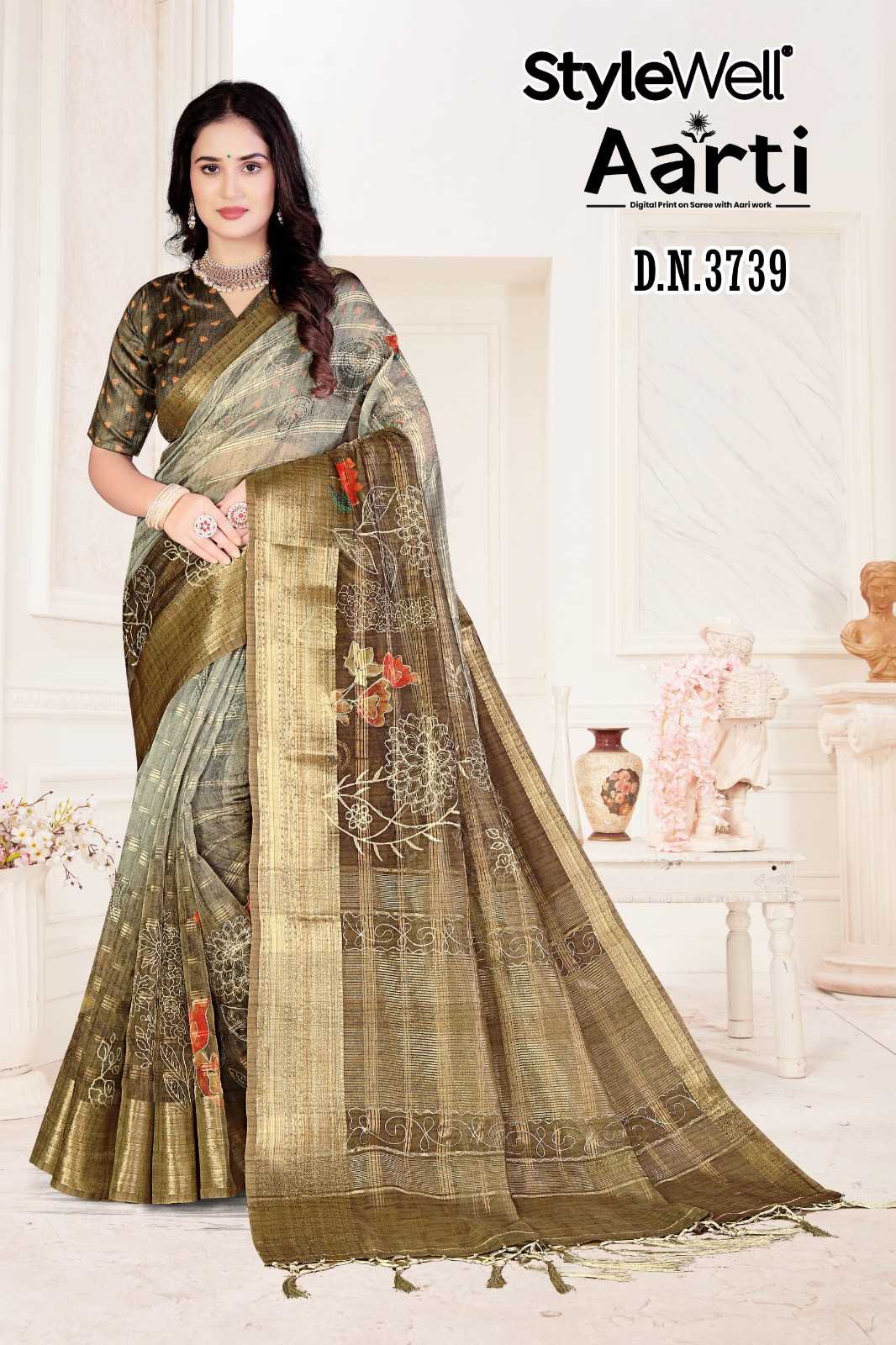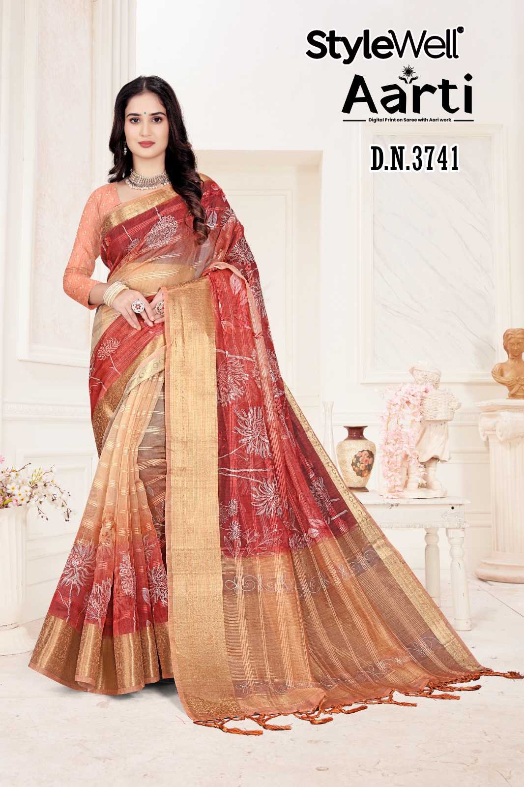 STYLEWELL - Be your own Label ☀️ New Catalogue Launch ☀️ 🌻 AARTI 🌻 🔅RATE - *₹1105/- per pcs 🔅FABRIC - Digital Print On Soft Organza(With Thread Work) |