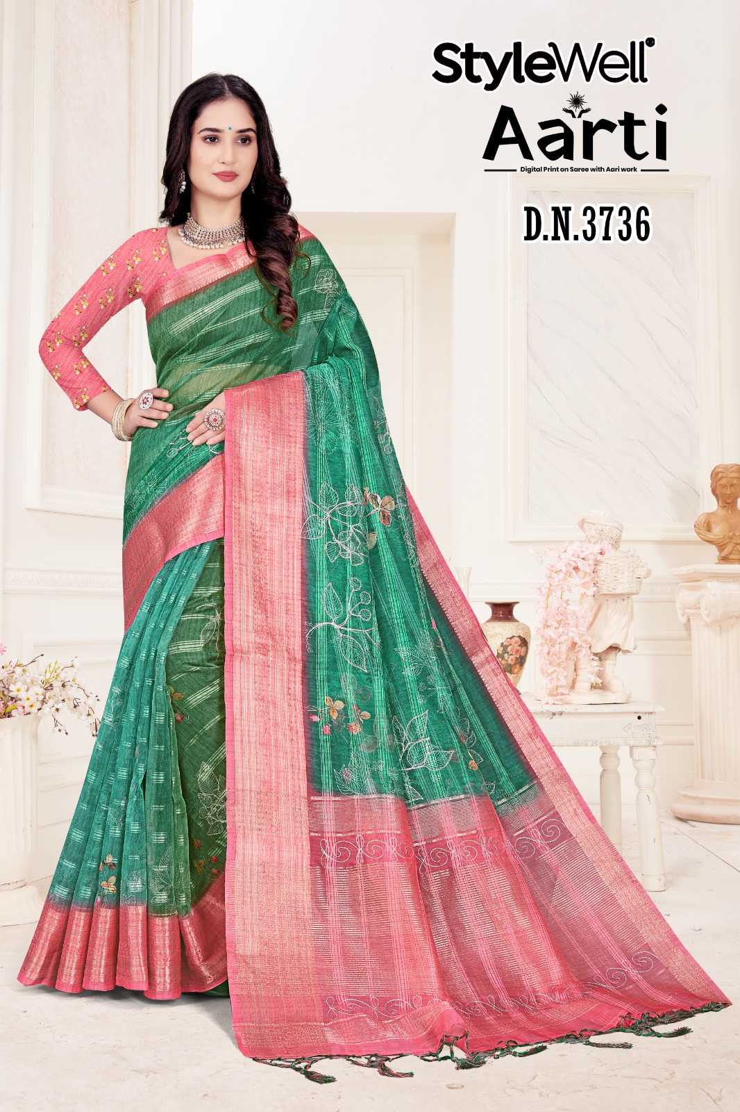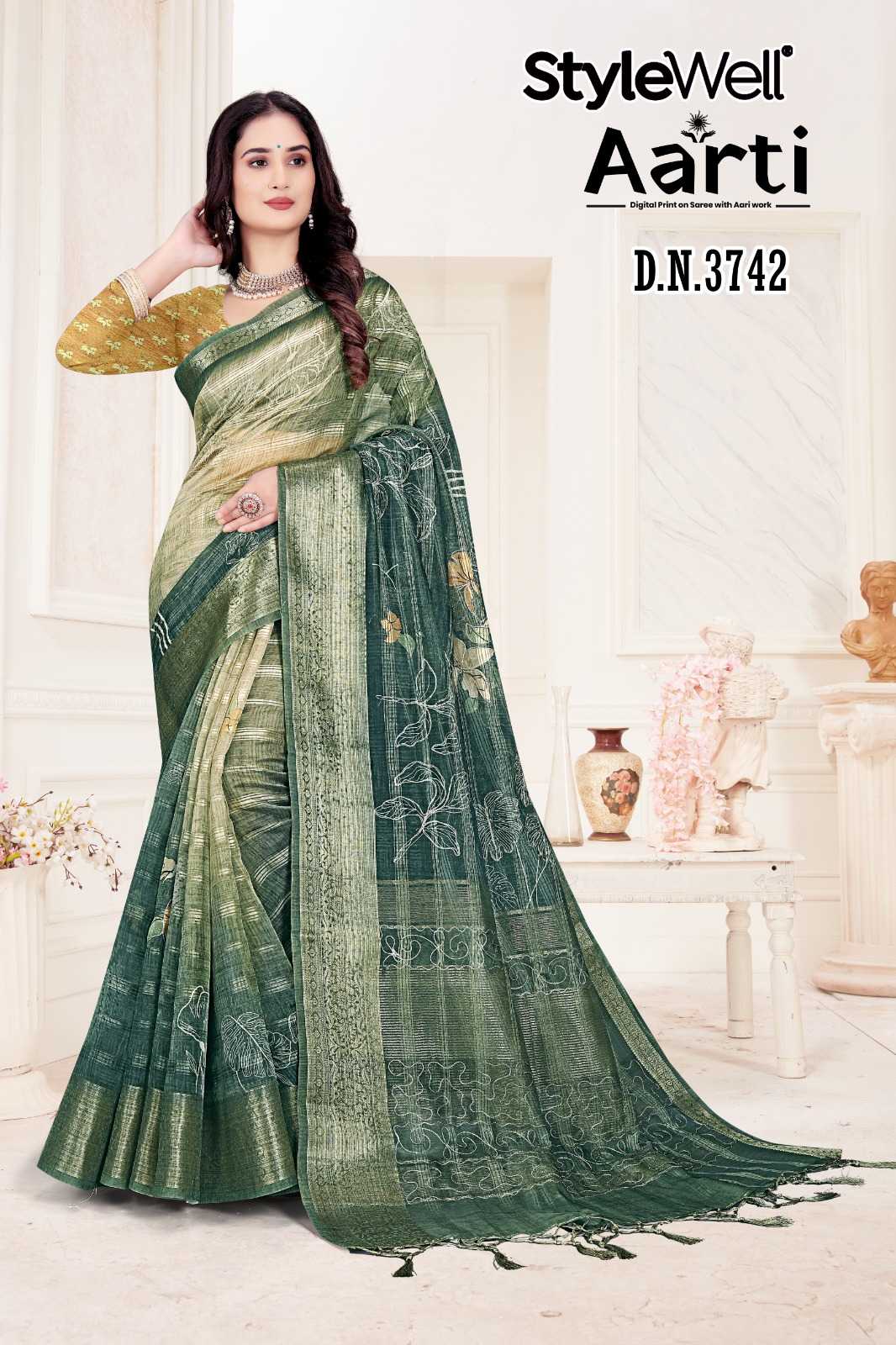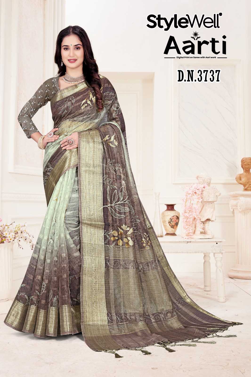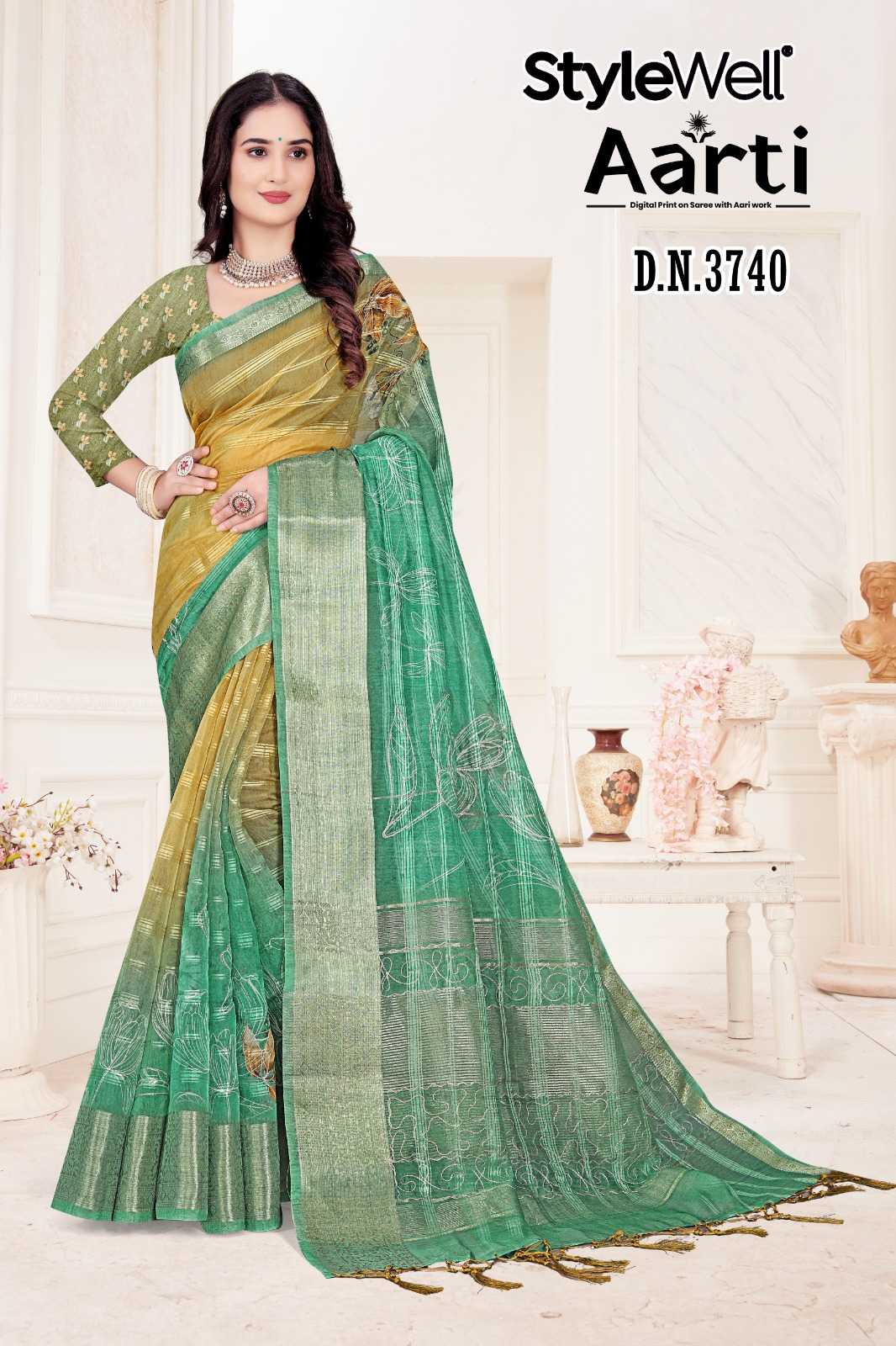 STYLEWELL - Be your own Label ☀️ New Catalogue Launch ☀️ 🌻 AARTI 🌻 🔅RATE - *₹1105/- per pcs 🔅FABRIC - Digital Print On Soft Organza(With Thread Work) |