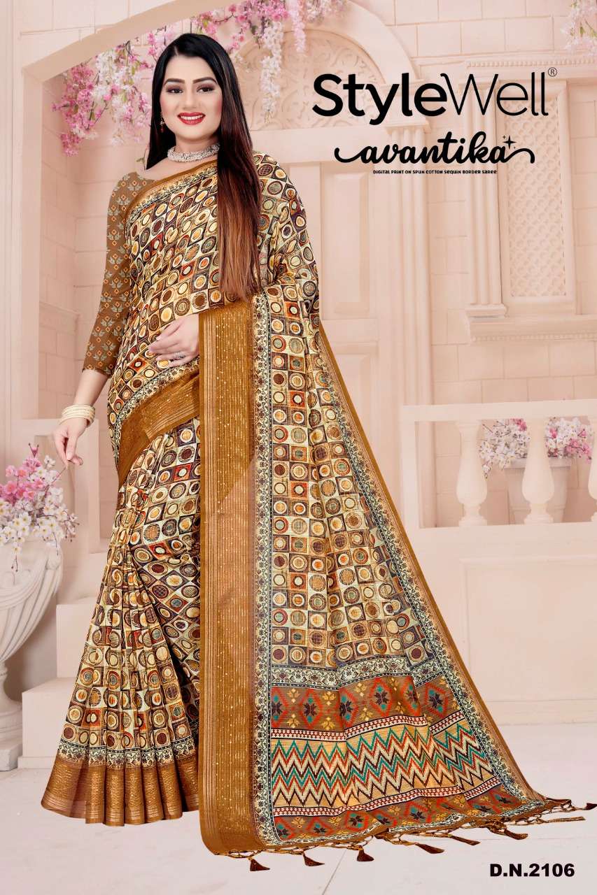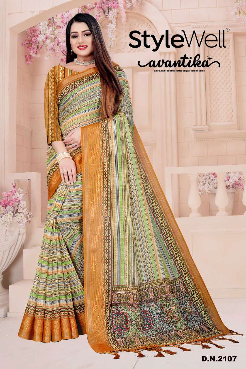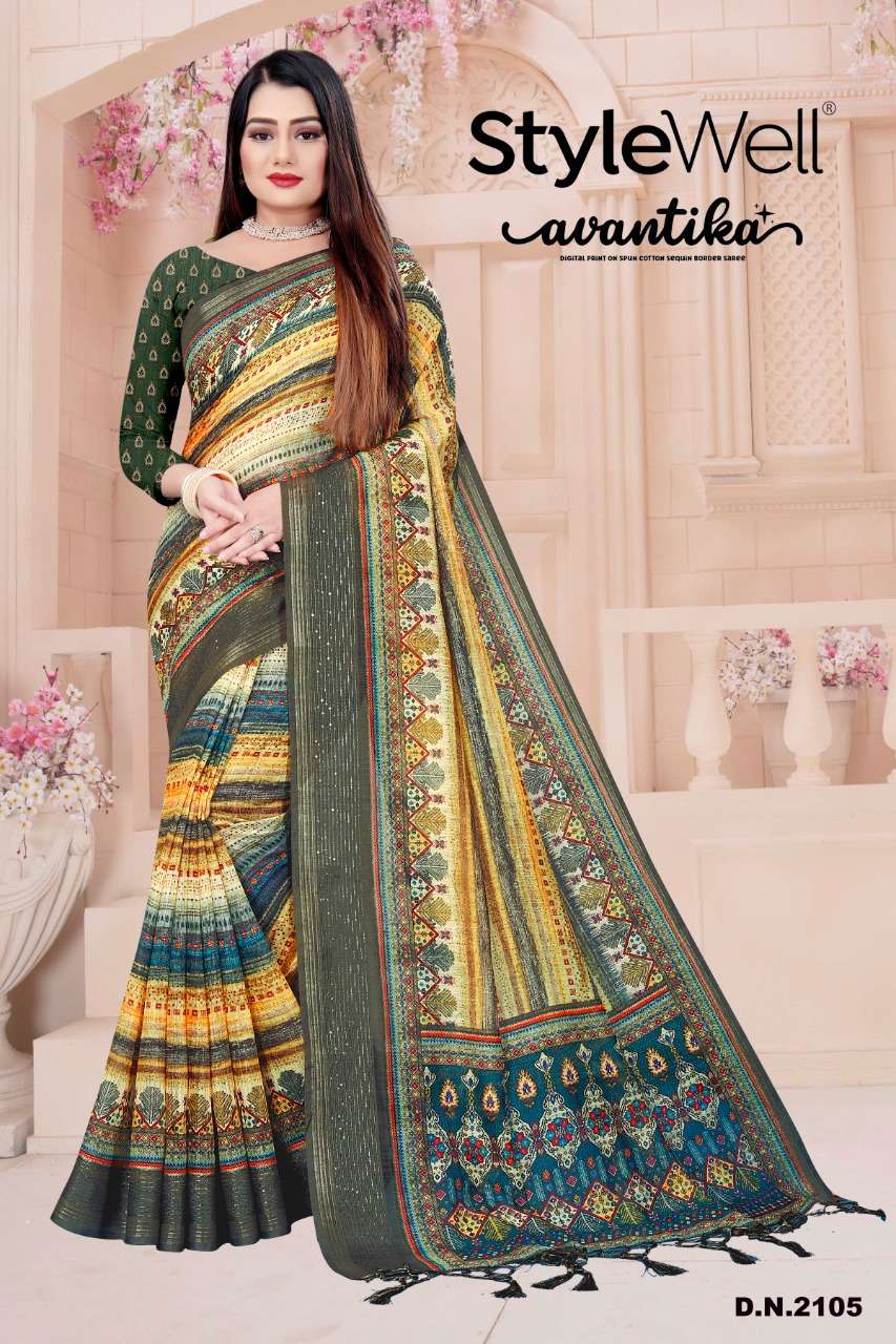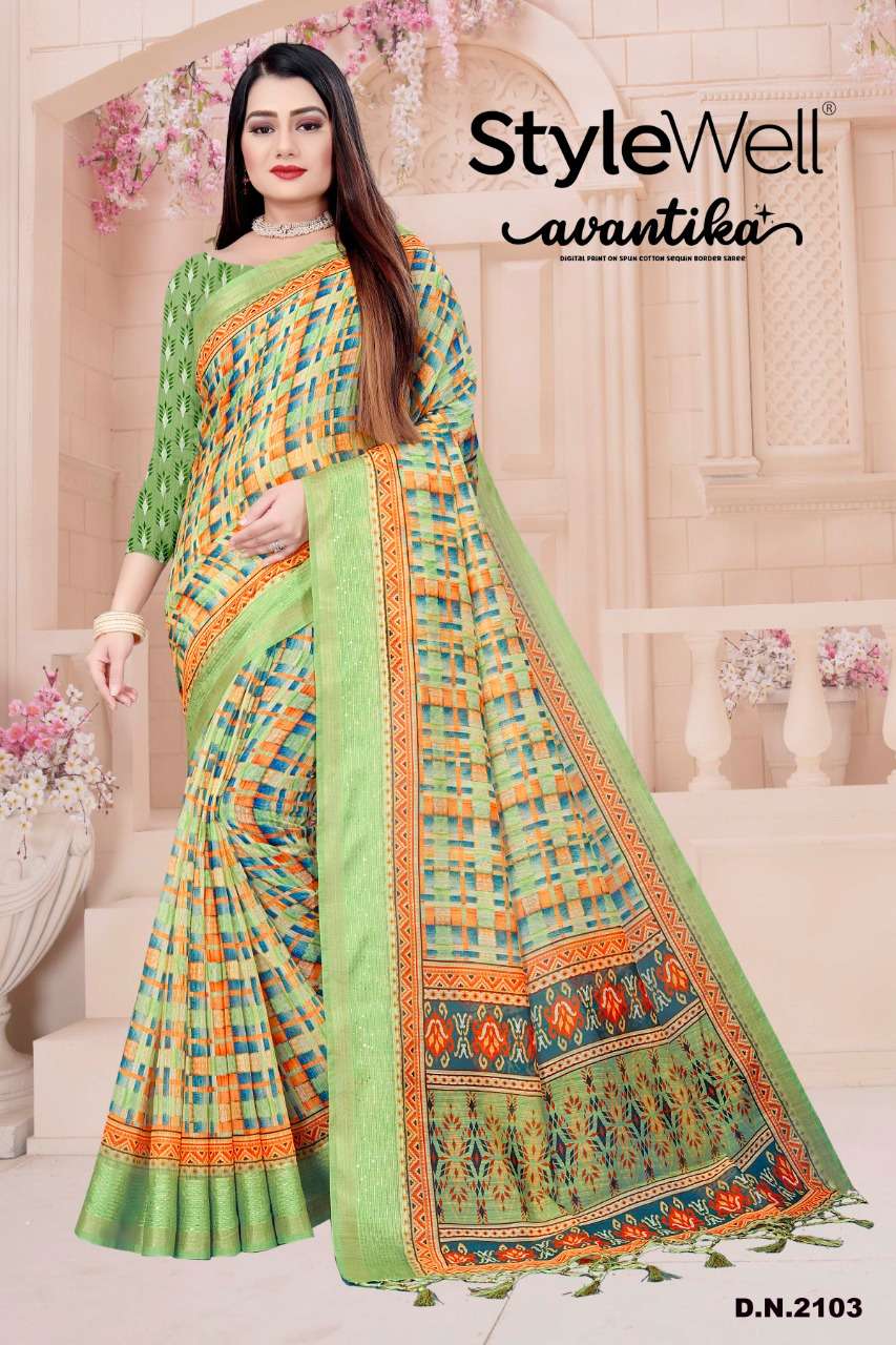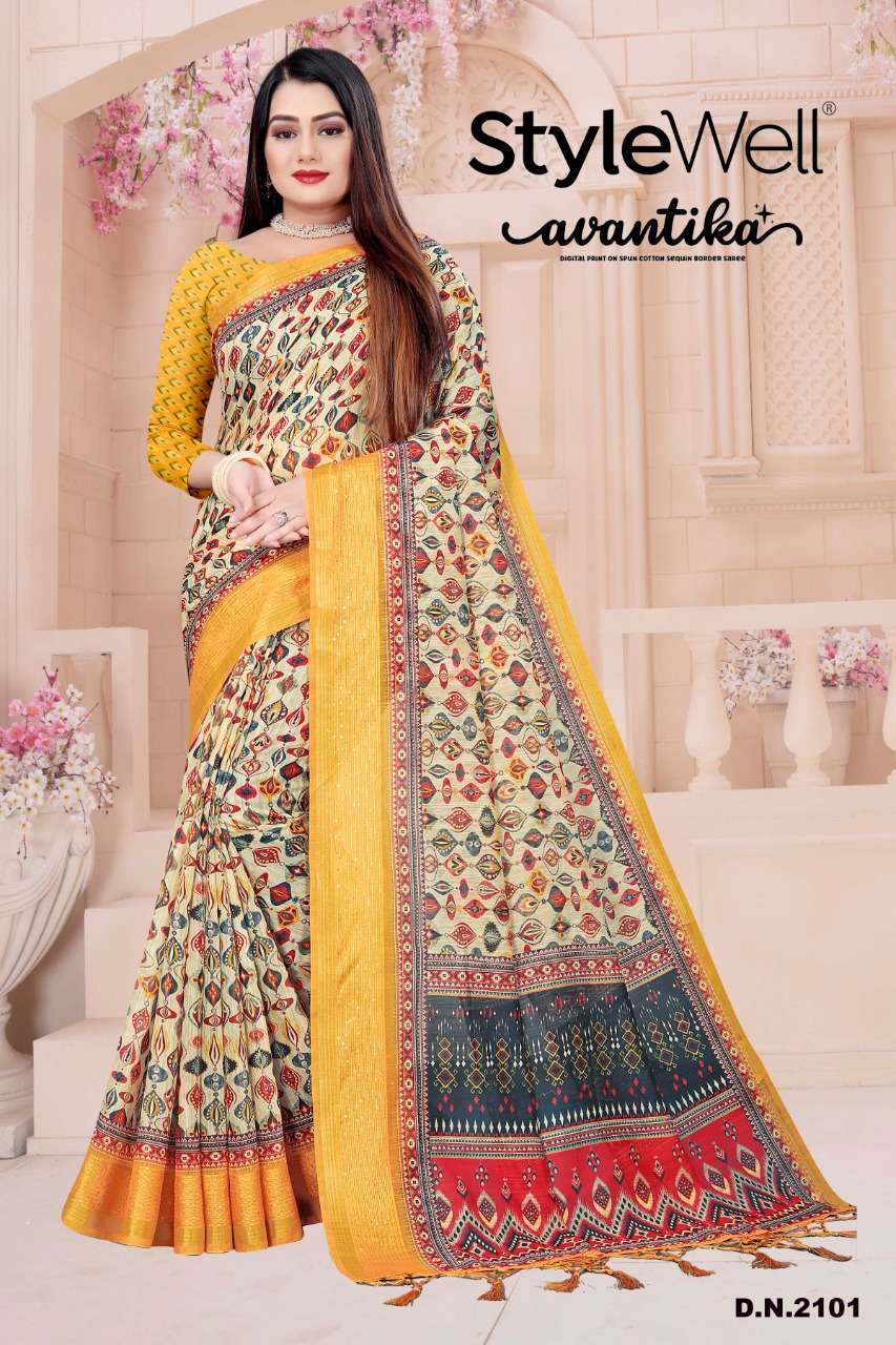 stylewell avantika digital print spun cotton sequin border saree wholesale