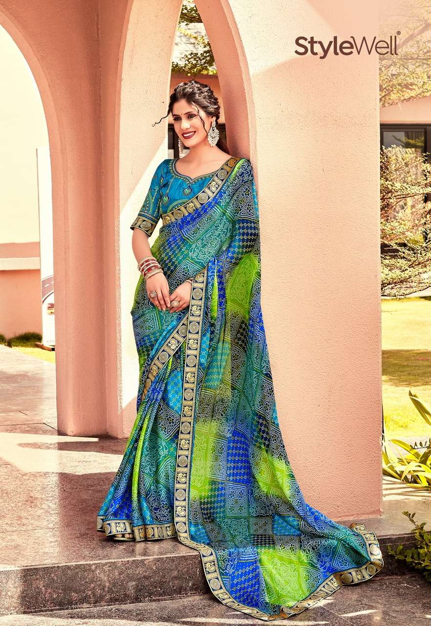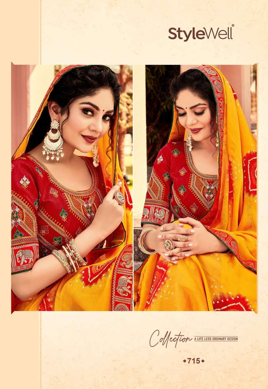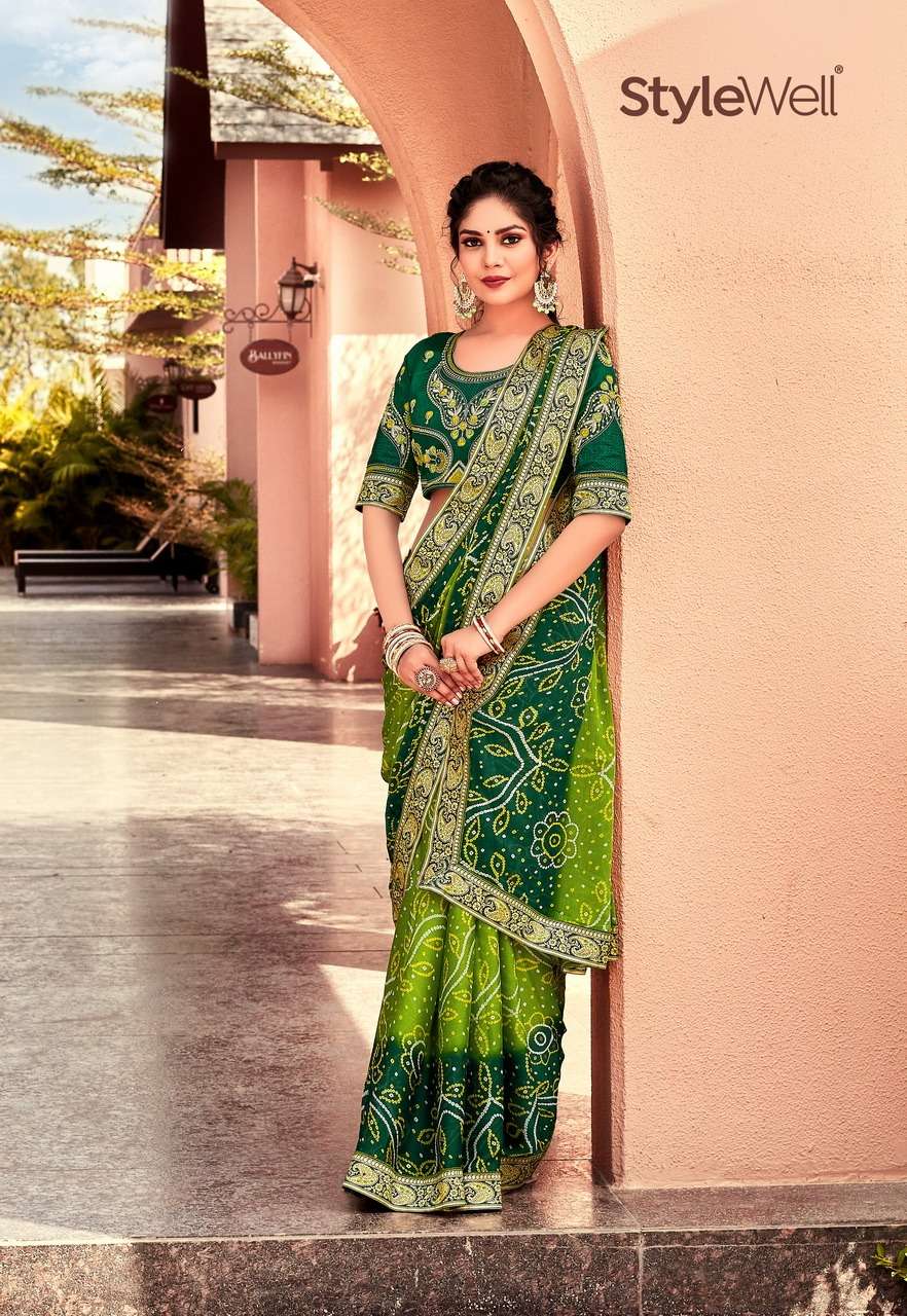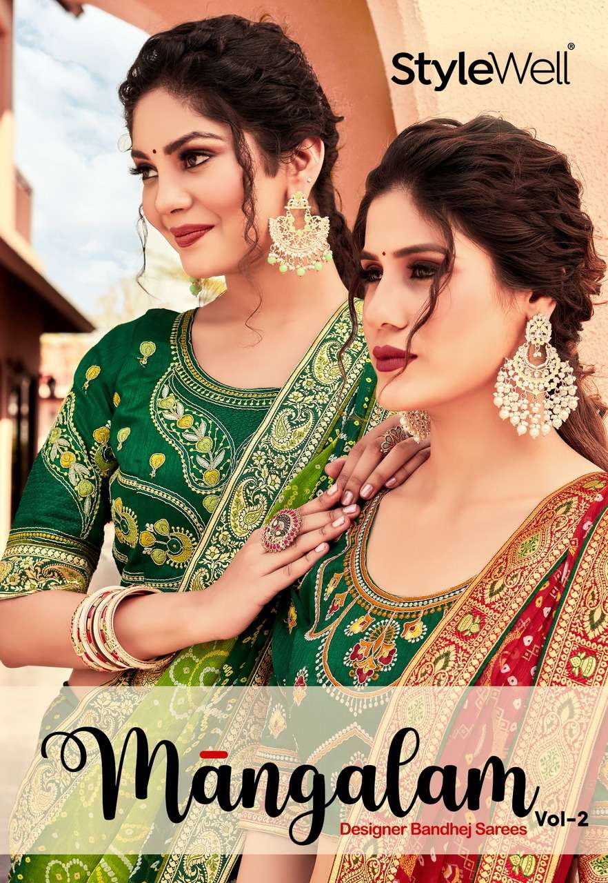 stylewell mangalam vol 2 hand print with banarasi designer fancy saree wholesaler
