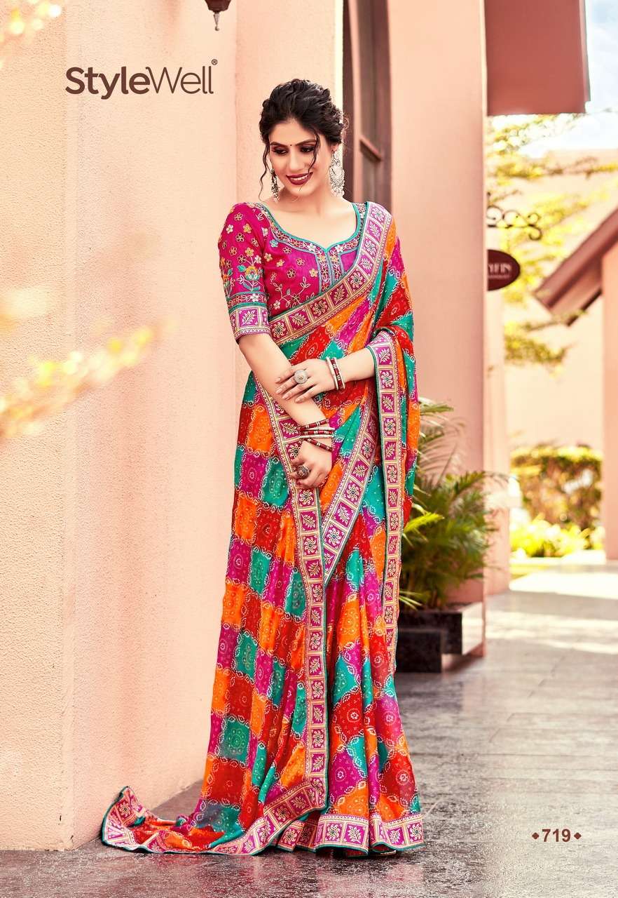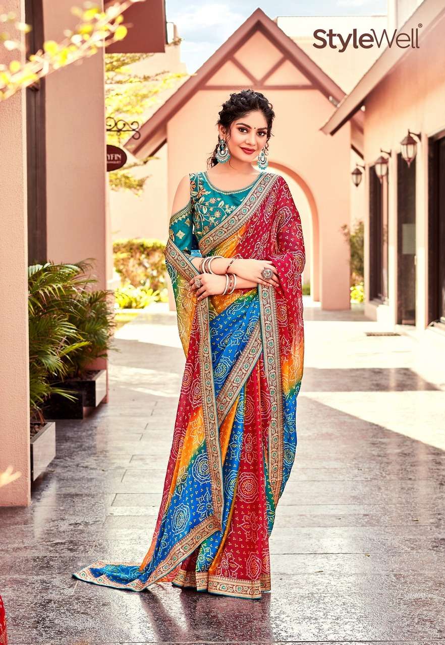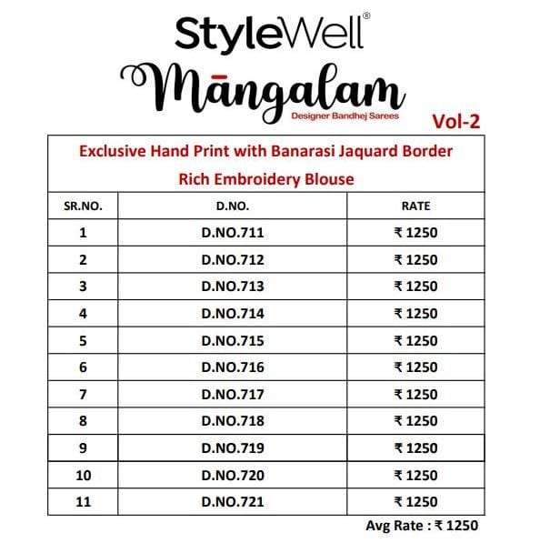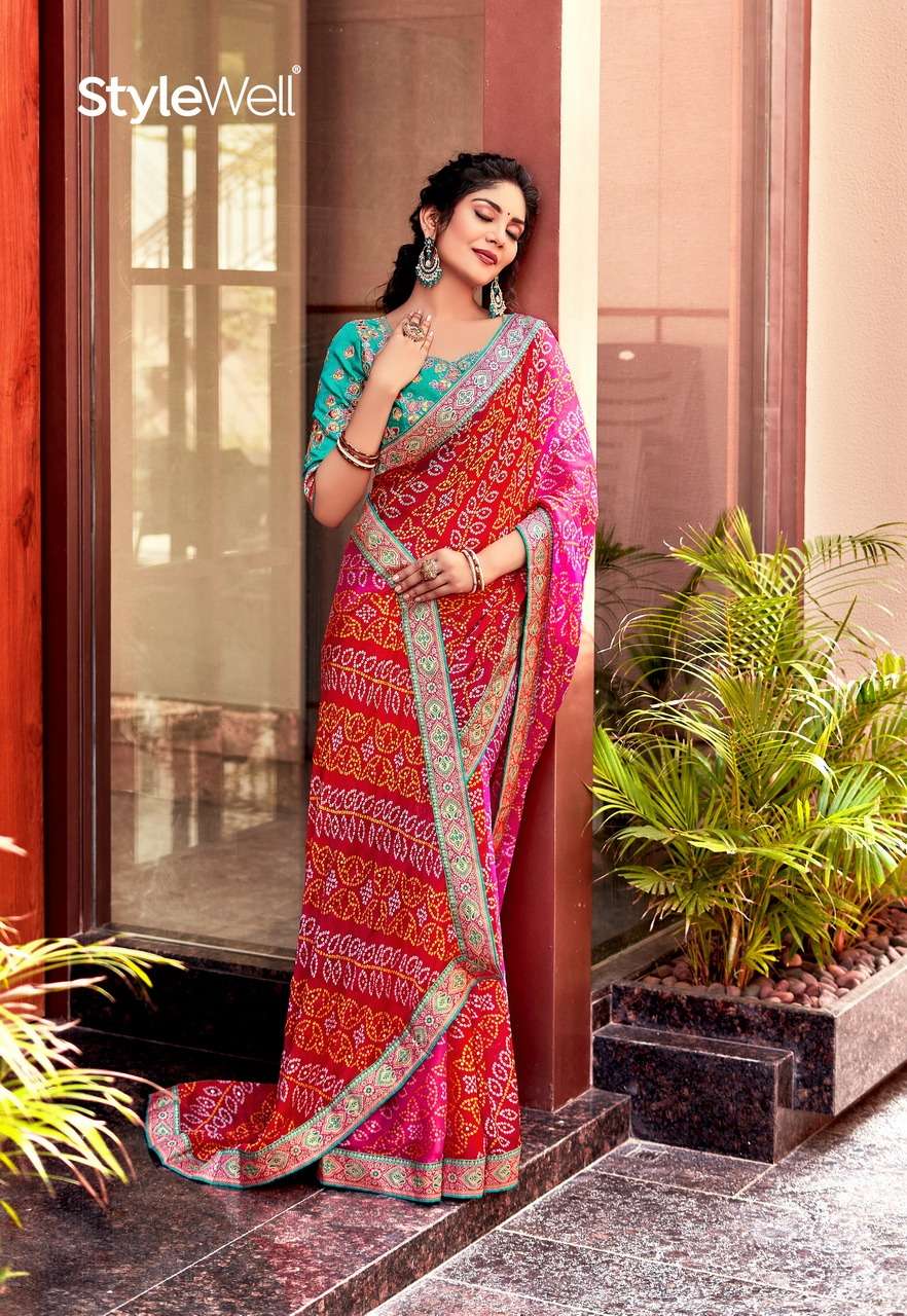 stylewell mangalam vol 2 hand print with banarasi designer fancy saree wholesaler