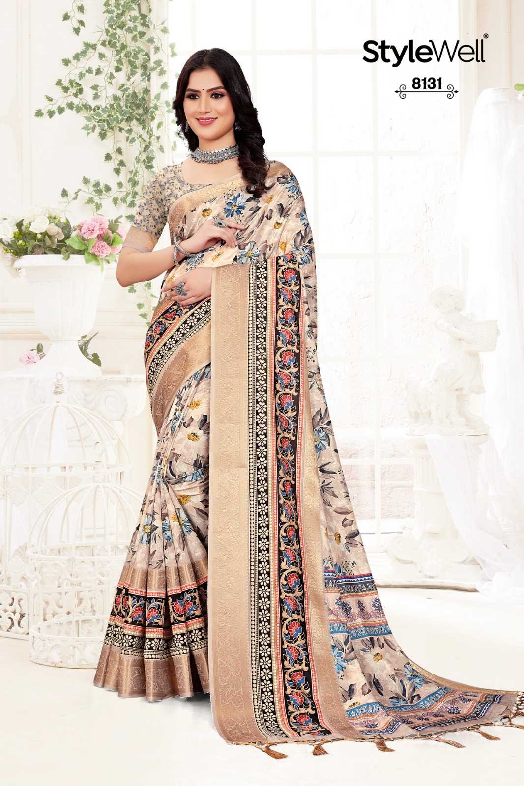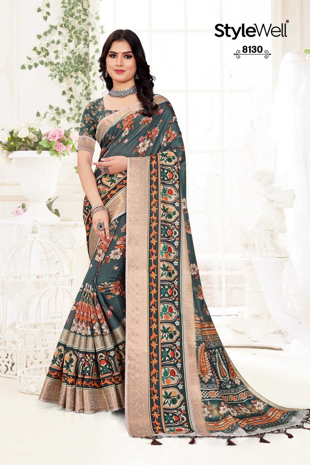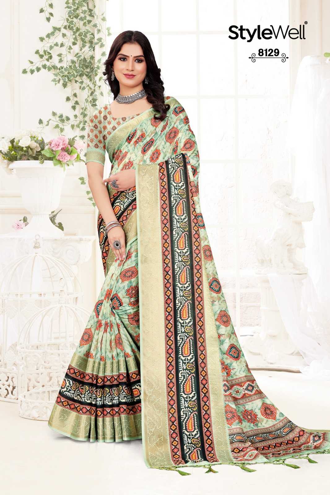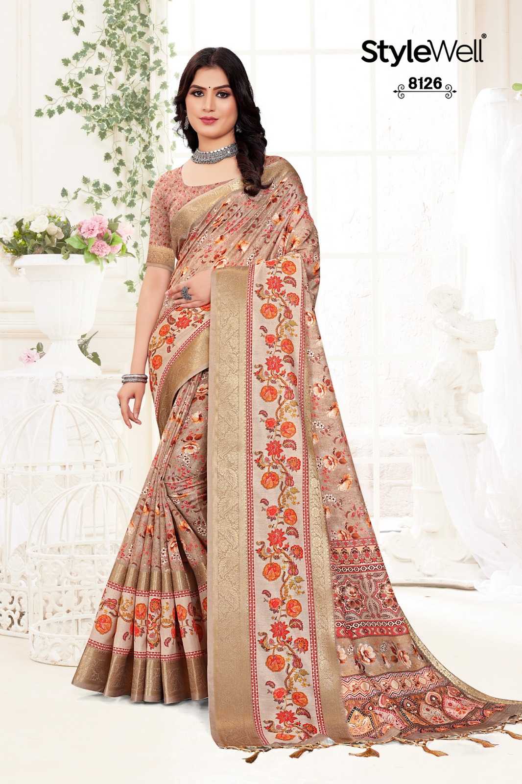 STYLEWELL 🌻 MANUSHI 🌻 RATE - ₹840/- FABRIC - Digital Print On Fancy Saree Set - 8 pc |