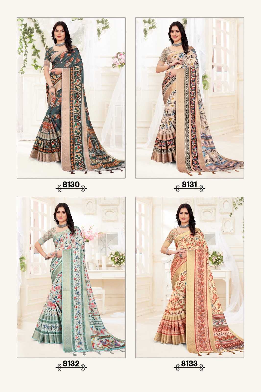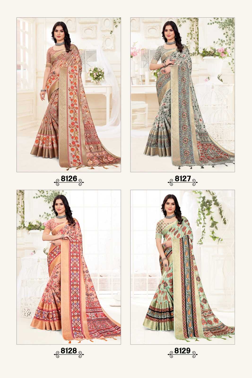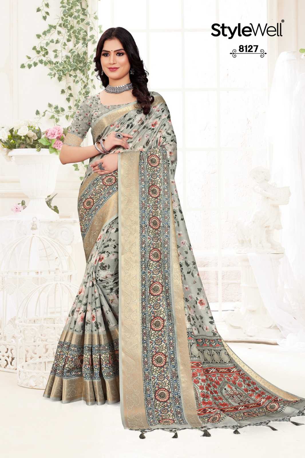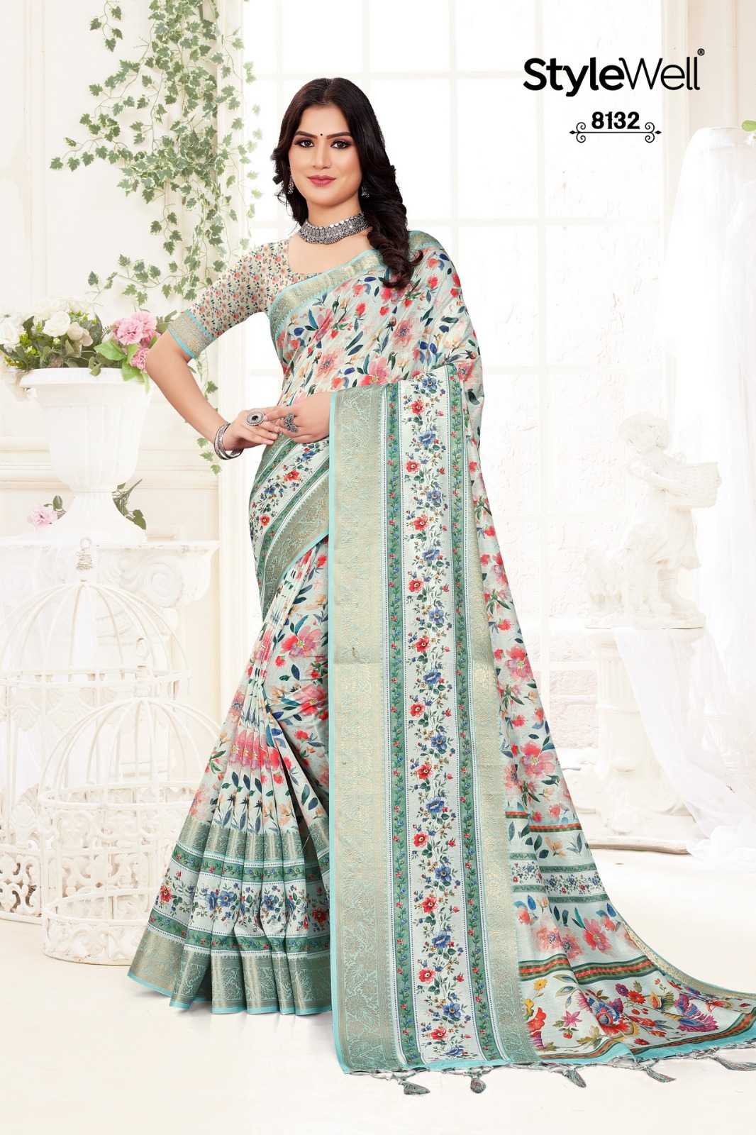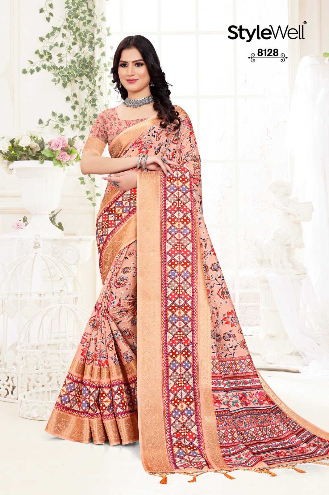 STYLEWELL 🌻 MANUSHI 🌻 RATE - ₹840/- FABRIC - Digital Print On Fancy Saree Set - 8 pc |
