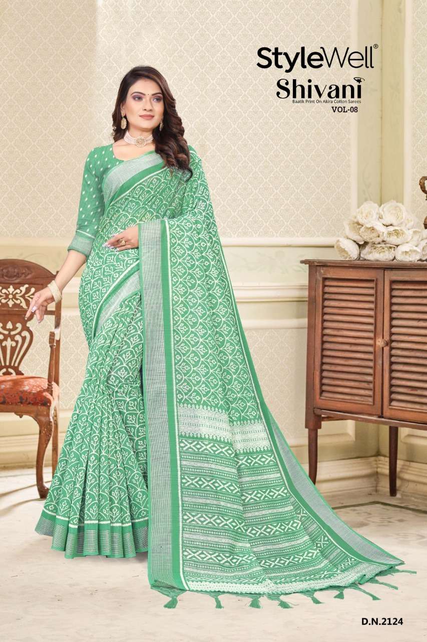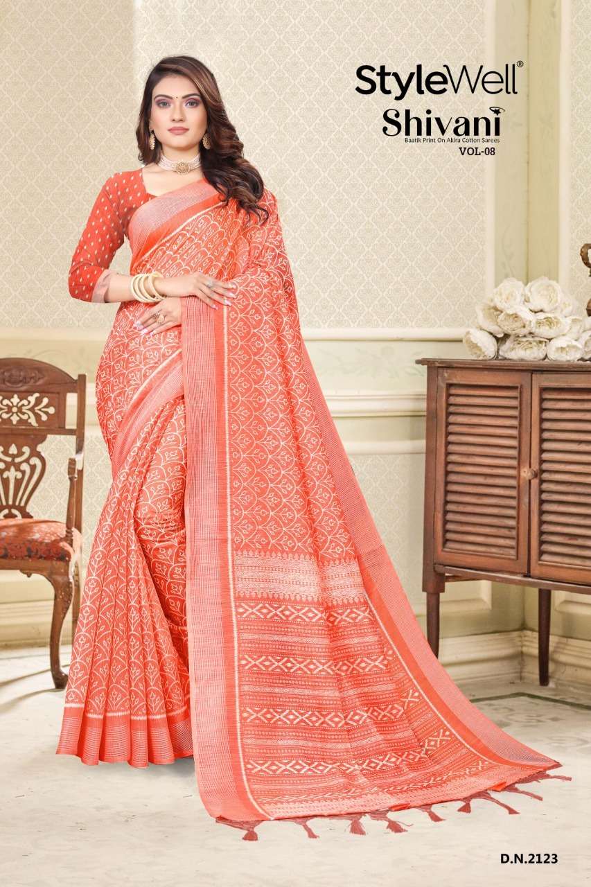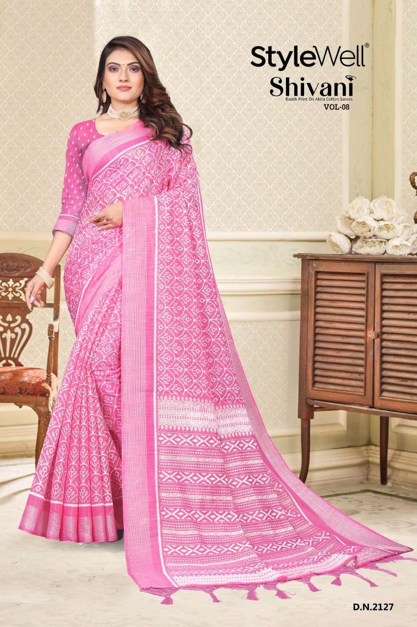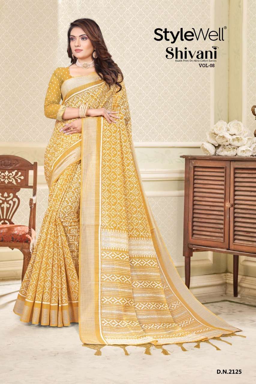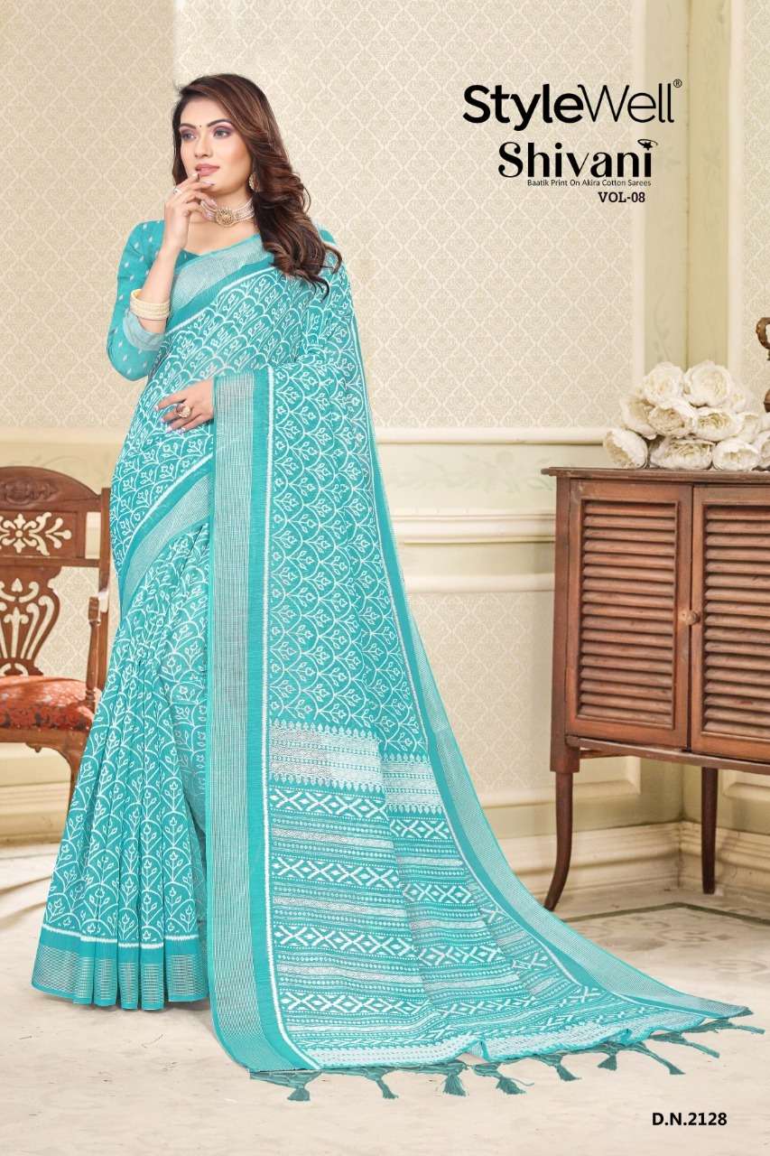 stylewell shivani vol 8 & vol 9 cotton baatik printed saree wholesaler