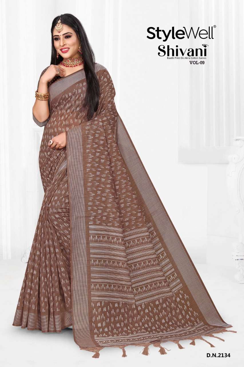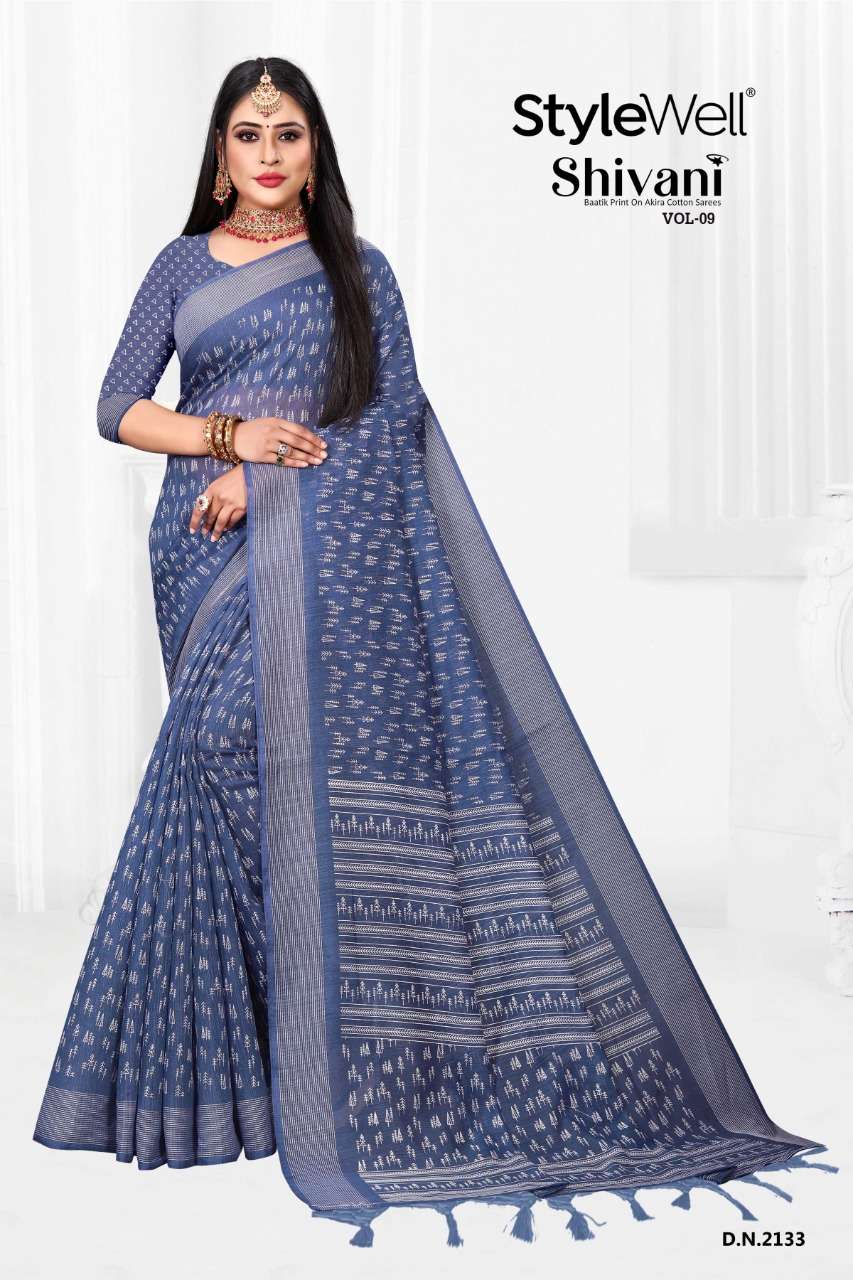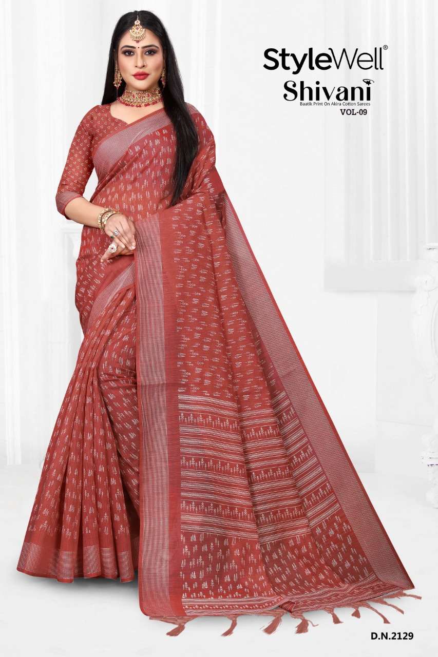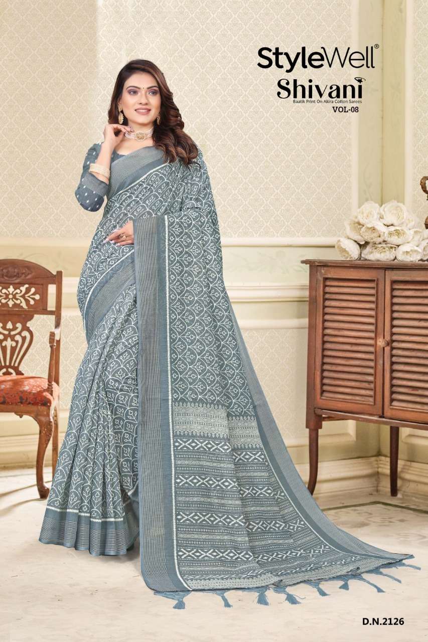 stylewell shivani vol 8 & vol 9 cotton baatik printed saree wholesaler