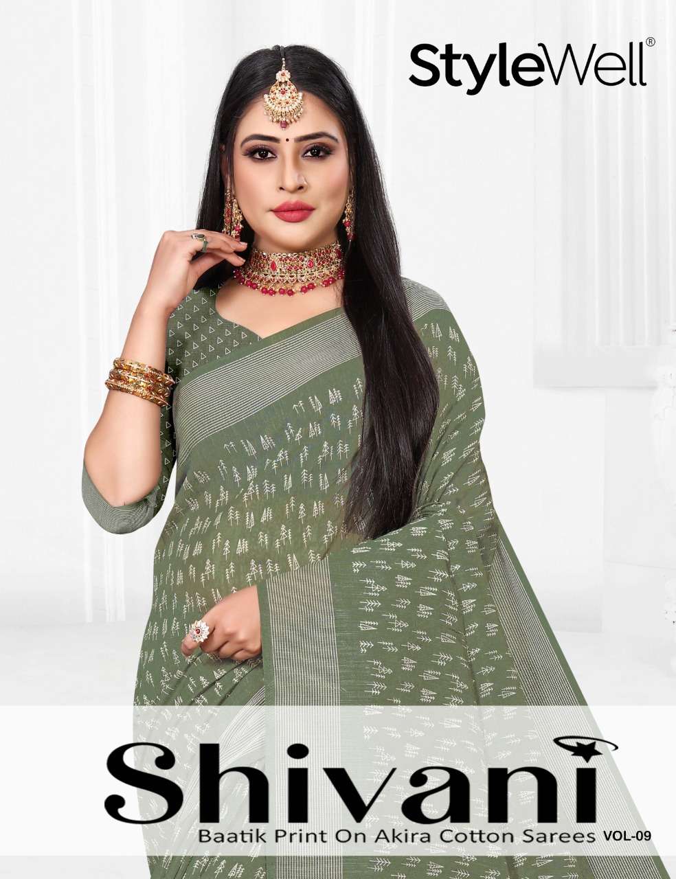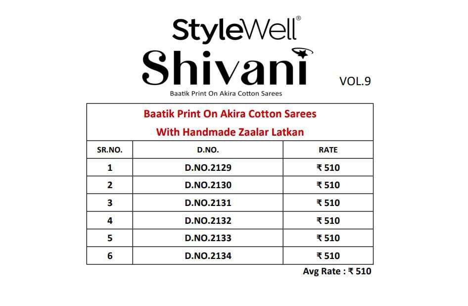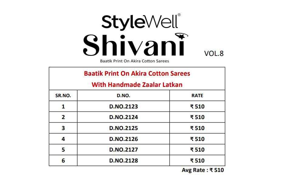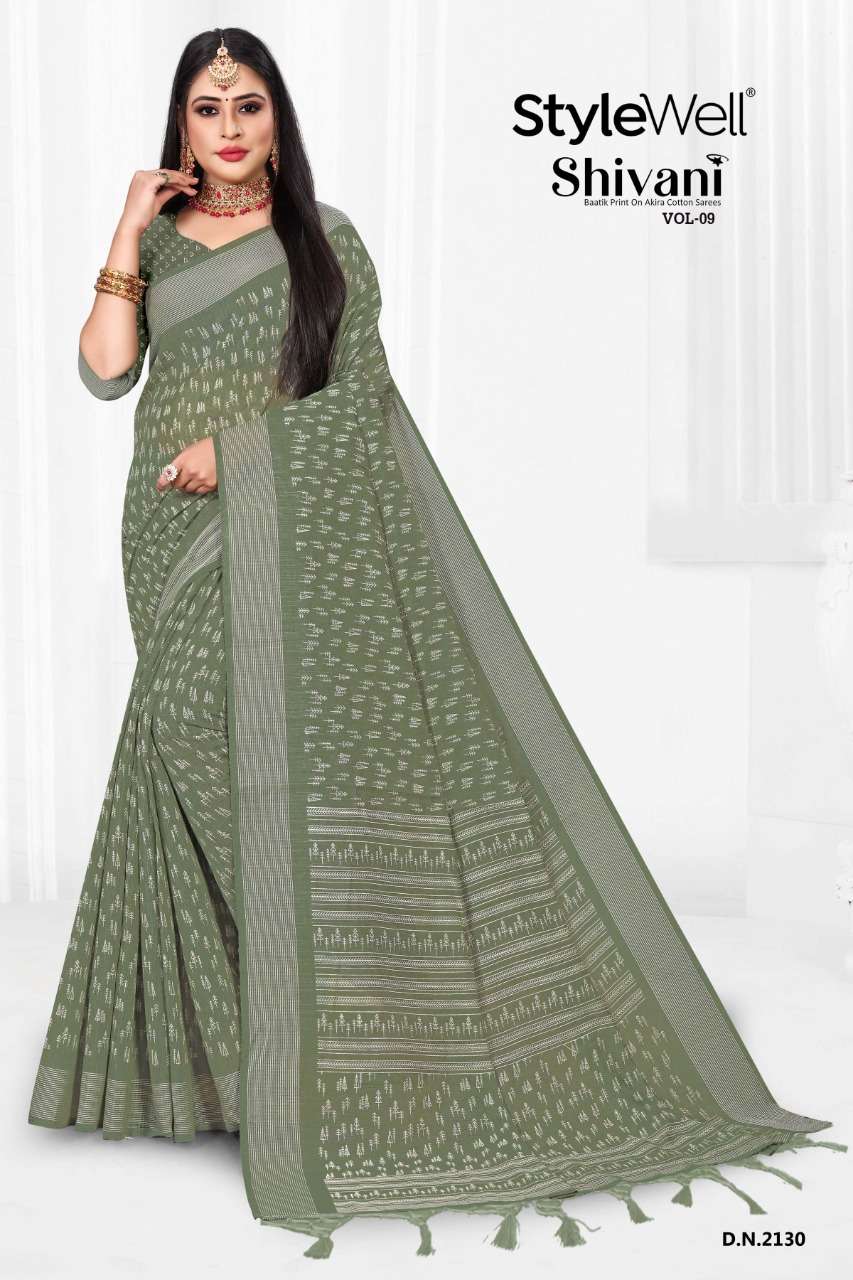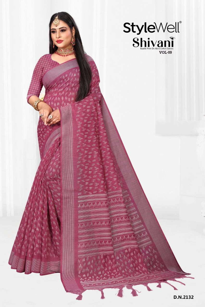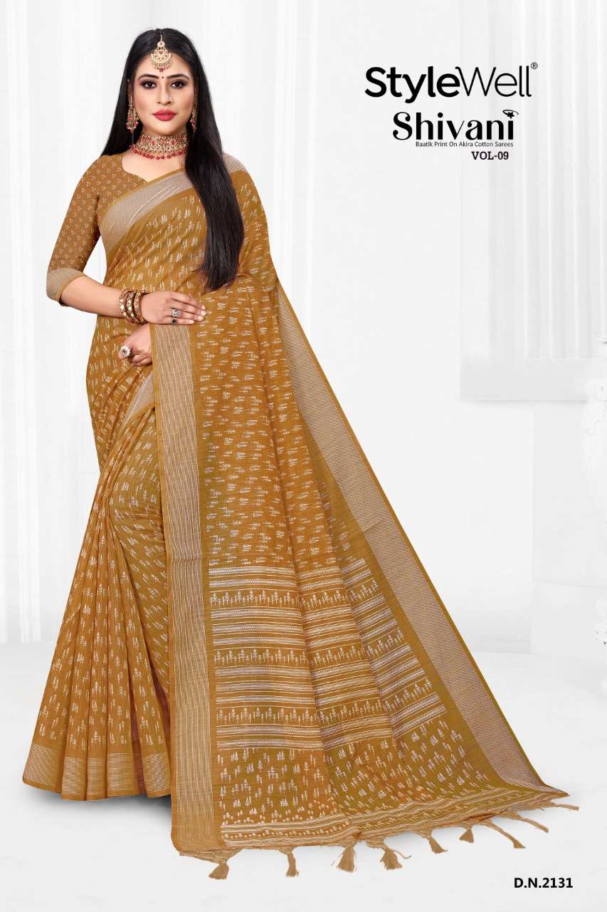 stylewell shivani vol 8 & vol 9 cotton baatik printed saree wholesaler